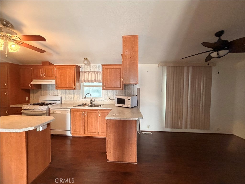 Beautiful Mobil home in 55+ community 3 bedrooms 2 full baths Formal living room open kitchen with island for extra storage. Nice dining area open to family room. Indoor laundry room, Single car garage deep to back covered patio and workshop. 2 car parking in front and guest parking across the street. Park is beautifully maintained. Space 63 in back part of park.