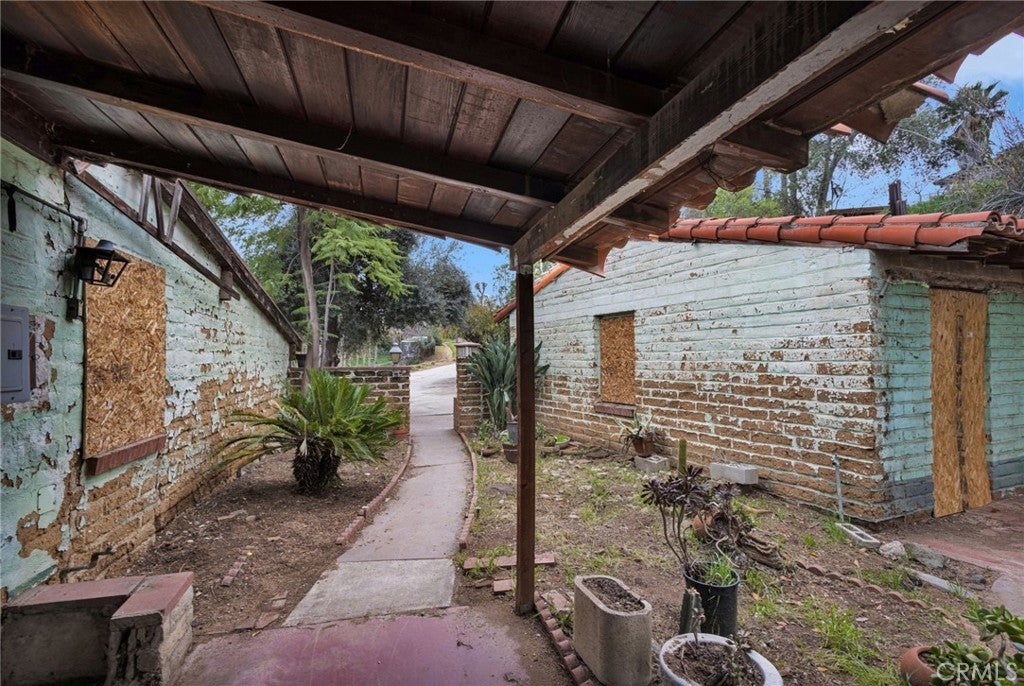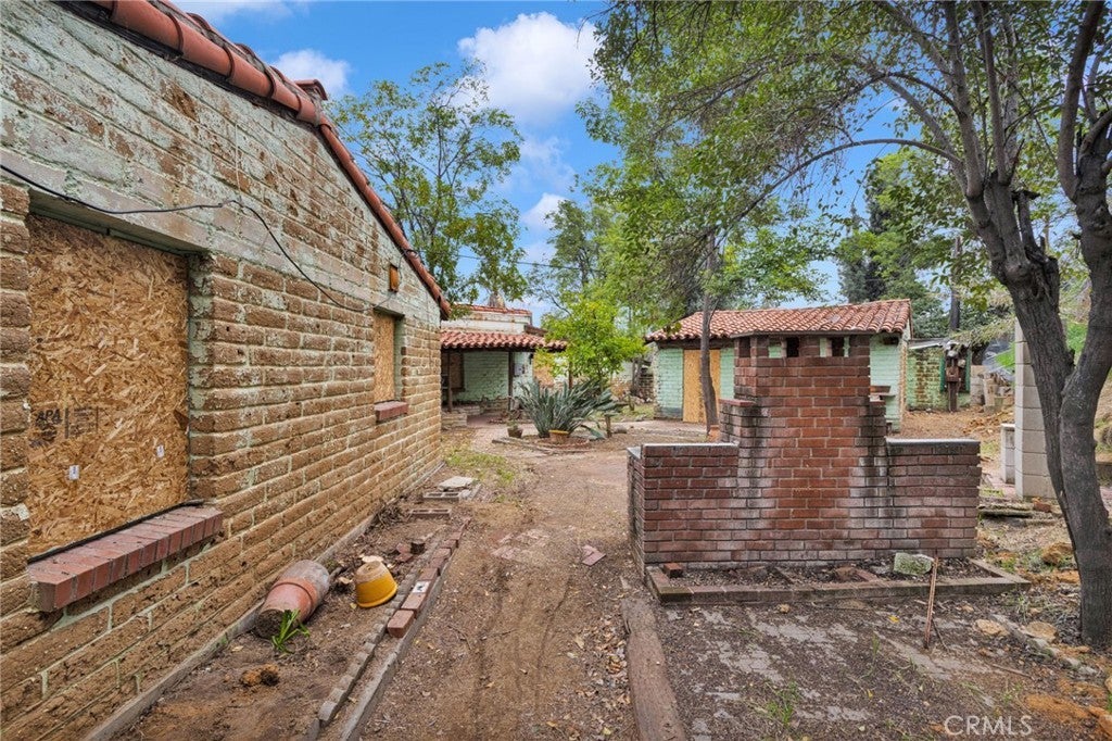 HILLTOP ESTATES! This rare hillside property offers privacy, elevation, and a truly distinctive compound layout. Positioned above surrounding homes, the setting captures rolling greenbelt-style surroundings, mature trees, and expansive space rarely found in this area. The residence features exposed wood beam ceilings, rustic brick fireplace, Spanish-style tile rooflines, and vintage adobe-inspired construction. Multiple detached structures and courtyard-style areas create flexibility for workshop space, studio conversion, guest quarters, or future reconfiguration (buyer to verify zoning, uses, and parcel details). The interior reflects deferred maintenance and the property is being sold strictly as-is, presenting a strong opportunity for investors, contractors, builders, or buyers seeking a restoration project with architectural character. Outdoor highlights include terraced land, hillside views, mature trees, and a built-in brick BBQ area. With a full 1.28 acres combined, the potential for customization, expansion, or redevelopment is significant. Opportunities with this much land, elevation, and layout flexibility are increasingly rare. Bring your vision and unlock the possibilities.