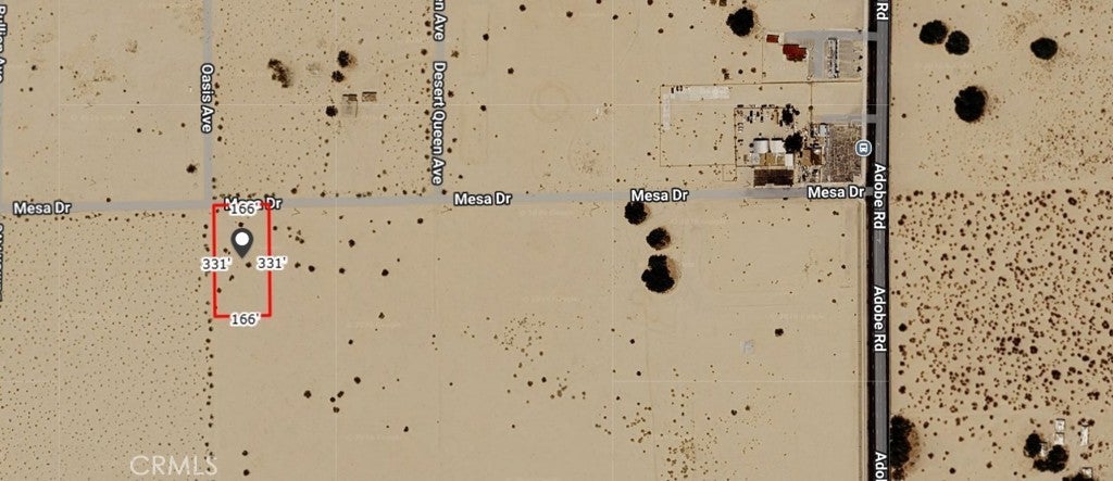 Spacious 1.25 acre parcel on Mesa Dr in 29 Palms offering beautiful desert views and plenty of room to build your future desert retreat or investment. Power is nearby at the neighboring parcel. County records do not currently show water service for the property; however, a fire hydrant was observed near the parcel, which may indicate a nearby water line. Buyers are encouraged to verify utility availability with the Twentynine Palms Water District and the City of Twentynine Palms planning department. The property sits on a sandy road just off paved Adobe Rd, providing convenient access into town. Enjoy the peaceful desert setting while being a short drive from local shops, restaurants, and the natural beauty of Joshua Tree National Park. Drive by and invest today! APN: 0620-101-24-0000. Latitude:34.178774, Longitude:-116.060516.