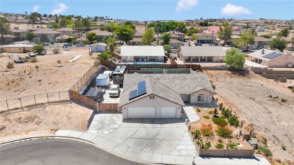 Tucked away in a peaceful cul-de-sac within one of Barstow’s most established neighborhoods, this move-in ready gem offers the perfect blend of comfort, space, and lifestyle. Sitting on an expansive lot, this beautifully maintained home features 4 bedrooms, 3-car garage, and ample RV parking—ideal for storing all your desert and off-road toys! Step inside to a welcoming and functional layout, with plenty of natural light, room to entertain, and comfortable living spaces for the whole family. The kitchen flows effortlessly into the main living area, creating a great gathering space for everyday living or weekend get-togethers. Step outside and enjoy your private backyard retreat—complete with a refreshing pool, perfect for cooling off on warm afternoons. Whether you’re hosting a BBQ, parking your RV, or simply relaxing in your outdoor space, this property delivers room to breathe and enjoy. Additional highlights: Water softener, Spacious Lot, Sparkling Pool, RV Parking, Quiet, low-traffic cul-de-sac location in an Established neighborhood with pride of ownership. Turnkey condition—just move in and enjoy! Don’t miss this rare opportunity to own a well-appointed home with everything you need—and more.