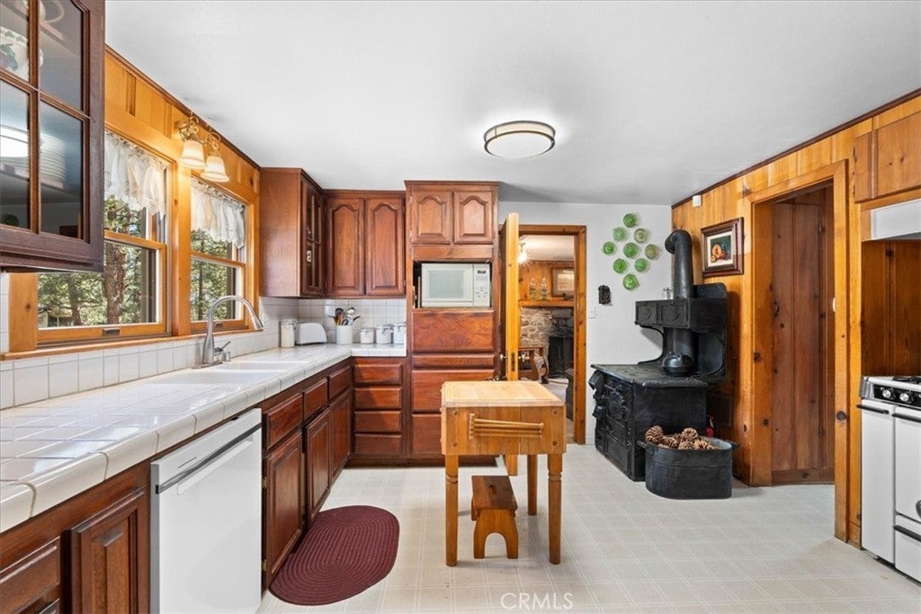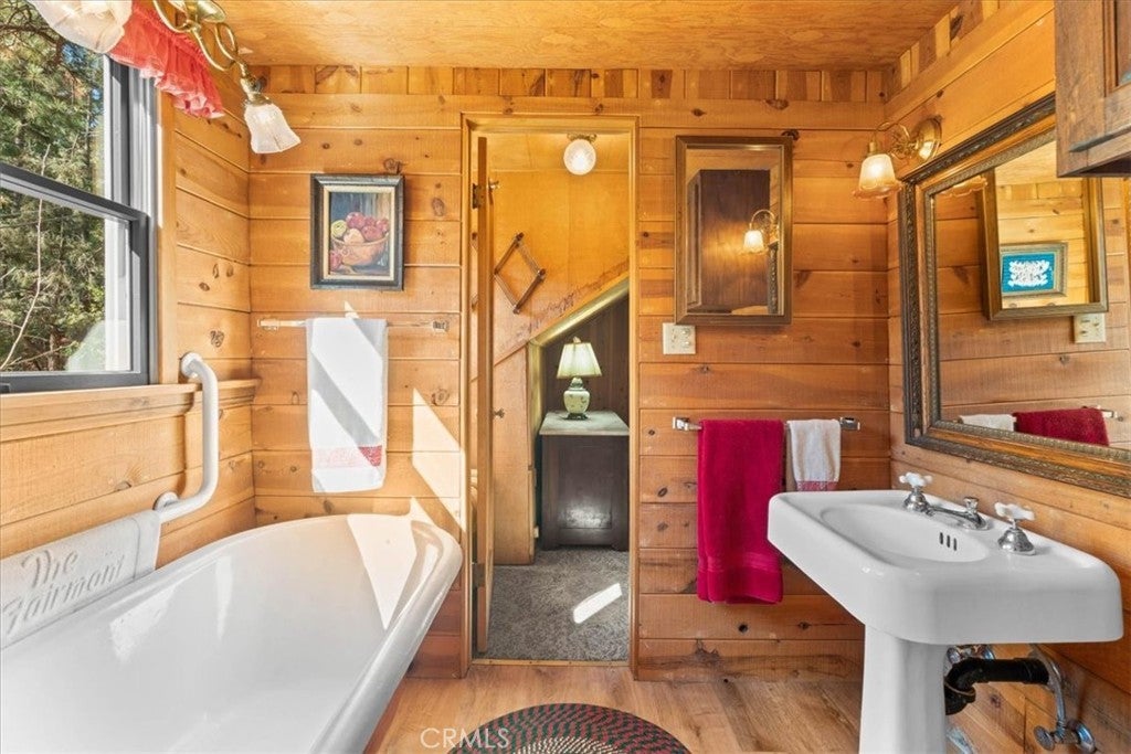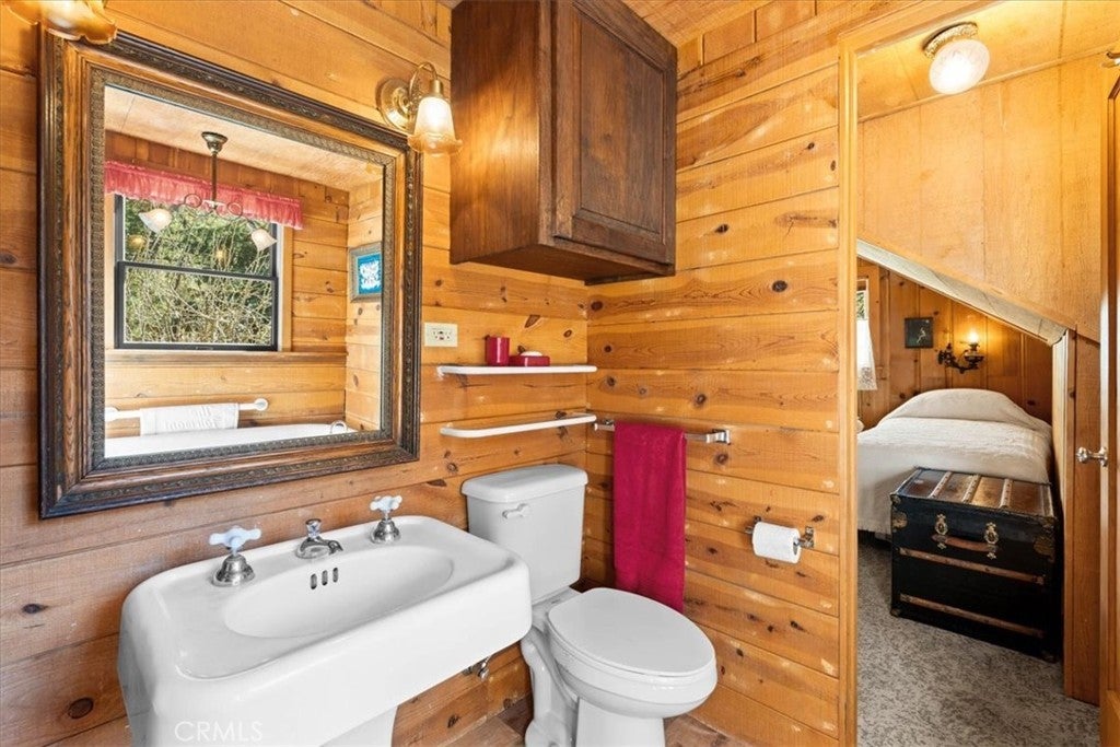 The impeccably maintained historic Logsdon estate, where memories of four generations have been made, is available for sale and on the market for the first time ever! This 3 bedroom 2 bathroom full time cabin offers an abundance of mountain charm, modern updates and a functional floor plan that is sure to please. Originally constructed in 1932 by master craftsmen, the house is on an elevated corner lot perfectly situated to offer easy walking options to the lake and quaint village, views of the mountains, and a park like setting that offers peace and tranquility. Inside, the large custom front door provides a grand entry to a large living room with a native rock fireplace. Knotty pine tongue and groove material adorns the walls in authentic mountain style. The large country kitchen is fully equipped with dishwasher, gas range, and ample counter space for holiday meals or just the weekend round of flapjacks. The kitchen also includes a functional antique cast iron cook stove. The indoor laundry is conveniently located around the corner, along with main floor bedroom and remodeled bathroom, bringing form and function together seamlessly. The newly-remodeled bathroom features a glass enclosed shower and hand made Moroccan Zellige tile. All interior doors have been button built and offer excellent craftsmanship. Upstairs, the wide staircase and landing lead to two more bedrooms, each with plenty of room and offering tree top views of the natural Jeffrey and Ponderosa pines. Upstairs is also where you will find the second bathroom, with the highlight being the majestic claw foot soaking tub and new vinyl plank flooring. Other modern updates in the house include dual pane windows, forced air central heat, and alarm system. Outside, the sturdy covered front porch with native log support beams is your zen zone and a perfect opportunity to relax and watch the birds and squirrels, all while enjoying the four seasons. The side patio area offers fenced garden beds and access to the many fruit trees, lilacs and other plants that adorn the garden. The landscaping is watered with a full system of automatic sprinklers. Down in the garage is a soft water system and forced air furnace. This once in a lifetime opportunity will not last long, so come take a look before it is locked up by another family for another 100 years!!