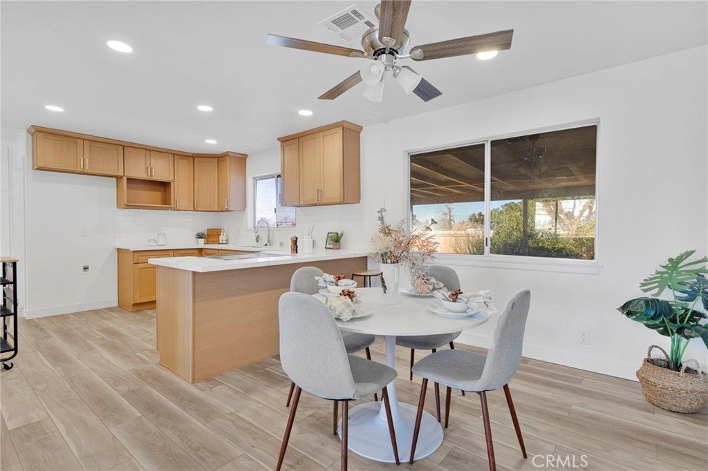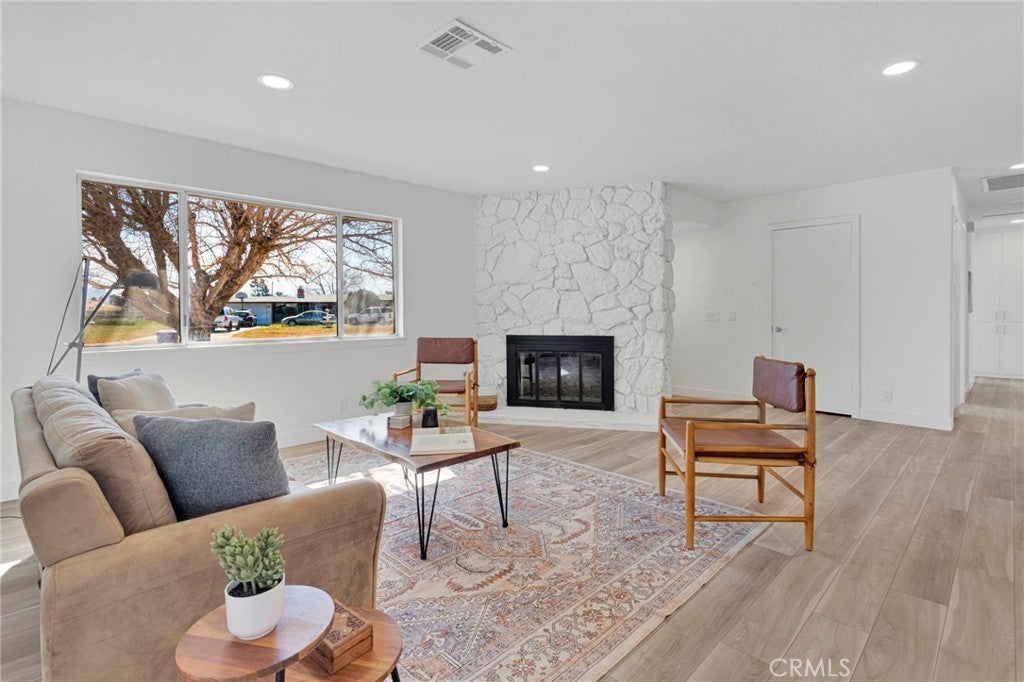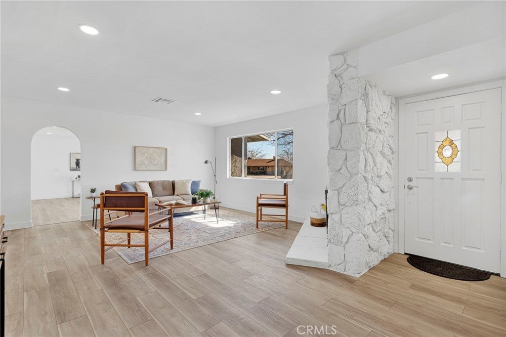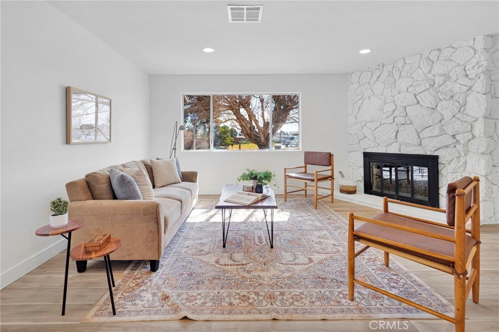 Welcome to this beautifully remodeled Apple Valley home that is truly move-in ready. Designed for comfortable living and effortless entertaining, this home features a welcoming living room with a cozy fireplace and a spacious family room with a second fireplace—perfect for gatherings with family and friends. A large office space offers flexibility for working from home, hobbies, or additional living space. Nearly every detail of this home has been updated, including a completely new kitchen, new flooring, fresh paint, new baseboards, updated doors, and upgraded electrical and plumbing—creating a modern and refreshed interior throughout. The oversized garage provides excellent storage and functionality and even includes its own bathroom, making it ideal for a workshop, projects, or extra convenience. Situated on a spacious corner lot, the backyard features a covered patio that stretches the length of the home—perfect for outdoor dining, entertaining, or simply relaxing and enjoying the desert evenings. This is the kind of home where all the work has already been done—just move in and enjoy.
