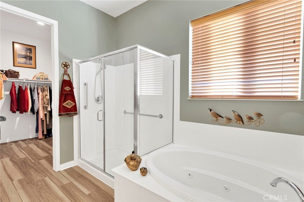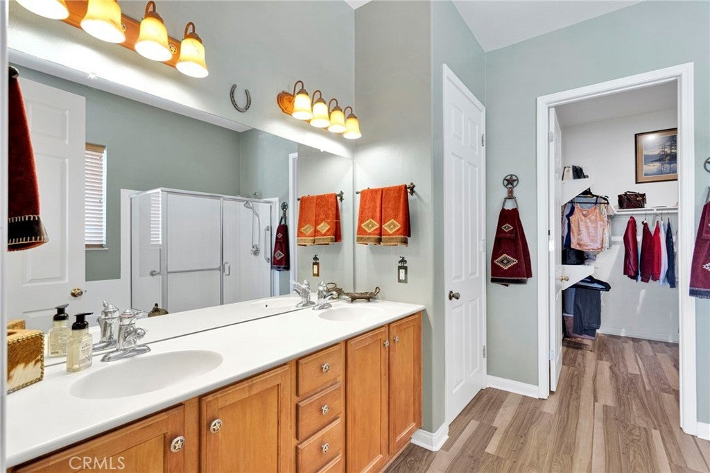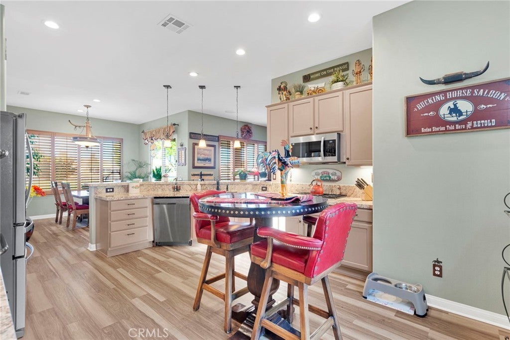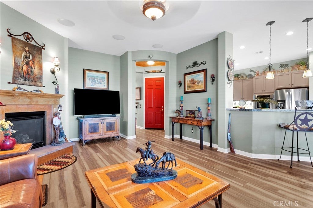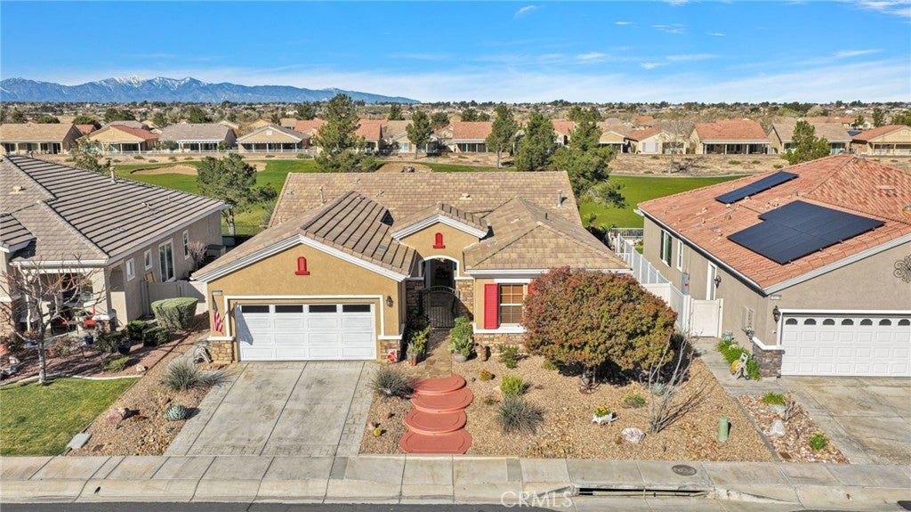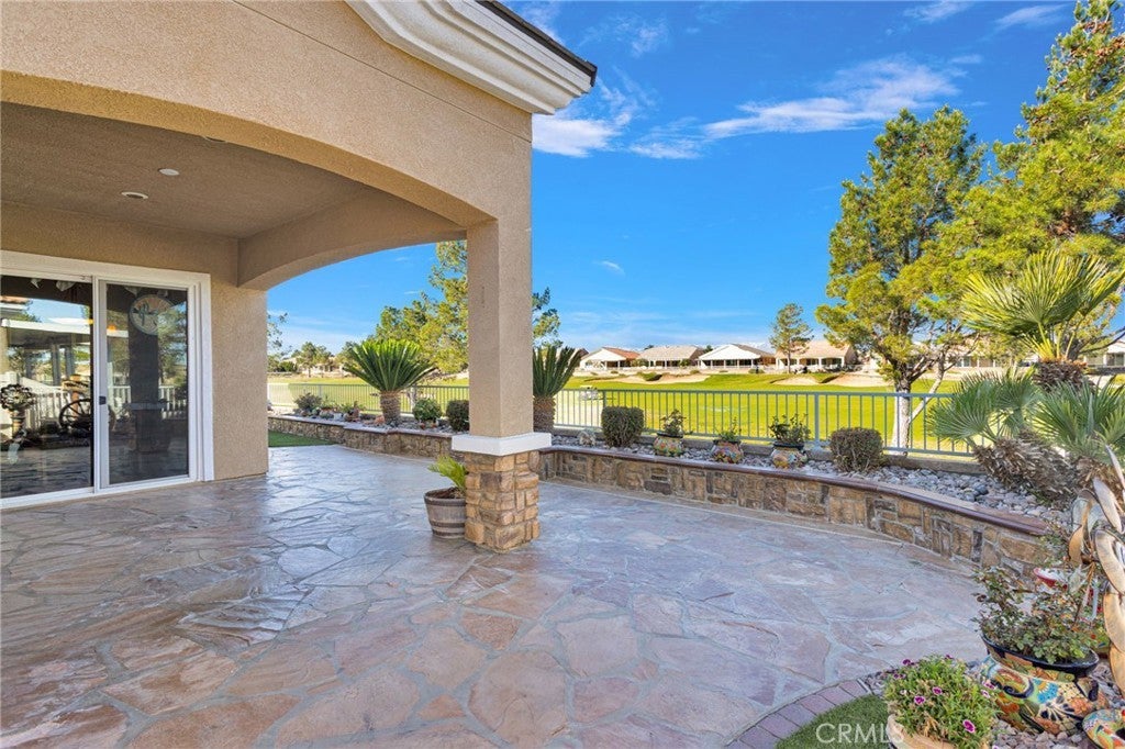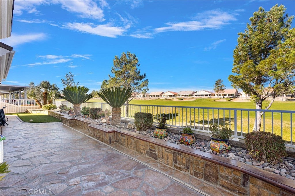Welcome home to this stunning Magnolia model located on the golf course in the highly sought-after 55+ community of Sun City by Del Webb in Apple Valley. Enjoy breathtaking views of the fairway and surrounding mountains from this beautifully upgraded home filled with character and country charm. Inside, you'll find wood flooring throughout, offering both durability and easy maintenance. The kitchen is the heart of the home, and features upgraded granite countertops, a custom copper sink with a modern faucet, stainless steel appliances, unique pendant lighting, and wood-toned plantation shutters(throughout). The open layout makes it perfect for everyday living and entertaining. This split floor plan offers privacy and functionality. The oversized primary suite enjoys golf-course views and includes a spacious ensuite bathroom with a dual-sink vanity, soaking tub, walk-in shower, private water closet, and large walk-in closet. On the opposite side of the home, you'll find a flex room/den that can easily serve as an office, craft room, or potential third bedroom, along with a spacious secondary bedroom with a walk-in closet. The living room is warm and inviting, highlighted by a distinctive copper-and-alder-wood fireplace with a raised hearth and built-in sconce lighting, creating the perfect cozy gathering space. The private front courtyard is ideal for al fresco dining and truly feels like an extension of the kitchen—perfect for hosting family and friends. Relax on the covered backyard patio while enjoying golf course views. The professionally sealed flagstone surface and low-maintenance planters with drip irrigation create an outdoor space that is both beautiful and easy to care for. Some of the additional upgrades include a custom-finished garage with built-in storage and custom interior paint. Bonus... on the sides of the home, you have a dog run with wrought-iron fencing and a small storage shed. With many more thoughtful upgrades throughout, this home is truly a must-see to appreciate everything it offers. Located in the vibrant Sun City Del Webb community, residents enjoy two clubhouses, pools, golf, and numerous amenities. Conveniently situated near shopping, dining, entertainment, and medical facilities. Come experience the views and charm of this exceptional golf course home.