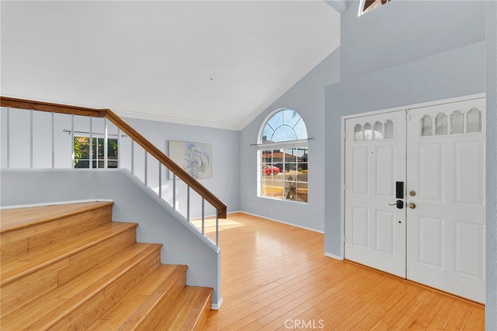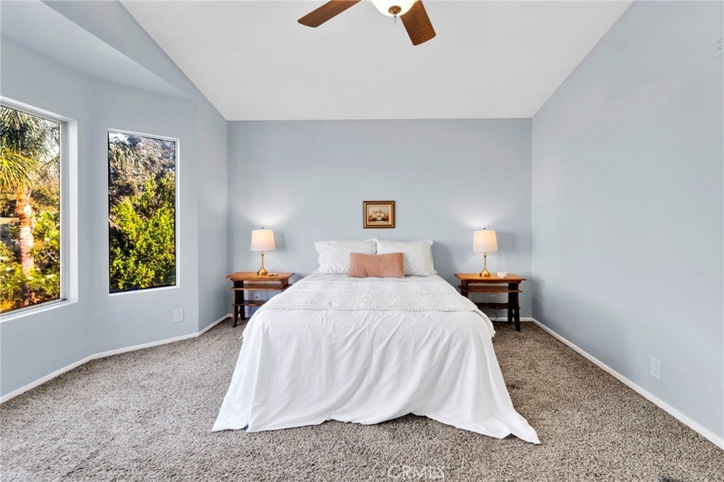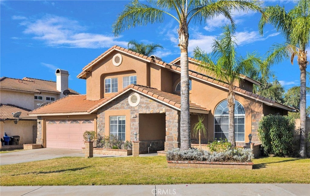 Welcome to Evergreen Lane, located in Central Fontana. Just a short distance to multiple freeways, shopping centers, museums, parks and favored local gathering spots for families! Curb appeal is at an all-time high with this one, sitting on a cul-de-sac boasting mature trees, palm trees and year-round greenery. Walking in you are greeted with vaulted ceilings and a grand staircase seamlessly connecting to the kitchen and additional living space. On the main level you have bedroom and half bathroom perfect for multi-generational housing or for hosting guests! On the second level you have three additional bedrooms off of the landing space! The backyard is lined with a plethora of greenery and both avocado trees and lime trees, offering seclusion and peace from the everyday hustle and bustle! The home is equipped with solar and an EV charger that helps off-set costly electricity bills at a low assumption price! Additional upgrades include an upgraded electricity panel, newer AC unit, pull through garage, individual laundry room and newer kitchen appliances! Affordability in the city of Fontana just called, and you must go!