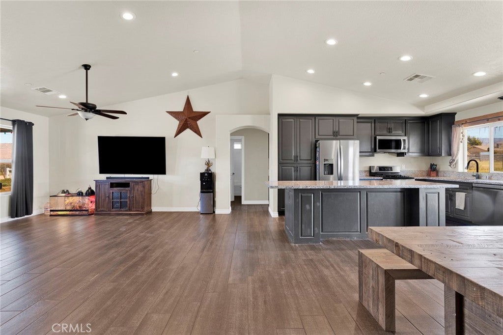 Beautiful newer built 4-bedroom, 3 bathroom home on 1.14 fully fenced acres in a desirable Apple Valley location. This open concept home features an oversized kitchen with a large island, shaker-style cabinets, granite countertops, wood-grain tile flooring, abundant storage, and a spacious split floor plan. All bedrooms are generously sized with large closets, and the primary suite features a soaking tub, separate vanities, and two walk-in closets. The dining area opens to a well-maintained backyard with an oversized patio and beautiful desert views. The oversized 2-car garage is fully drywalled and includes 220 power. Outdoor features include a custom playhouse, zipline, and plenty of room to enjoy the property. Turn key, just awaiting its new owners! Seller is motivated! Call today for a private tour.