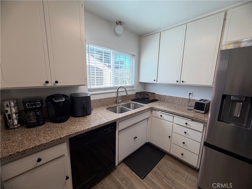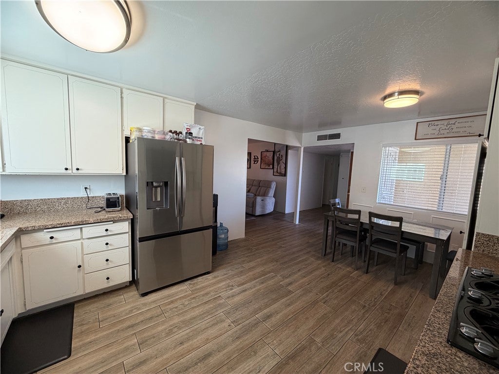 Beautifully updated home offering flexible living space and thoughtful upgrades throughout! Originally a 3-bedroom, 2-bathroom home with a 2-car garage, the garage has been tastefully converted into a spacious additional bedroom along with a separate indoor laundry room—ideal for added functionality. The original garage door remains in place, allowing for an easy conversion back to a garage if desired. The interior showcases modern updates, including solid surface flooring throughout, a stylish kitchen with granite countertops, an undermount sink, custom cabinetry with updated hardware, and a functional layout. Both bathrooms have been upgraded with contemporary vanities and sleek, lighted mirrors. Enjoy the fenced front yard with chain link fencing and a welcoming patio area accented by stacked brick edging—perfect for relaxing outdoors. The backyard features a large covered patio, offering plenty of space for entertaining. The property previously featured an in-ground pool and spa. The spa has been filled, and the pool will be professionally filled with proper permits prior to close of escrow. Home offers approximately 1,168 square feet of living space (not including the converted garage). Don’t miss this versatile and move-in ready property with room to customize to your needs!