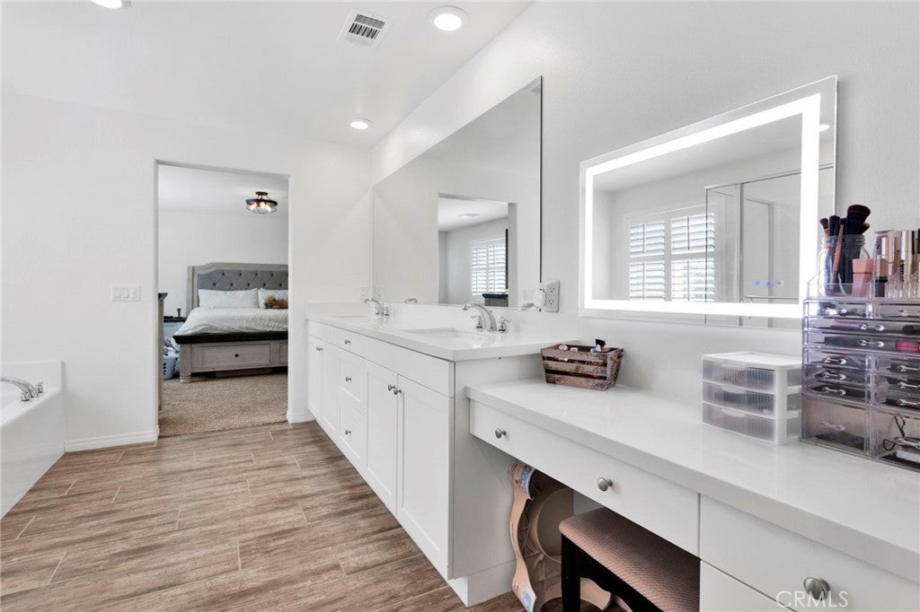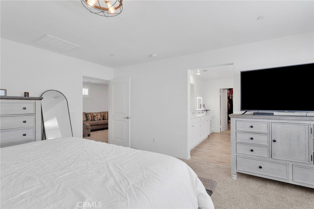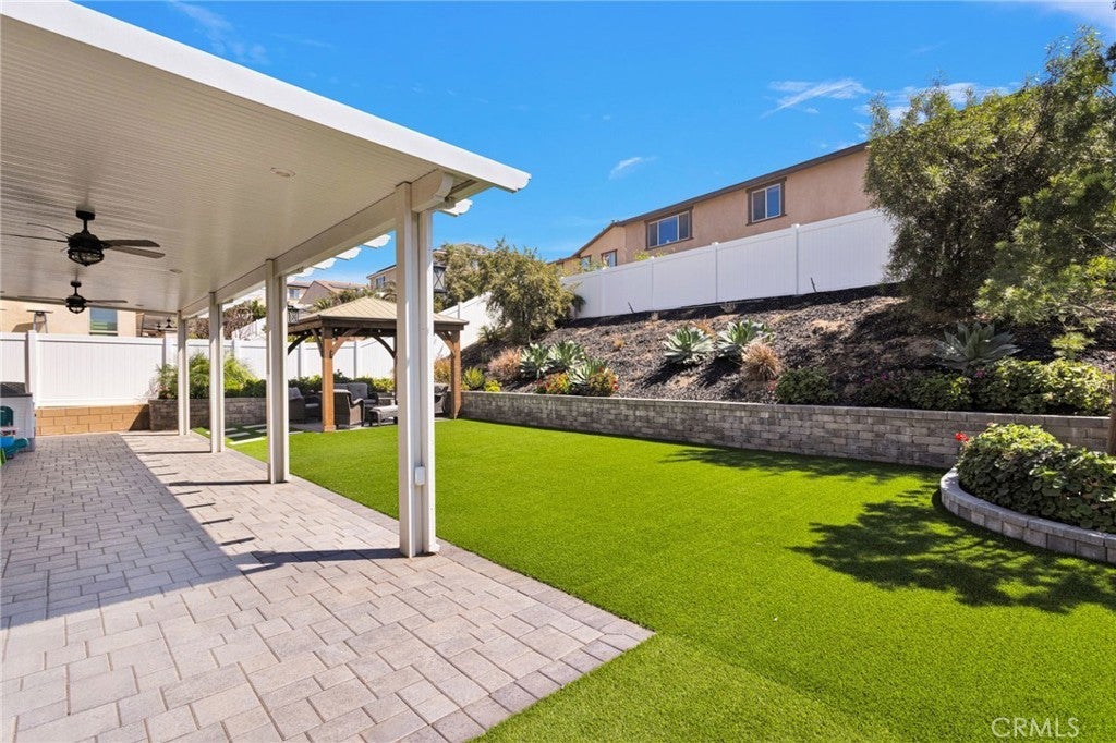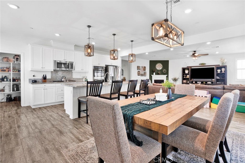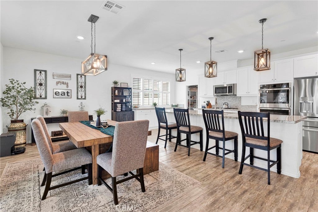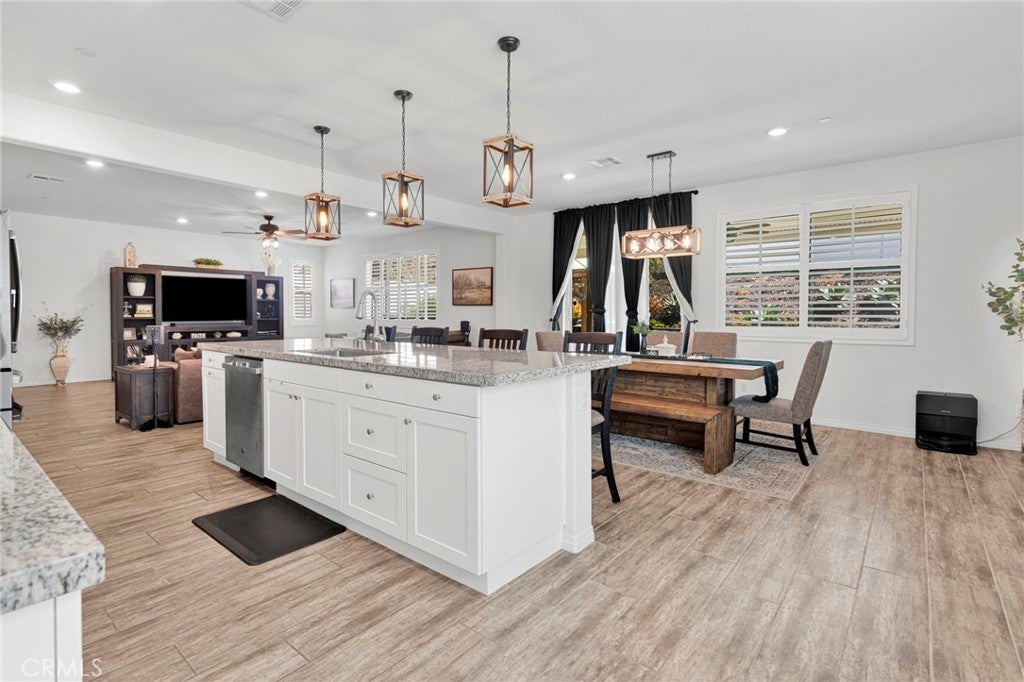 Welcome to this near-new, beautifully upgraded multi-generational home located in the desirable Shadow Rock community of Jurupa Valley! Boasting over 2,800 sq ft of living space, this thoughtfully designed home offers 5 bedrooms and 3 full bathrooms, including a spacious downstairs bedroom and full bath—perfect for guests or extended-family-style living. The home features an open-concept floor plan, with the kitchen overlooking the great room, creating the perfect space for entertaining and everyday living. The kitchen is truly the heart of the home, showcasing an oversized island, sleek white cabinetry, granite countertops, newer stainless steel appliances, and a large walk-in pantry with abundant storage. The great room features a cozy fireplace, setting the tone for warm gatherings and lasting memories. Throughout the downstairs and bathrooms, you’ll find neutral-colored designer wood-look plank tile flooring that is both stylish and easy to maintain, while the upstairs bedrooms, stairs, and loft feature durable, water-resistant carpet. Additional upgrades include custom lighting and ceiling fans, plantation shutters throughout, and a host of smart and efficiency features, such as a full interior and exterior security system, FLO by Moen smart water leak detection system, Rain Bird irrigation system with automatic rain shut-off, and Smart ovens controllable via phone. The home is equipped with a generator-ready electrical panel, including an inlet box and transfer switch, providing peace of mind and continued functionality during power outages. Step outside to your private backyard oasis, designed for low-maintenance living and entertaining. Enjoy artificial turf, built-in drainage, paver walkways, and a custom gazebo—perfect for BBQs and gatherings. The extended Alumawood patio cover features lighting and two ceiling fans, allowing you to enjoy outdoor living year-round. There’s even space to add a small pool, spa, or play area. Located near the freeway, major shopping, schools, and within a community offering beautiful parks and walking trails, this home truly has it all. Don’t miss your opportunity to own this exceptional home—it won’t last long!