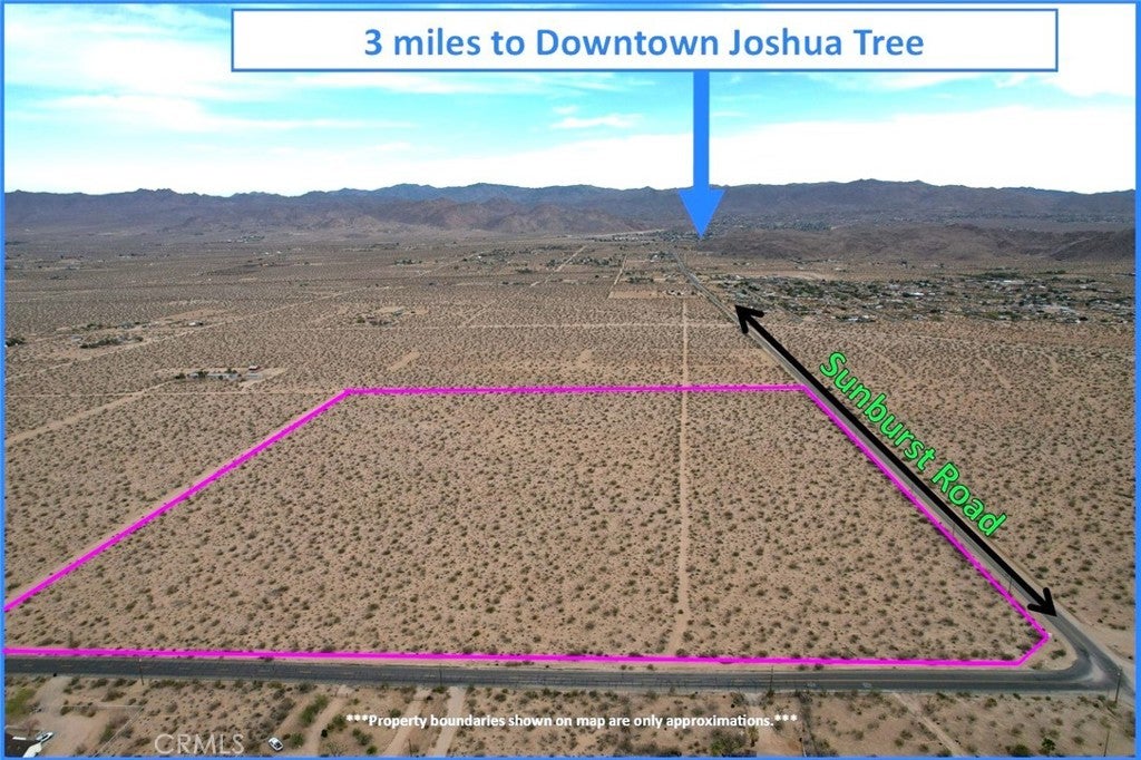 PRICE REDUCTION on a Corner Lot! 38.18 Acres (APN: 0600-131-06) GPS: 34.178412, -116.30816 This corner lot is located in Joshua Tree, CA. San Bernardino County has zoned this property Joshua Tree/Rural Living (JT/RL). This zoning allows for properties to be subdivided into 2.5 acre residential parcels or build your dream home on a large lot. Overhead electricity is available on site (along Sunburst St) as well as across Golden St. The Joshua Basin Water District services the area and provides water in the street along both Sunburst and Golden St. Residents have septic tanks for their sewer needs. Living in Joshua Tree, CA, offers a unique blend of natural beauty and laid-back desert living. Imagine building your desert getaway and waking up to bright desert sunrises, panoramic views of rugged mountains, or dark starry nights. Endless opportunities for outdoor adventures are a short drive away in Joshua Tree National Park. There's always something exciting to explore. Plus, the tight-knit community fosters a sense of belonging, with local shops, art galleries, and events showcasing the area's vibrant culture. Whether you're seeking tranquility or adventure, Joshua Tree welcomes you with open arms. This property does not yet have an address. While the boundary lines on the map offer a glimpse, they are only approximate. A Buyer should verify boundaries, zoning and utilities, ensuring every aspect aligns with their vision for the property.