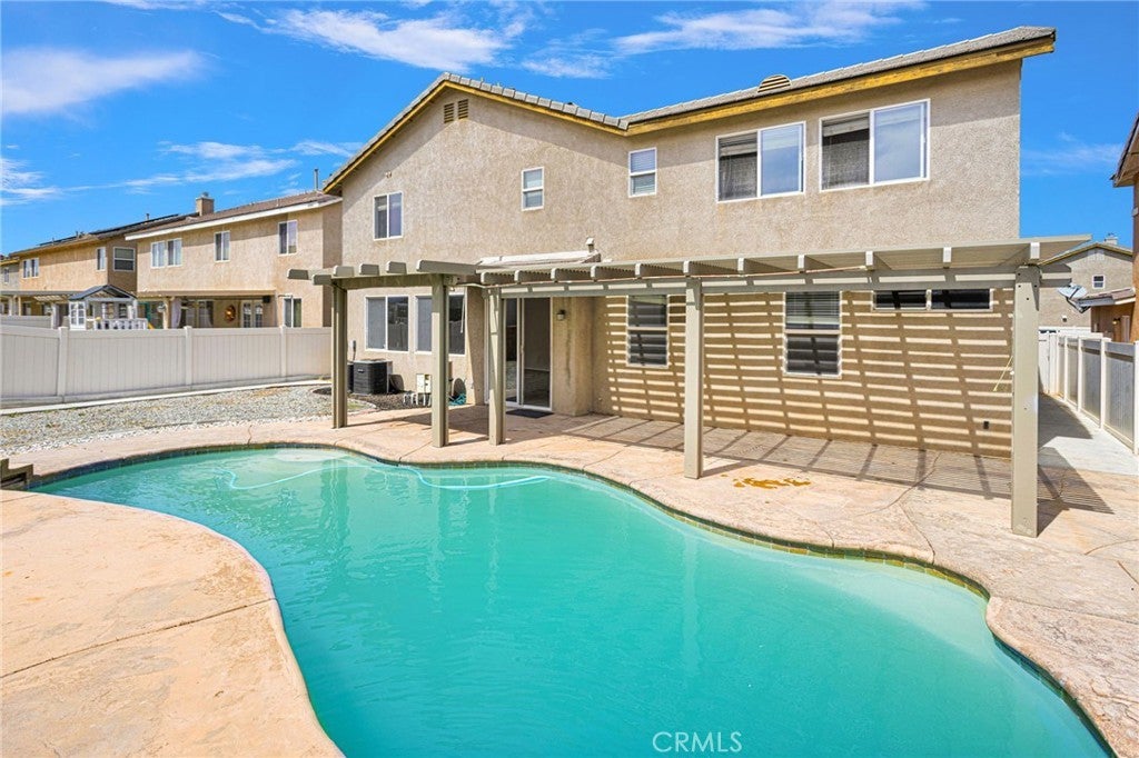POOL HOME ! Designed for spacious layout and the big family, perfect for entertaining. 5 bedrooms 4 bath with 3,600 square feet of living space. Down stairs includes BEDROOM WITH FULL BATH! and bonus room for extra space or another bedroom and 2nd bathroom. Enjoy a formal living room with fire place, and seperate family room. The open concept kitchen shines bright with an abundance of natural light, center island with sink, lots of cabinet space and a walk in pantry. Upstairs you'll love the huge loft area, the perfect lounge area, theater room, whatever you can think of. Laundry room spacious bedrooms and a primary bedroom with an oversized walk in closet, his and hers sinks, separate tub and shower. BACK YARD POOL is the finishing touch ! perfect for entertaining big back patio and plenty of room for gatherings.