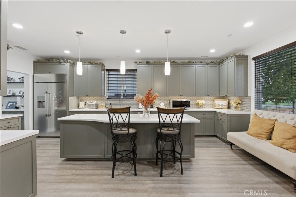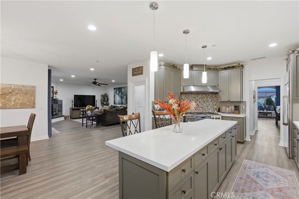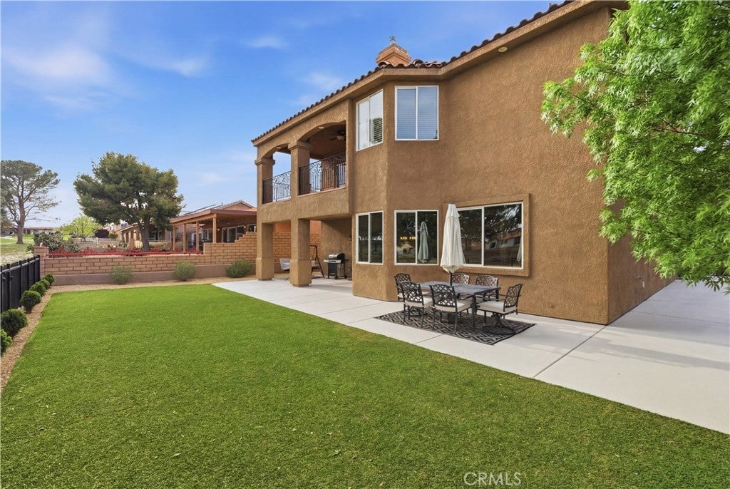 Luxurious Living in Silver Lakes: Experience a resort-style lifestyle in this stunning custom-built home, perfectly situated in the serene community of Silver Lakes in Helendale, CA. Spanning a spacious floor plan with four bedrooms and three full bathrooms, this residence blends modern sophistication with eco-friendly innovation. Interior Features: Step inside to find brand-new Luxury Vinyl Plank (LVP) flooring throughout. The kitchen is equipped for culinary excellence, featuring elegant quartz countertops, a large center island, and high-end stainless steel appliances, including a Dacor double-oven gas range and a premium built-in Dacor refrigerator. Abundant storage and counter space make this a standout feature of the home. Primary Suite & Versatility The expansive primary suite serves as a true sanctuary, complete with a private en-suite bathroom and a generous walk-in closet. The entry-level bedroom provides excellent flexibility for guests, a multi-generational setup, or a quiet home office. Sustainable Power & Efficiency. This home is equipped with a robust solar system paired with a Tesla Powerwall 3 battery for a full-home backup. The system is grandfathered into NEM 2.0 net metering for approximately 18 years, providing a significant advantage for managing utility costs. Outdoor Amenities: The backyard is designed for relaxation and gatherings, boasting views of the golf course, low-maintenance artificial turf for year-round greenery, and a natural gas BBQ hookup. Extensive parking is available for vehicles and recreational equipment. Silver Lakes Community Amenities Membership in the Silver Lakes HOA provides access to premier amenities, including:Golf: 27 holes of championship golf with three unique 9-hole tracks. Lakes: Two private lakes for boating, fishing, and kayaking.Clubhouse: Facilities include dining, a fitness center, a swimming pool, and tennis and pickleball courts.Additional Perks: An equestrian center with stables, RV storage, and community programs—all within a peaceful desert setting.