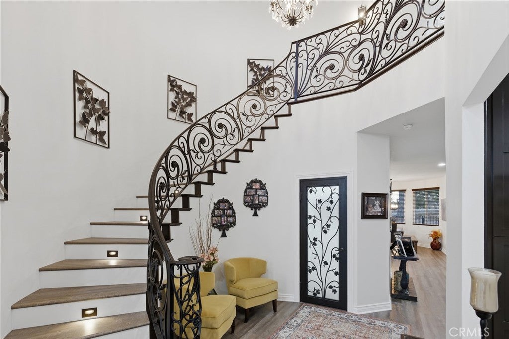 Breakfast Bar, Balcony, Ceiling Fan(s), Eat-in Kitchen, High Ceilings, Pantry, Quartz Counters, Stone Counters, Recessed Lighting, Storage, Tile Counters, Bedroom on Main Level, Entrance Foyer, Primary Suite, Walk-In Pantry, Walk-In Closet(s), Two Story Ceilings, Wine Cellar