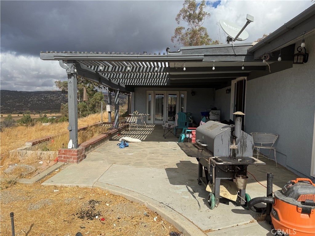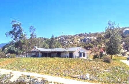 This stunning ranch-style home sits on 24 acres of agriculturally zoned land in Aguanga. The main residence features 4 bedrooms and 2 bathrooms, spanning 1,972 square feet of living space, with an additional detached casita that includes its own bathroom. Perched atop a hill, the home is surrounded by mature trees and offers sweeping views. The kitchen is equipped with granite countertops, custom cabinetry, and upgraded stainless steel appliances, including an oven, separate convection oven, 5-burner cooktop, and a spacious center island. This open kitchen flows seamlessly into the living room, creating an ideal open floor plan. The living room offers large picture windows with scenic views and wooden ceilings with exposed beams. The bathrooms have been updated with modern countertops and upgraded cabinetry, and tile flooring is found throughout the home. The backyard includes a covered patio and an indoor laundry room, adding convenience and comfort. The property boasts extensive usable land and is filled with potential, offering a unique opportunity to enjoy both comfort and the beauty of a vast, agriculturally rich landscape.