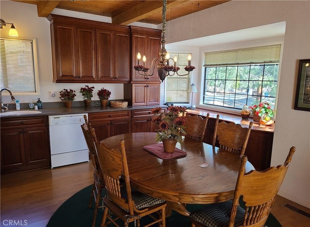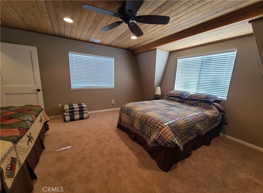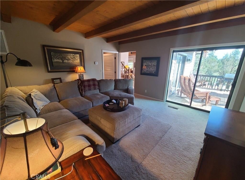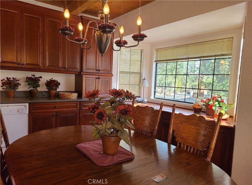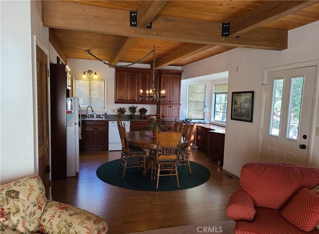 This lovely mountain home is immaculate, like new, barely used, and fully furnished—a roomy five-bedroom custom property on .25 acres. The view stares at the mountains to the south and peak-a-boos Bear Mountain through the trees. The property sits on the curve of a corner overlooking Van Dusen Canyon with hiking trails into the National Forest. The exterior is a no-care vinyl that mimics well-cared-for wood and looks newly painted. There is a small fenced area for dogs in the rear, a side deck, and two wonderful rear decks to take in the view. There's also a patio on the entry side. Almost everything stays except the paintings. Don't worry about the little things like cleaning supplies and the vacuum; it all stays. The family room has a huge sectional plus room for games and TV. There's a workshop underneath and a separate cemented step-down storage that is begging to become an indoor theater. There's also an ample size laundry /utility room. You'll find storage everywhere. We can't say enough about the condition of this home, you will have to see for yourself. If you desire large open spaces for everyone, this could be your ideal cabin.