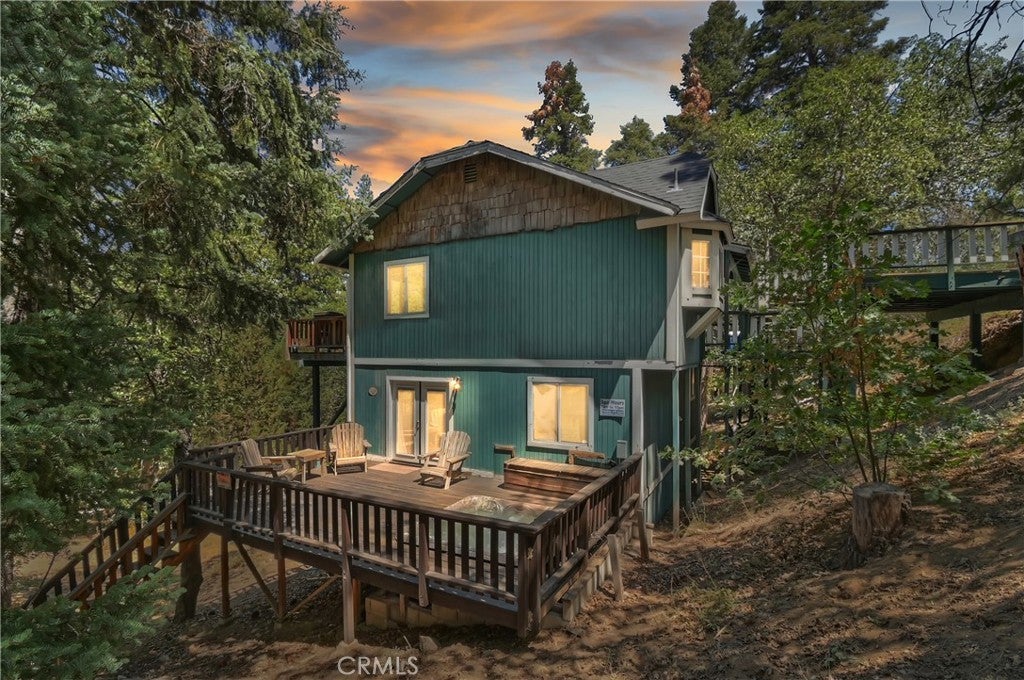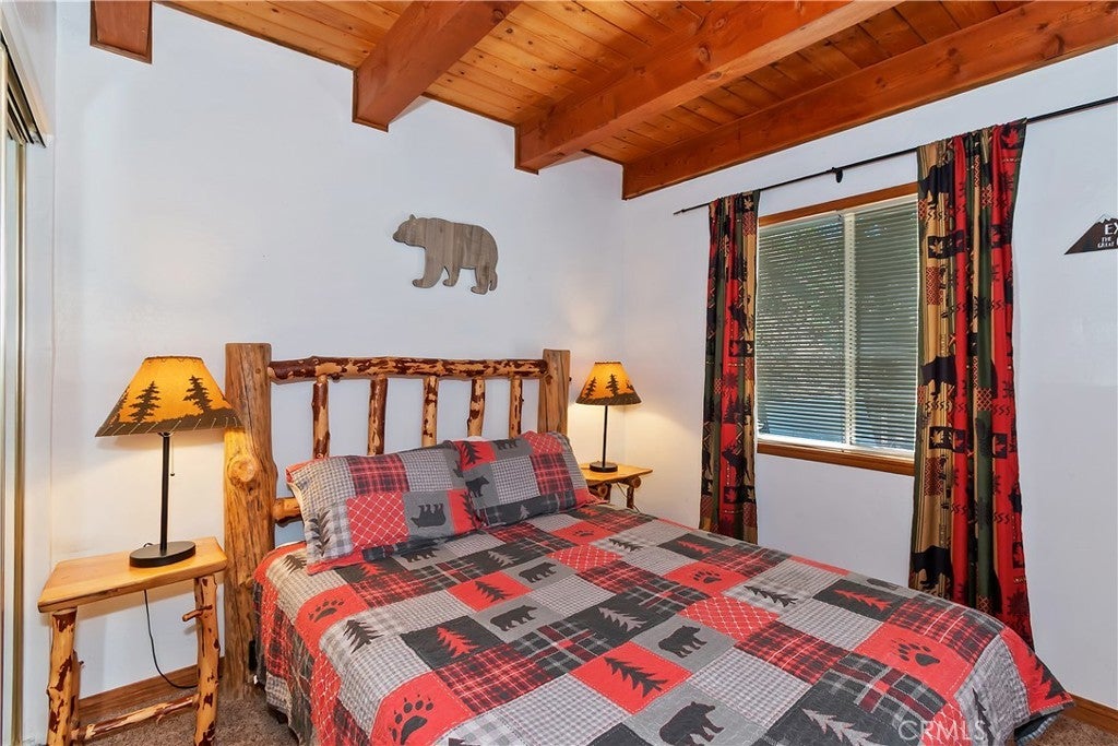 Welcome to your secluded retreat in the heart of Big Bear Lake! This charming 3 bedroom, 2 bathroom home boasts 1434 sq ft of living space on a spacious 13110 sq ft lot, surrounded by towering pine trees. Features of this home include vaulted ceilings and a cozy stone fireplace in the living room, a spacious deck for outdoor entertaining, an open kitchen complete with a breakfast bar, and your own private sledding hill. The master bedroom has an ensuite bathroom and a private balcony with stunning views of the surrounding forest and a spa. Walking distance to Bear Mountain ski resort, and a quick drive to all the attractions Big Bear has to offer, this home is perfectly situated for year-round enjoyment. Whether you're looking for a peaceful retreat to escape the city, or a fun-filled vacation home for family and friends, this property has it all. With plenty of outdoor activities nearby, such as hiking, mountain biking, fishing, and skiing, you'll never run out of things to do. Enjoy the convenience of being minutes away from the golf course, zoo, the lake, and the bustling shops and restaurants in The Village. This move-in ready home and comes fully furnished, making it the perfect getaway or full-time residence. Don't miss out on this rare opportunity to own your own private oasis in the mountains of Big Bear Lake. Buyer and buyers agent solely responsible for verifying the accuracy of any and all information provided.