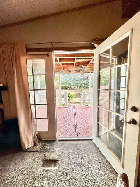 LOCATED in a FAMILY PARK- PRICE IMPROVEMENT Back on the market after $17,000 worth of upgrades. NEW vinyl flooring, New painted kitchen cabinets, newly painted bathrooms and vanities, BRAND NEW water Heater, NEW thermostat and much more. Welcome home to your beautiful mobile home located in a quiet and very well-maintained community FAMILY PARK. Open floor plan with lots of natural light. This home features 2 extra-large bedrooms with a large walk-in closet in the master, and 2 full bathrooms. The laundry room has storage and washer and dryer are included. The kitchen opens up to the dining room and then to the living room. The home also features a carport with enough space for 3 cars. This lot is the only lot in the park with a large back yard and French doors that lead out to a beautiful wood deck the overlooks the snowcapped mountains where you can enjoy your morning coffee and watch the sunrise. The yard has a very mature and high producing lemon and apricot tree. The home has newer carpet, upgraded A/C unit in 2020, and new ducting replaced in 2021. This family friendly park has a swimming pool, hot tub, sauna, dog park, club house, pickle ball courts, shuffleboard, fire pit, and picnic area. Location is perfect for day trips to Oak Glen, Big Bear, Palm Springs, and Cabazon. Property is being sold AS-IS. Space rent is $900 Water is included in space rent. Seller and seller's agent do not warrant any information. Buyers and Buyer's agent to do their own due diligence regarding all aspects of the property