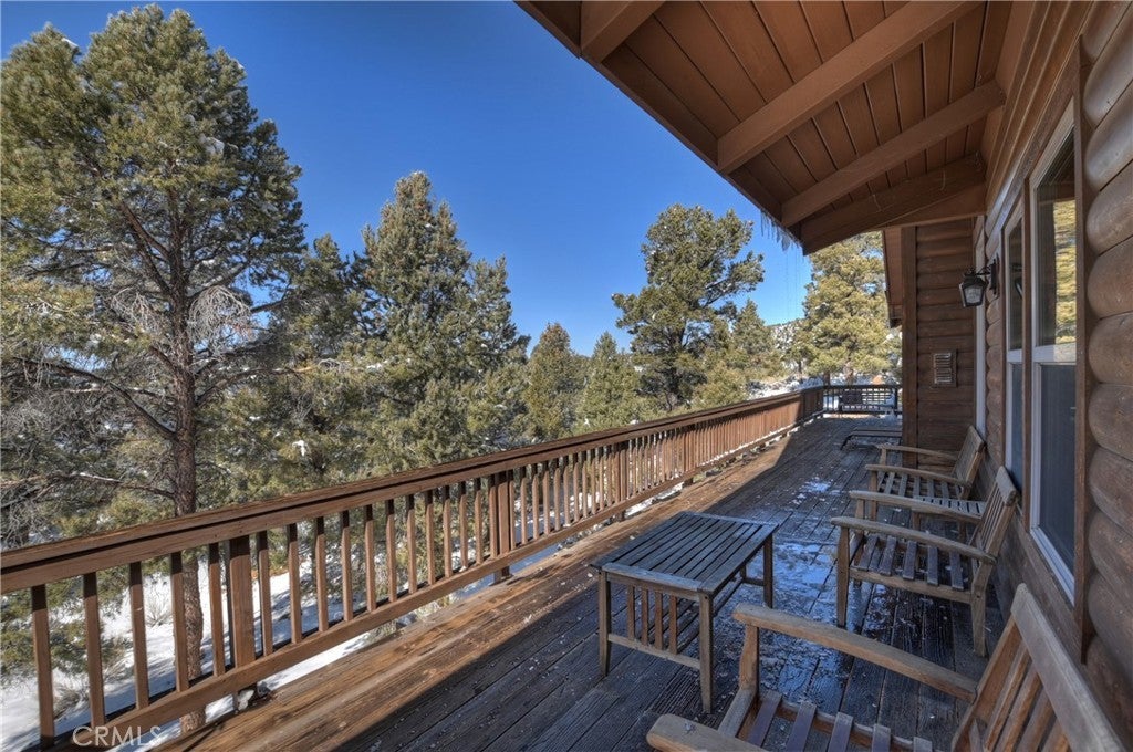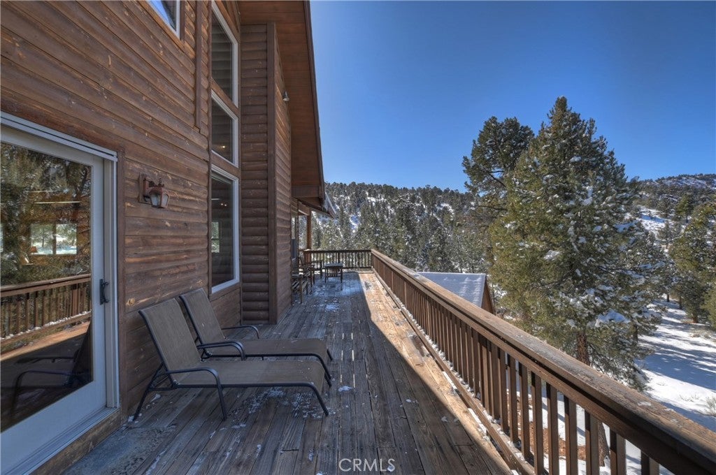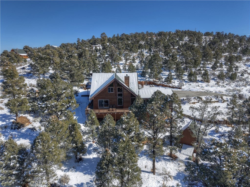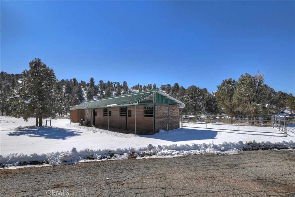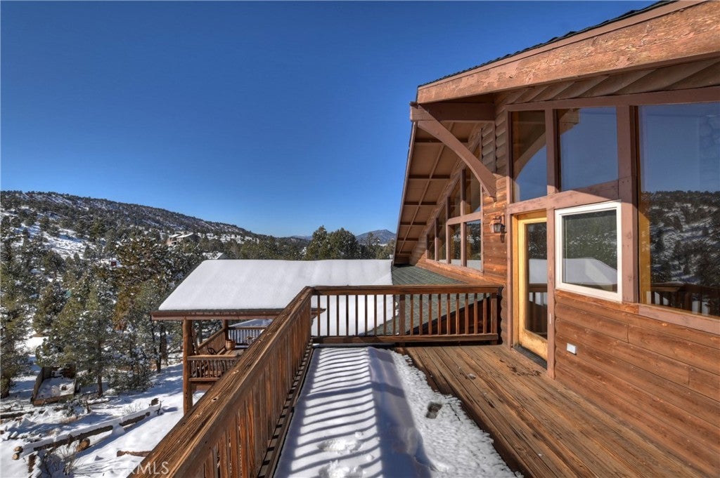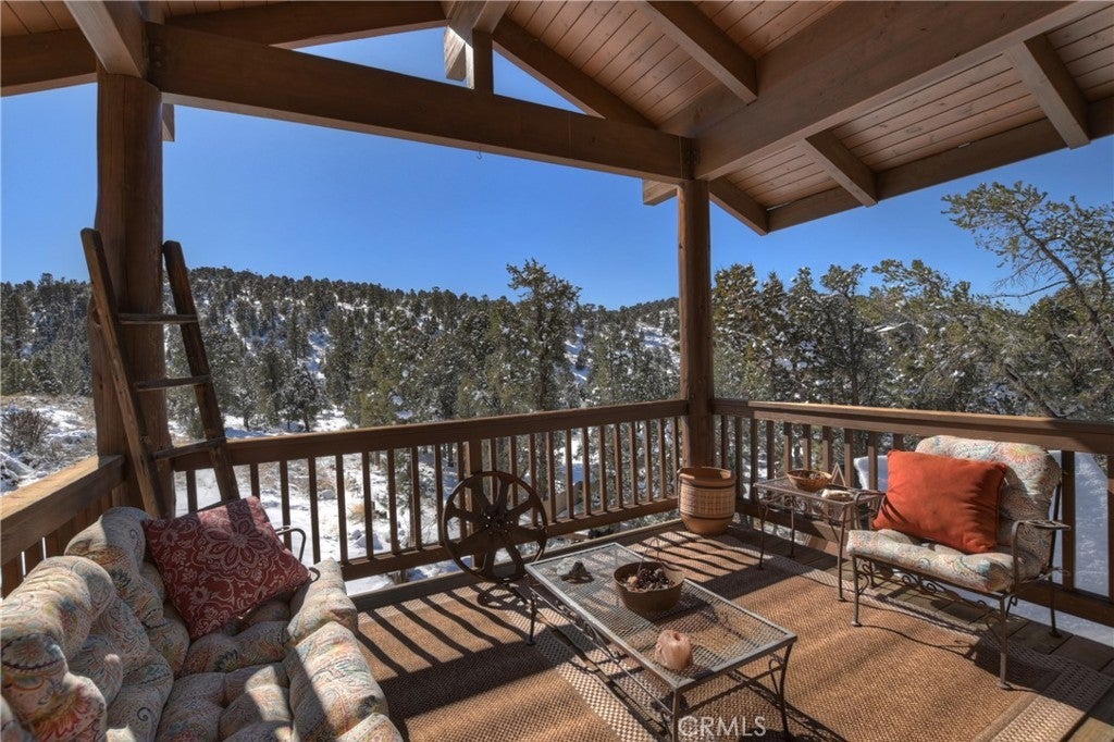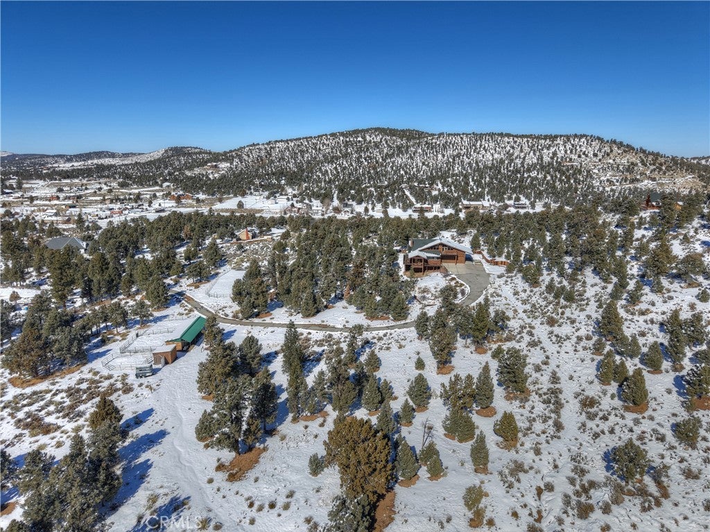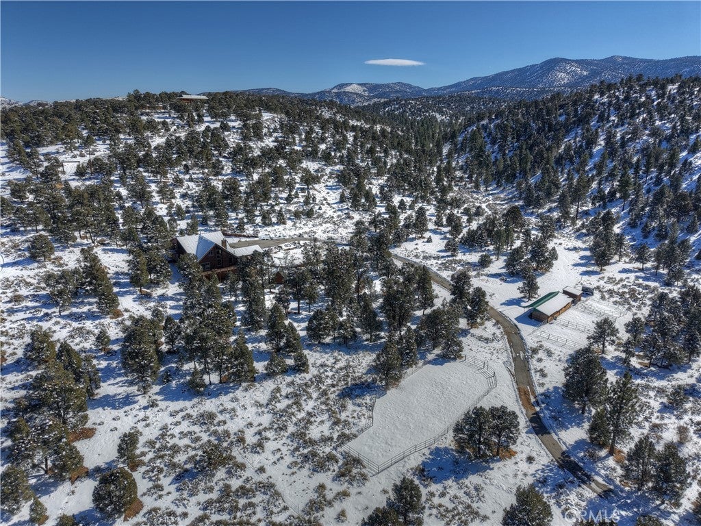 INCREDIBLE, TRANQUIL SETTING ON 10 ACRES! Just wait until you see the views and experience the tranquil setting from this custom five-bedroom (or four-plus loft), four-bathroom ranch-style home all on its own, private well. Measuring approximately 3,300 sq. ft., features include a wide open floor plan, floor-to-ceiling rock fireplace in the living room AND a rock fireplace in the main bedroom, full kitchen facilities with SS appliances including range, dishwasher, microwave, fridge, granite counters, pantry, breakfast bar, ample dining area, central forced air heating, hickory wood flooring, full laundry facilities with deep sink, vaulted ceilings, a three-car, attached garage, extensive redwood decking, a three stall barn, (each with a separate corral), an attached tack room with 1/2 bath, hay-storage shed, a riding arena and covered RV parking with hookups. All this sits on 10 wooded acres in the middle of a pinion forest with views of the surrounding hills and Baldwin Valley. Extensive exterior painting and staining work has just been completed. The perfect setup for equestrian use. Furnishings are negotiable.
