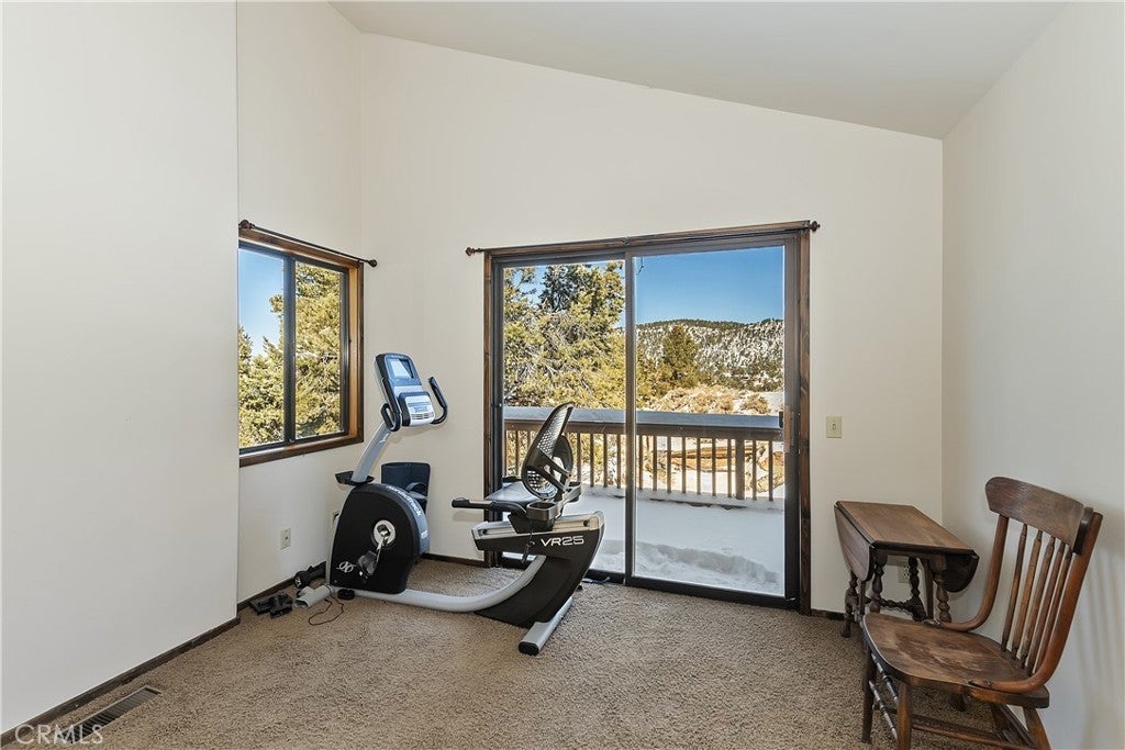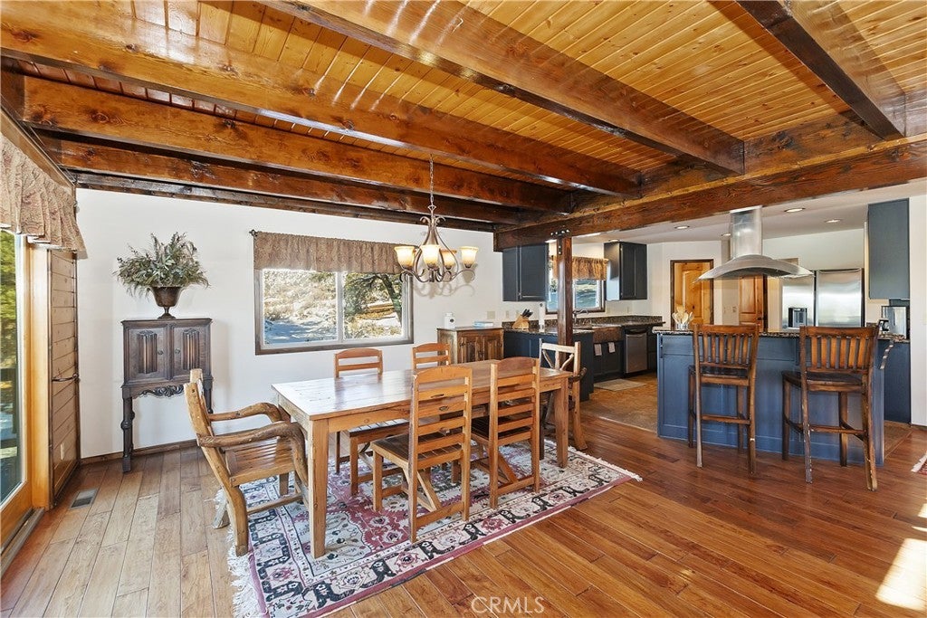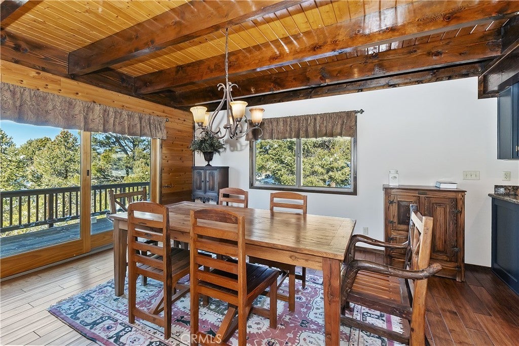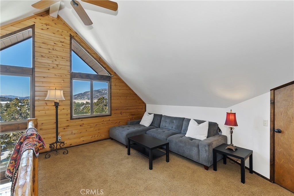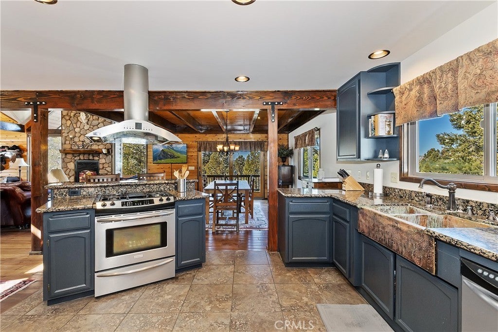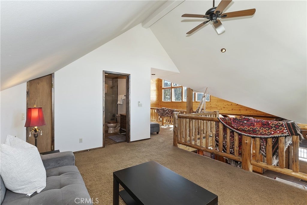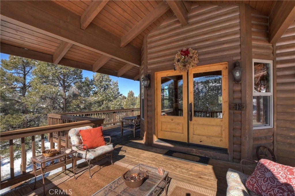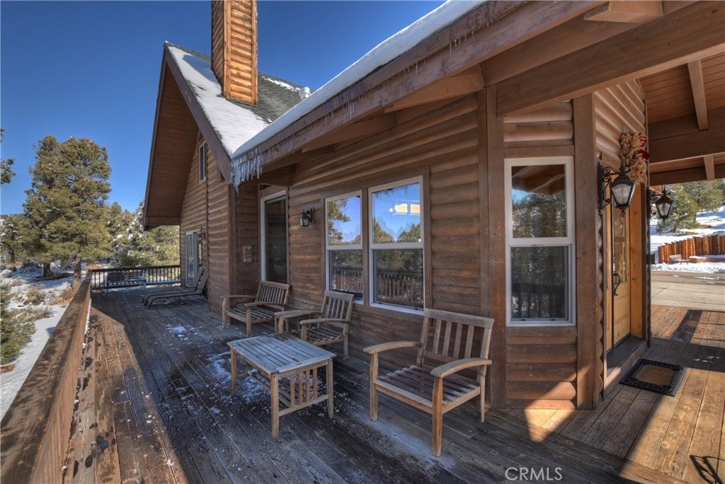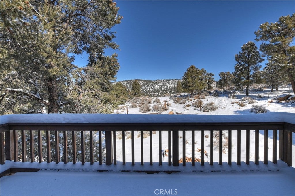 INCREDIBLE, TRANQUIL SETTING ON 10 ACRES! Just wait until you see the views and experience the tranquil setting from this custom five-bedroom (or four-plus loft), four-bathroom ranch-style home all on its own, private well. Measuring approximately 3,300 sq. ft., features include a wide open floor plan, floor-to-ceiling rock fireplace in the living room AND a rock fireplace in the main bedroom, full kitchen facilities with SS appliances including range, dishwasher, microwave, fridge, granite counters, pantry, breakfast bar, ample dining area, central forced air heating, hickory wood flooring, full laundry facilities with deep sink, vaulted ceilings, a three-car, attached garage, extensive redwood decking, a three stall barn, (each with a separate corral), an attached tack room with 1/2 bath, hay-storage shed, a riding arena and covered RV parking with hookups. All this sits on 10 wooded acres in the middle of a pinion forest with views of the surrounding hills and Baldwin Valley. Extensive exterior painting and staining work has just been completed. The perfect setup for equestrian use. Furnishings are negotiable.
