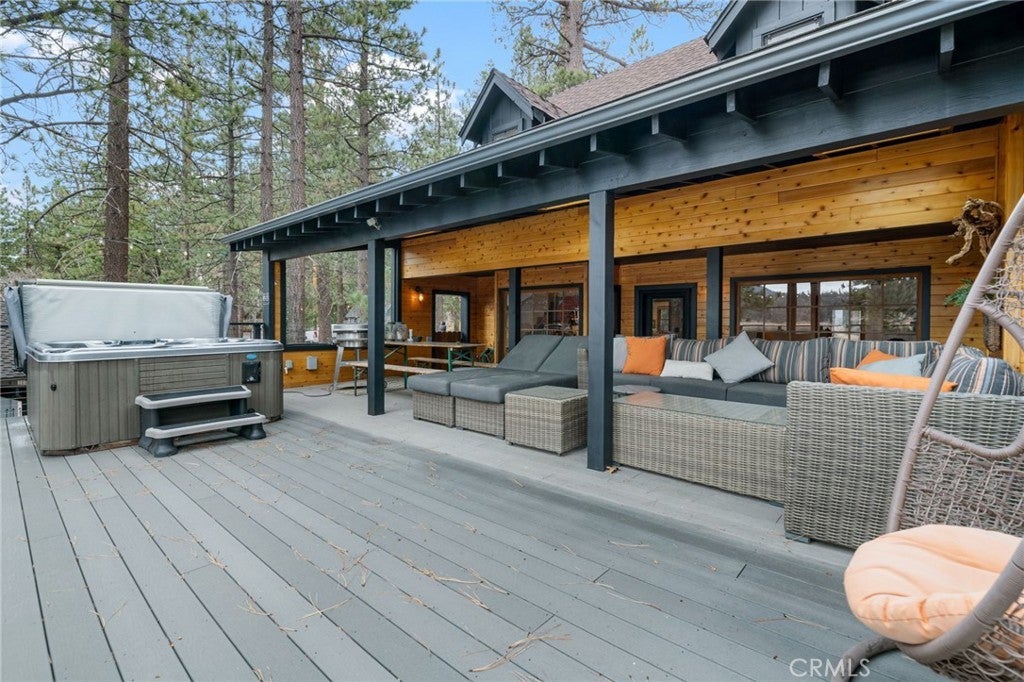 An amazing offering has just hit the Big Bear Lakefront market. You will be hard pressed to recreate this home and it's amazing setting anytime soon. This is the perfect blend of a vintage cabin with tasteful updates for modern living. Nestled on a generous 23,000+ square foot lot, this charming retreat includes a double dock to boot. This inviting cabin features four spacious bedrooms and bathrooms on every level, providing an ideal setting for relaxation and comfort. The main living offers cozy mountain charm with access out to the expansive deck to take in the views or a dip in the hot tub. You will spend countless hours on the deck entertaining and taking in the lake views. The standout feature of this home is the updated lake level open living, perfect for both entertainment and granting ease of access for your indoor/outdoor living. With two garage roll-up doors, you'll enjoy seamless access to the expansive yard and the serene lake beyond. This property is a true sanctuary for those seeking tranquility and a connection to nature. Embrace mountain living at its finest and make this enchanting cabin your personal lakeside retreat.
