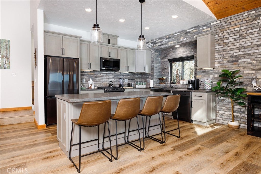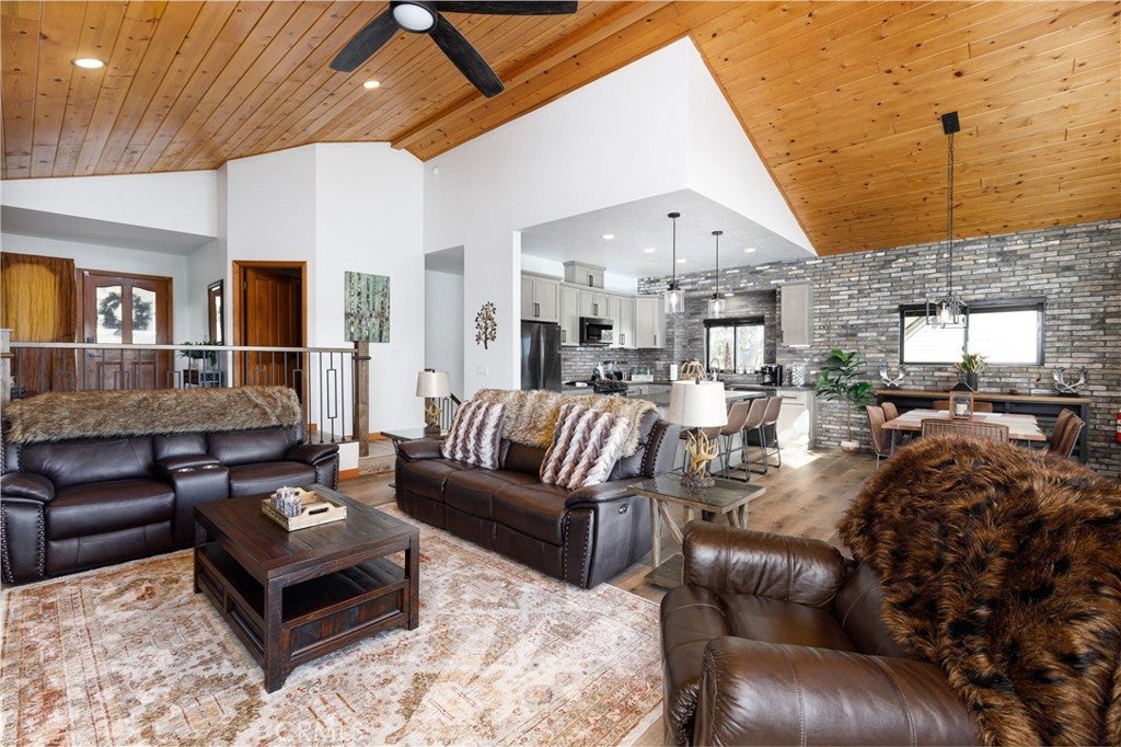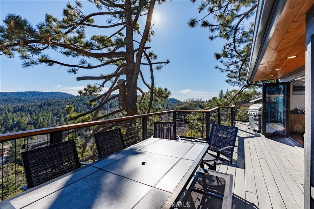 Here is what you have been looking for! Your mountain retreat with Lake Rights that comes fully furnished. This level entry home with two car garage was Completely remodeled in 2024 with no expense spared. It features high-end finishes, luxurious upgrades, and modern amenities. The Wow factor is the open concept living space designed to maximize its incredible views of Grass Valley lake and Lake Arrowhead Country Club . Some special features include: Brand new Kitchen, special order porcelain countertops, custom cabinetry, black stainless steel appliances, custom brick work in kitchen and dining room walls, custom expansive bi fold doors opens seamlessly to the deck from the living room, the fireplace and mantel redone in stone, all three bathrooms remodeled show case custom tile work, new lighting, handrails in house and deck. Practical upgrades such as; upgraded lighting fixtures throughout, and a durable metal bear-proof trash container. Additional features include heavy duty snow blower, backup generator with a direct hook-up, a built in air compressor, and an optional stair lift that can be reinstalled for added accessibility. The garage hobbyists dream, featuring a full cabinetry workshop with ample storage and workspace. There's just too many upgrades to list. This house is a must see.
