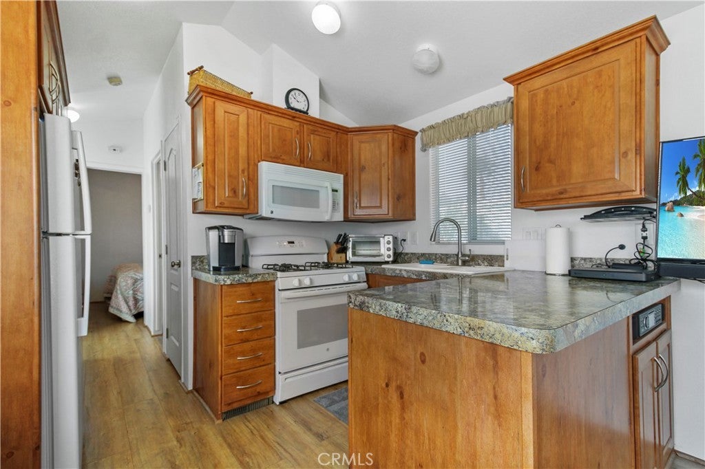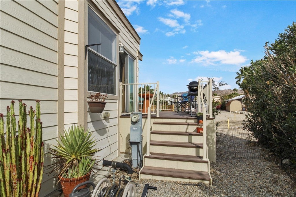 Welcome to your perfect desert retreat in the highly sought-after Sands RV Resort! This 2016 Cavco Sedona model 1-bedroom, 1-bathroom single-wide home offers modern comfort with recently updated laminate flooring, an inviting side porch, and a composite back deck, perfect for relaxing while enjoying breathtaking views of the snowcapped mountains. Offered turnkey furnished, this home is move-in ready, making it an ideal seasonal escape or full-time residence. A large 10 X 10 Tuff Shed provides ample storage for your outdoor gear, tools, or hobby equipment. Living at Sands RV Resort means access to an array of top-tier amenities, including a large heated swimming pool with two spas, a well-equipped exercise room, and a golf driving range with an outdoor natural grass putting and chipping green. Stay active with the pickleball court and enjoy the vibrant community atmosphere at the Rec Hall, large activities room, and card/billiard room. Additional conveniences include a mail room, library, laundry room, restrooms and shower house, and a fully equipped woodshop. For pet owners, the resort offers three dedicated dog parks for furry friends to enjoy. Experience resort-style living in a friendly, active 55+ community with endless opportunities for recreation and relaxation. Don’t miss your chance to own a slice of paradise in Desert Hot Springs—schedule a showing today!