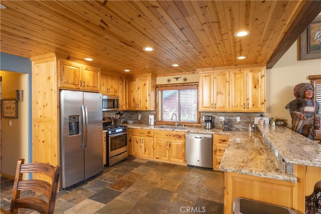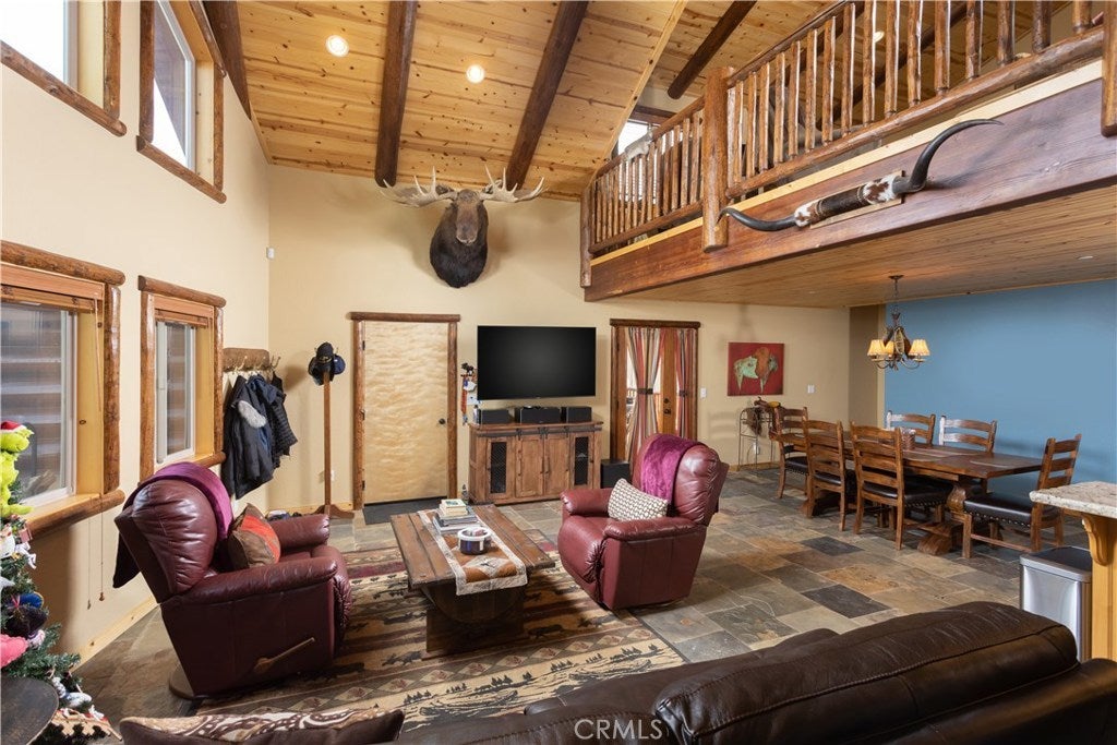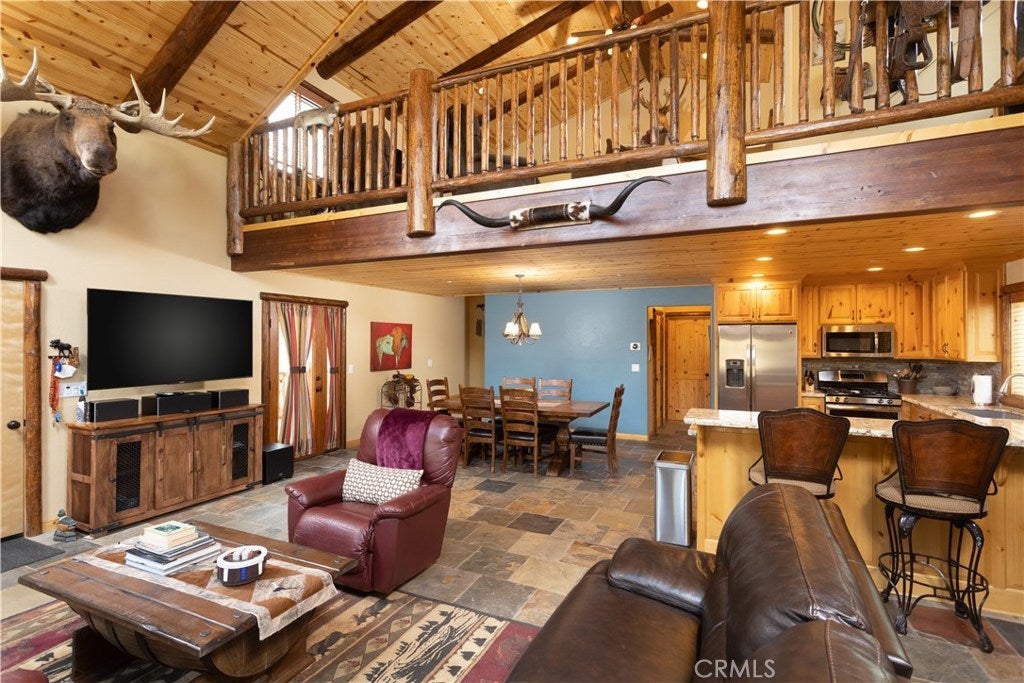 OWNER FINANCING AVAILABLE! Escape to this stunning 3-bedroom, 2.5-bath log-style cabin in picturesque upper Moonridge with ski slope views. Nestled amidst nature and close to Bear Mountain, this unique home features vaulted tongue-and-groove ceilings, an open-concept floor plan, a spacious loft area perfect for entertaining, a gourmet kitchen with granite counters, breakfast bar, and stainless appliances. The large private master suite on the main level boasts a beautiful en-suite bathroom with a separate shower, jetted soaking tub, and walk-in closet. With multiple entertaining areas and plenty of space both inside & out, you will love spending time with family and friends. Enjoy relaxing in the spa under a million stars! Additional amenities include an attached garage ensuring easy access and a separate laundry room for added convenience. Enjoy serene sunsets and outdoor adventures from this impeccably appointed retreat! Call today to learn more about owner financing options!