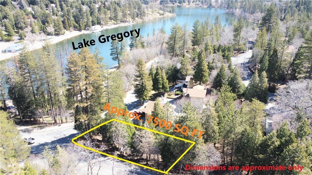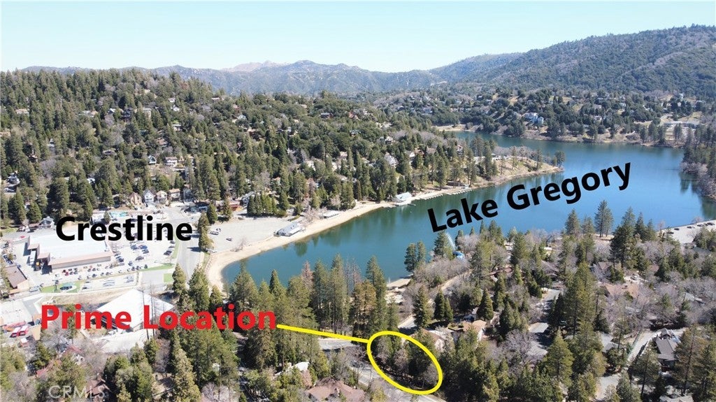 Lovely lakeside corner lot with serene lakeviews! Located directly across from beautiful Lake Gregory beaches with swimming, boating, water slides and hiking trails just right across the street. Just a block or so to downtown Crestline shops, dining and entertainment. Approx. 7500 SQ FT of gentle land with beautiful pines, cedars and oaks all around. Great street frontage on both San Moritz Drive and Lake Gregory Drive. Ideal for primary residence, 2nd home or vacation rental. All utilities (water,sewer,gas,electric,phone,high speed internet,cable) are all conveniently located at or near the street. Design your mountain dream home and come enjoy the mountain lifestyle. Don't miss out on this unique opportunity, make your offer today!