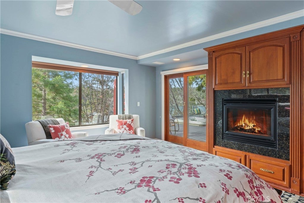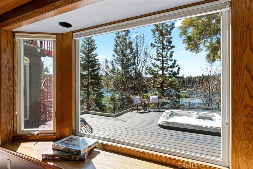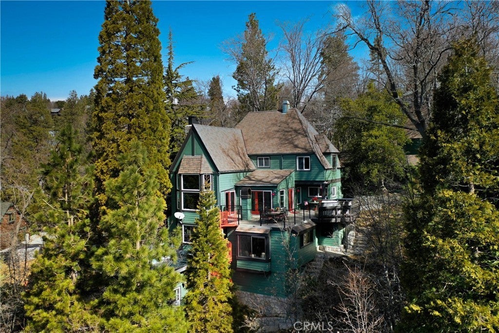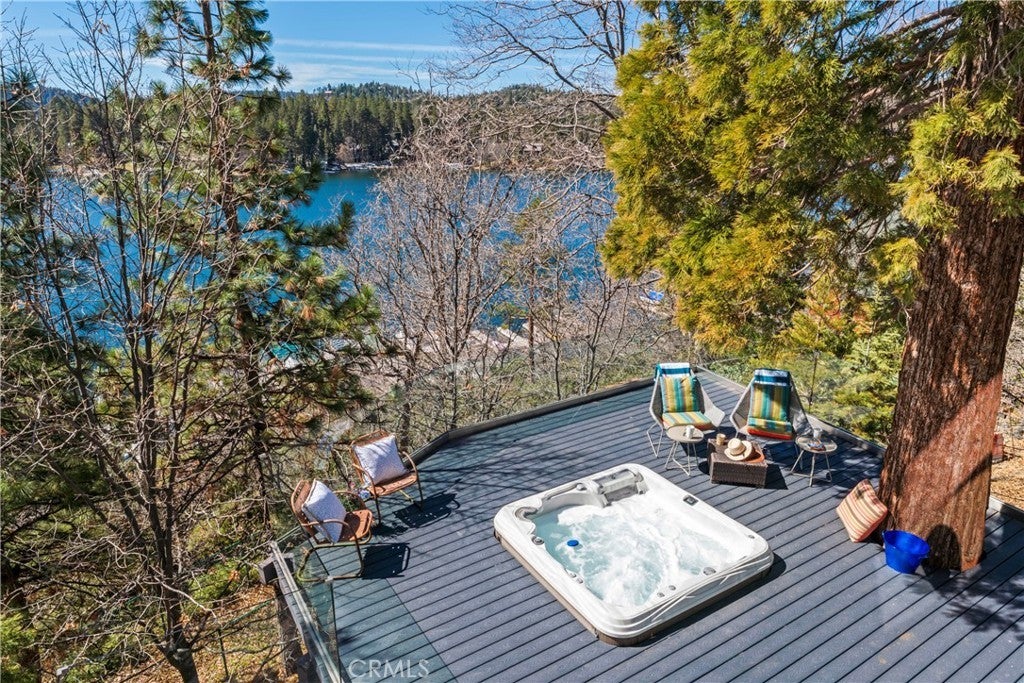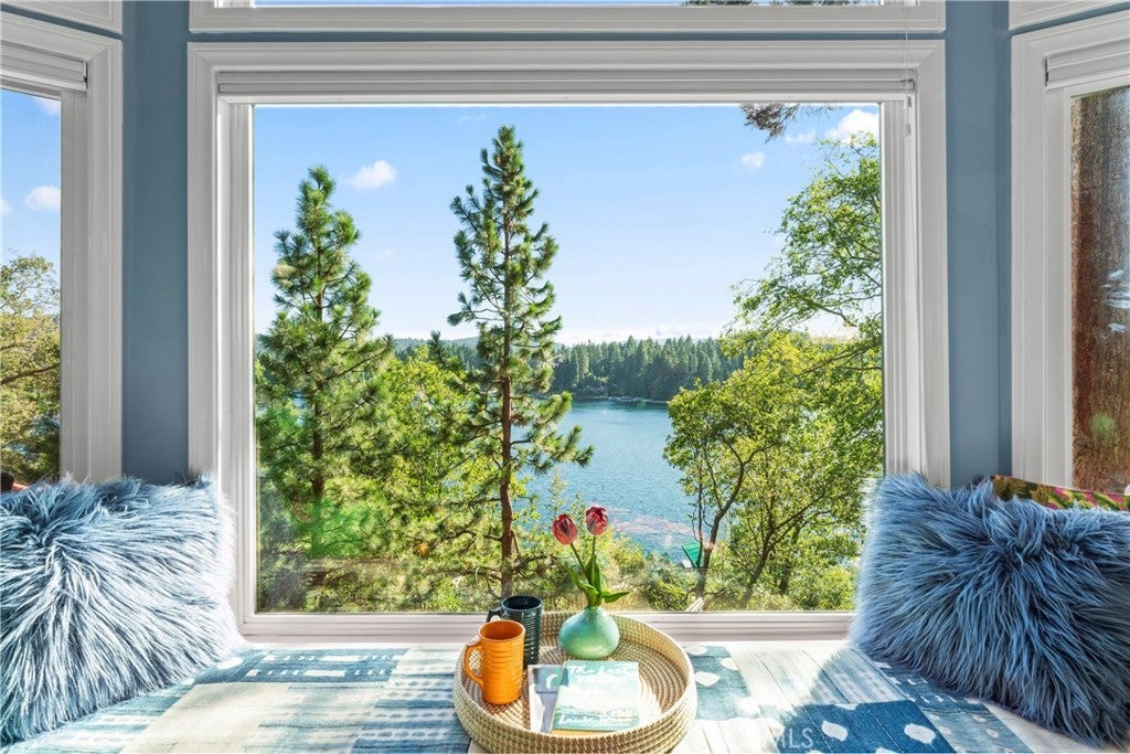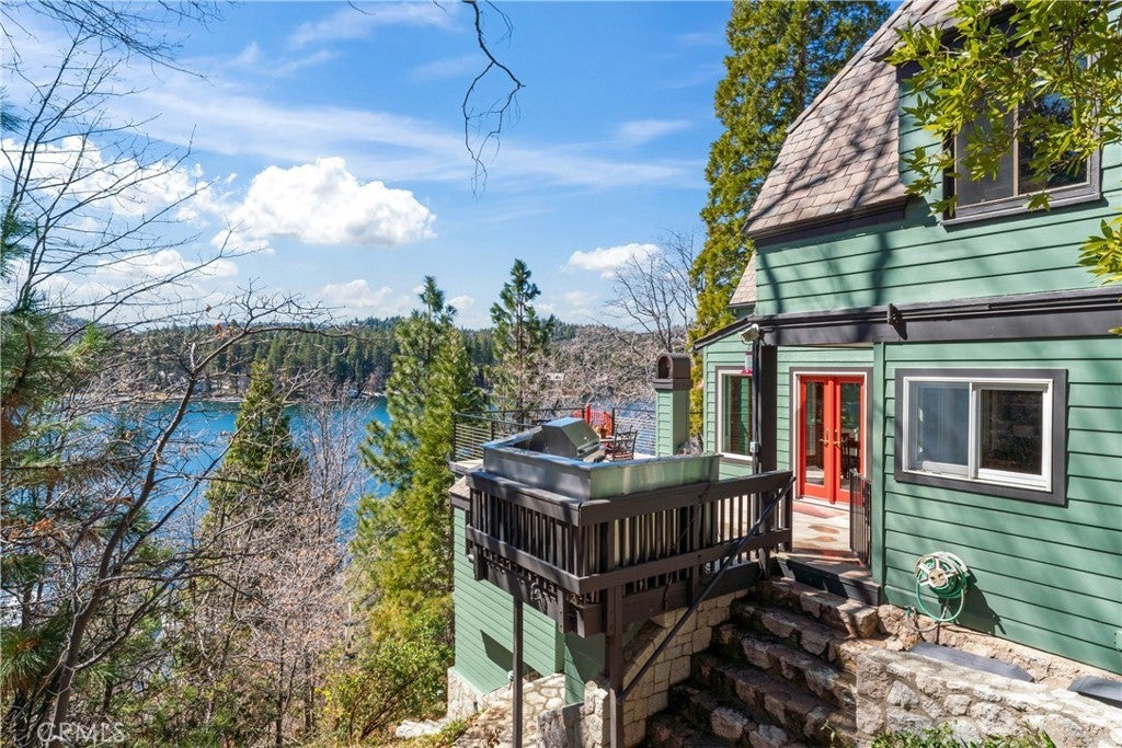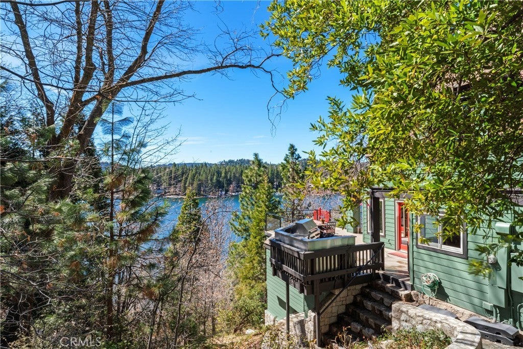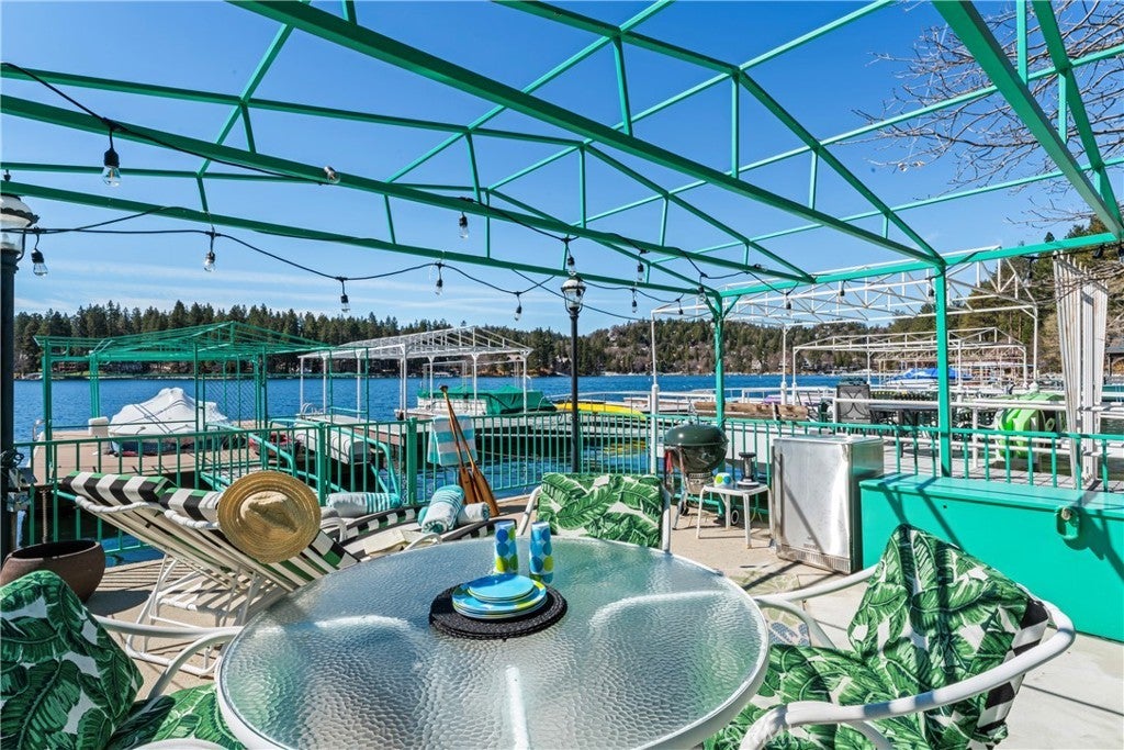 Upon entering this magnificent Lakefront home that blends a modern style with vintage appeal, you’ll look out to glistening North Bay views from massive windows. Originally built in 1922 by James Gamble of Procter & Gamble, one of Lake Arrowhead’s visionaries, this North Shore estate spans a gently terraced half-acre with full-day sun and spectacular sunsets. Expanded, updated, and lovingly maintained over decades, this home marries timeless elegance with contemporary comforts. The floor plan offers multiple indoor/outdoor areas, 5 bed-rooms including a spa-like primary suite and a separate guest cottage suite, four baths, a two-car garage and a single slip dock with a double-sized granite pier. The heart of the home is the spectacular two-story great room, where exposed beams and a floor-to-ceiling granite wood-burning fireplace create an ambiance of warmth yet grandeur. A long window seat invites you to lounge with a book, sip a glass of wine, or simply take in the ever-changing hues of the sparkling lake below. The bright kitchen is outfitted with top-of-the-line Viking appliances. The double french doored dining area opens onto a sprawling entertaining deck, commercial-grade Viking grill, refrigerator, and bar—perfect for al fresco summer gatherings. Also on the main level is a versatile bedroom and bath which could be an office, den or study. It looks out to a soothing recirculating stream water feature. Below a spacious family room, with warm wood paneling and cabinetry, window seating, a built-in bar, big-screen TV, french doors open to another expansive Trex deck built around a majestic 100-year-old incense cedar. Here you’ll find a new inlaid hot tub/spa, along with space for sunbathing or enjoying a competitive game of ping-pong. A frameless glass railing ensures unobstructed views. Additional updates include dual-pane Andersen windows, a DaVinci composite slate roof, hardwood flooring, a whole-house generator, new HVAC and SONOS speaker systems, a beautiful 1k bottle wine cellar, and a private gym. Granite pathways lead from a mature rose garden and fruit trees to the private pier and Brand New SS dock below fully equipped with Bbq, refrigerator, seating. This rare and iconic North Shore original offers a unique opportunity to own a piece of Lake Arrowhead’s history. With decades of thoughtful care and upgrades that enhance its authentic character, this home is listed at $3,499,000. Furnishings are negotiable per seller’s inventory.