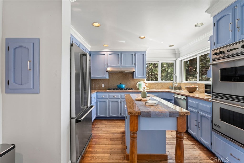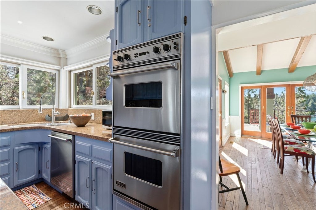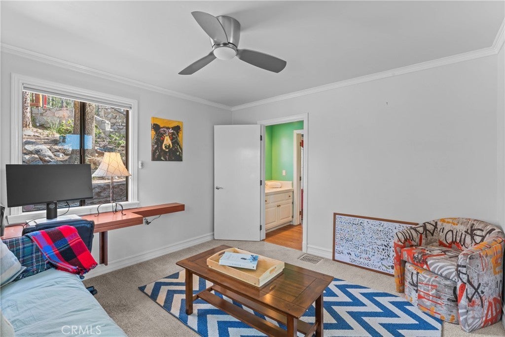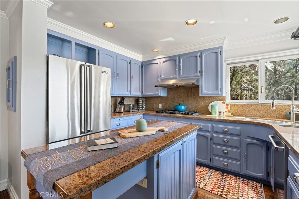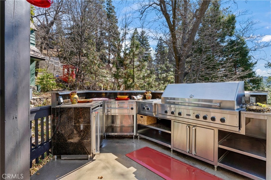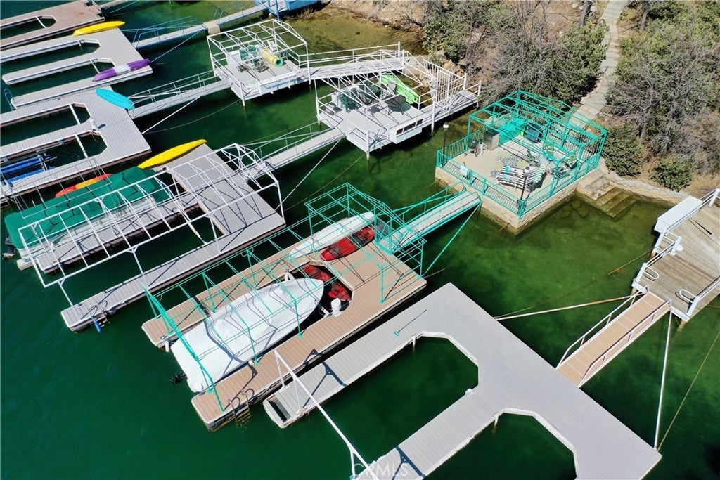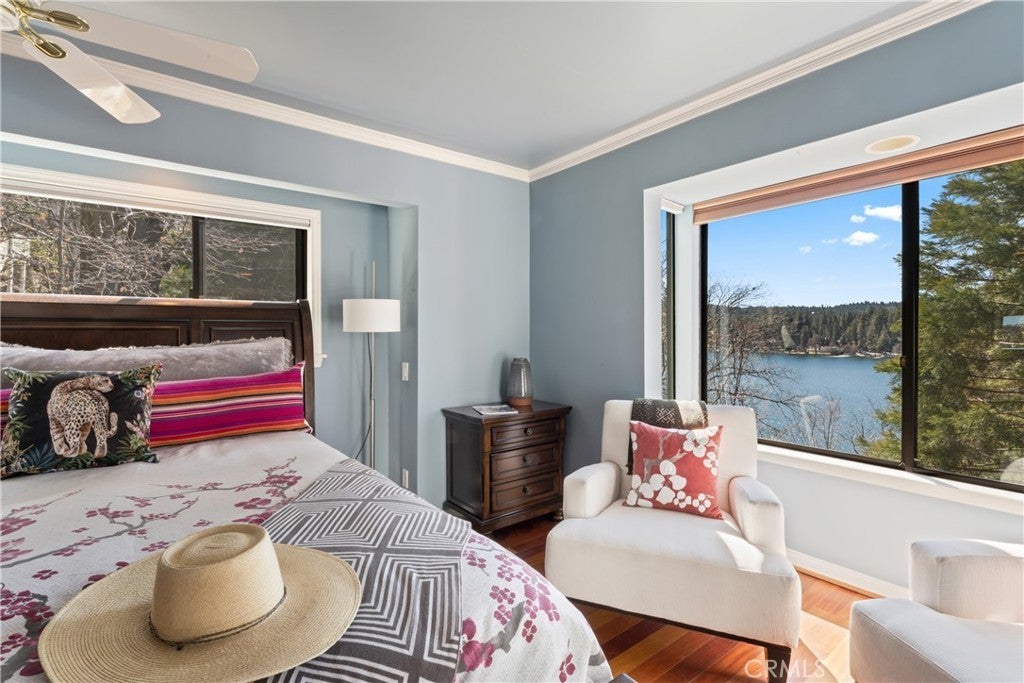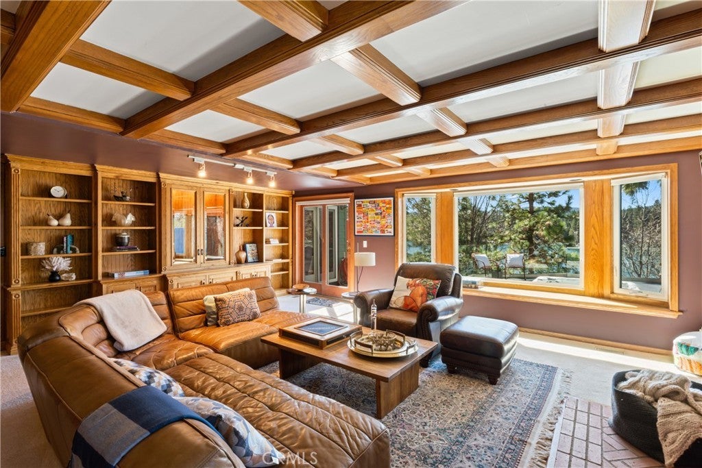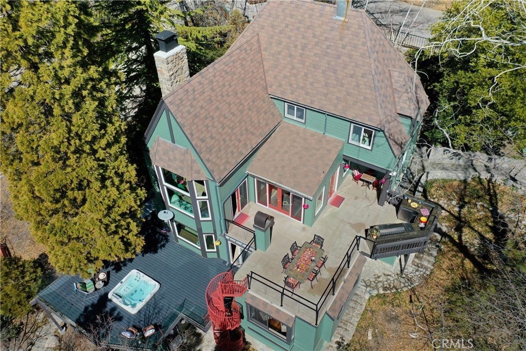 Upon entering this magnificent Lakefront home that blends a modern style with vintage appeal, you’ll look out to glistening North Bay views from massive windows. Originally built in 1922 by James Gamble of Procter & Gamble, one of Lake Arrowhead’s visionaries, this North Shore estate spans a gently terraced half-acre with full-day sun and spectacular sunsets. Expanded, updated, and lovingly maintained over decades, this home marries timeless elegance with contemporary comforts. The floor plan offers multiple indoor/outdoor areas, 5 bed-rooms including a spa-like primary suite and a separate guest cottage suite, four baths, a two-car garage and a single slip dock with a double-sized granite pier. The heart of the home is the spectacular two-story great room, where exposed beams and a floor-to-ceiling granite wood-burning fireplace create an ambiance of warmth yet grandeur. A long window seat invites you to lounge with a book, sip a glass of wine, or simply take in the ever-changing hues of the sparkling lake below. The bright kitchen is outfitted with top-of-the-line Viking appliances. The double french doored dining area opens onto a sprawling entertaining deck, commercial-grade Viking grill, refrigerator, and bar—perfect for al fresco summer gatherings. Also on the main level is a versatile bedroom and bath which could be an office, den or study. It looks out to a soothing recirculating stream water feature. Below a spacious family room, with warm wood paneling and cabinetry, window seating, a built-in bar, big-screen TV, french doors open to another expansive Trex deck built around a majestic 100-year-old incense cedar. Here you’ll find a new inlaid hot tub/spa, along with space for sunbathing or enjoying a competitive game of ping-pong. A frameless glass railing ensures unobstructed views. Additional updates include dual-pane Andersen windows, a DaVinci composite slate roof, hardwood flooring, a whole-house generator, new HVAC and SONOS speaker systems, a beautiful 1k bottle wine cellar, and a private gym. Granite pathways lead from a mature rose garden and fruit trees to the private pier and Brand New SS dock below fully equipped with Bbq, refrigerator, seating. This rare and iconic North Shore original offers a unique opportunity to own a piece of Lake Arrowhead’s history. With decades of thoughtful care and upgrades that enhance its authentic character, this home is listed at $3,499,000. Furnishings are negotiable per seller’s inventory.