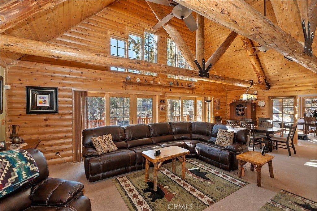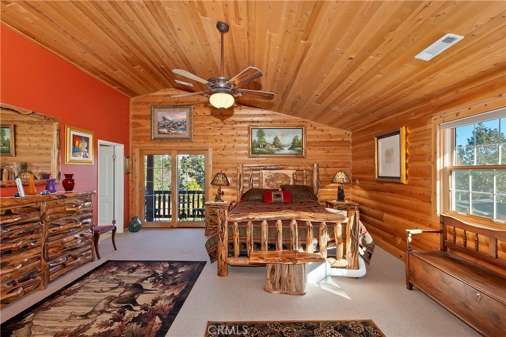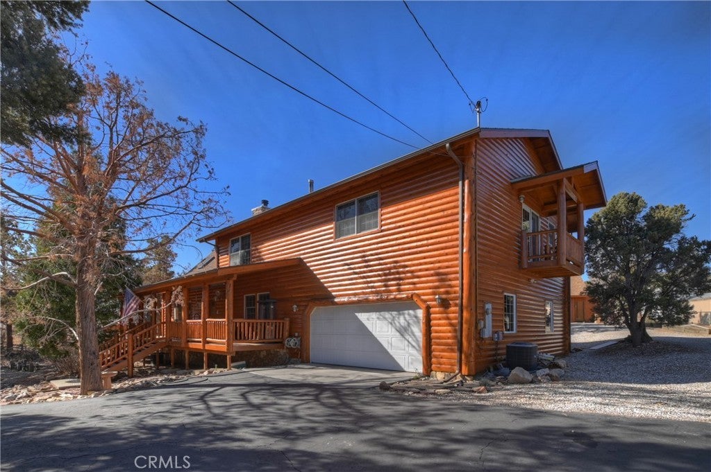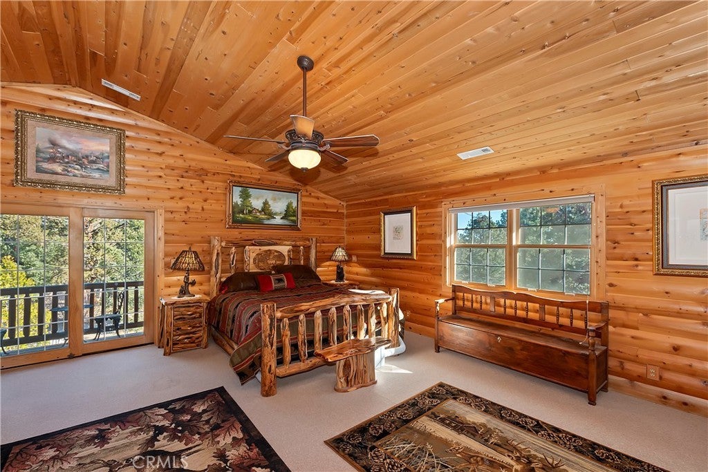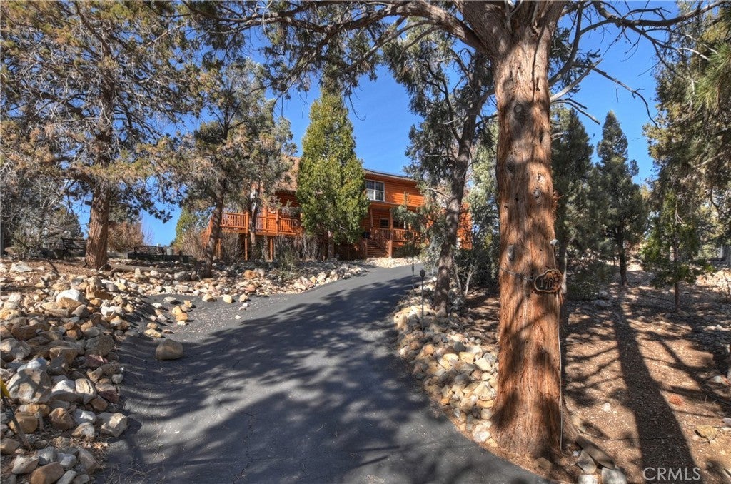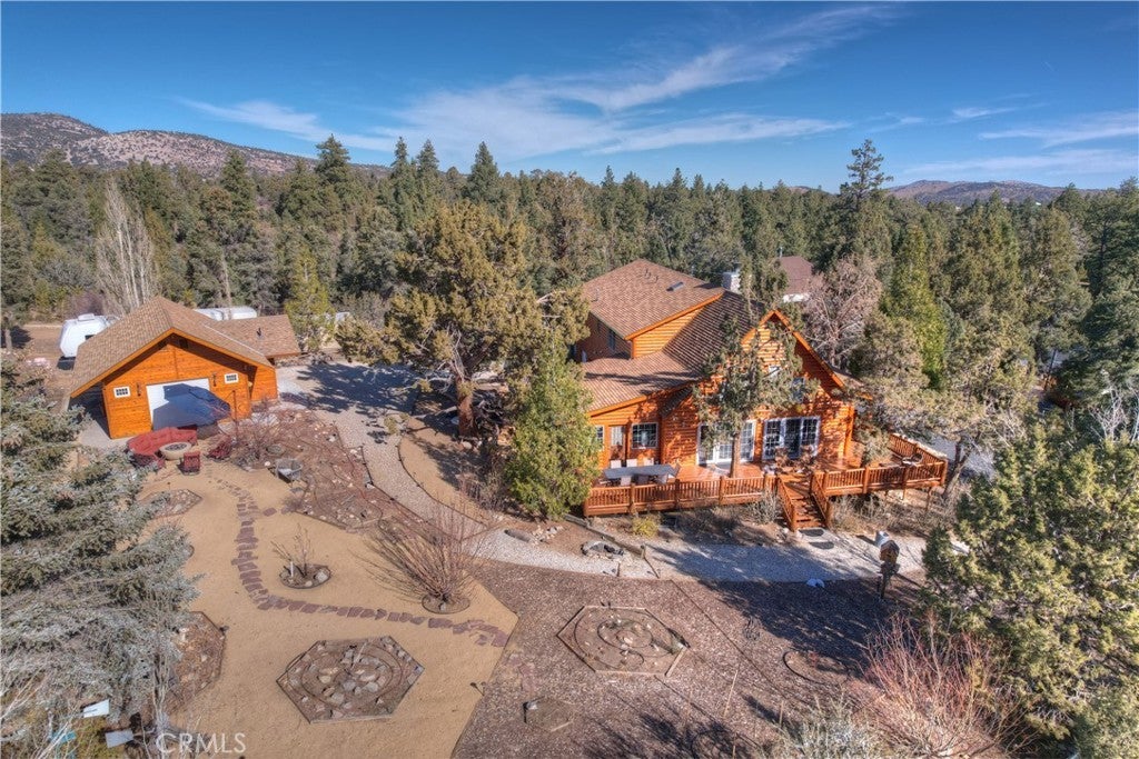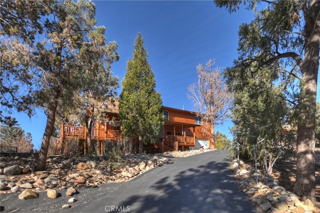 Exquisite estate in exceptional condition! This custom log style home features an impressive great room with full log beams, a bright sunroom, four spacious bedrooms, and 3 bathrooms. The interior boasts a dramatic design, fit for a magazine feature. This estate provides complete privacy, with several spaces to relax and take in the natural beauty. Perfect for the buyer seeking a unique, high-quality home with character. Featuring remote control blinds and ceiling fan lights. Two FAU, 2 A/C's, 2 water heaters for up and downstairs. Kitchen features a walk in pantry and stainless steel appliances. The master suite has a deck to enjoy, a large walk-in closet, and an expansive bathroom. Owned solar electric system and on grid. In addition to the two-car garage with pull thru, a separate one car garage or workshop is a dream mancave, complete with electricity, water, and its own bathroom and there’s a covered carport for added convenience. Step outside to enjoy breathtaking views and low maintenance, yet beautifully landscaped surroundings. Enjoy the charm of decks surrounding the home, including a covered front porch. Situated on a gated 31,000 sq. ft. lot, this property is surrounded by other expansive properties and neighboring homes.