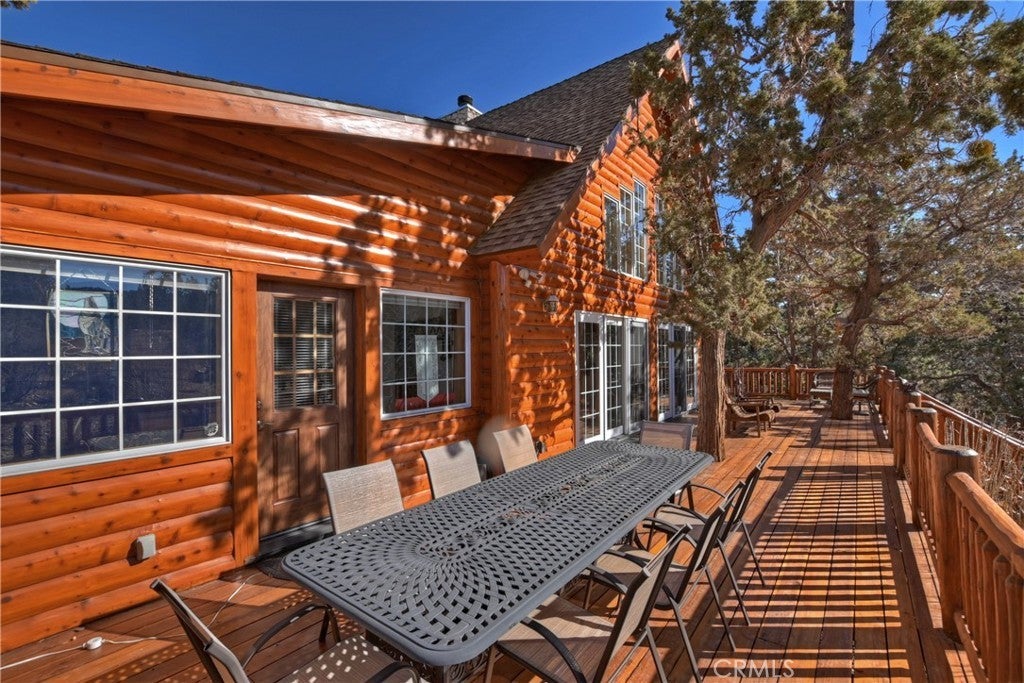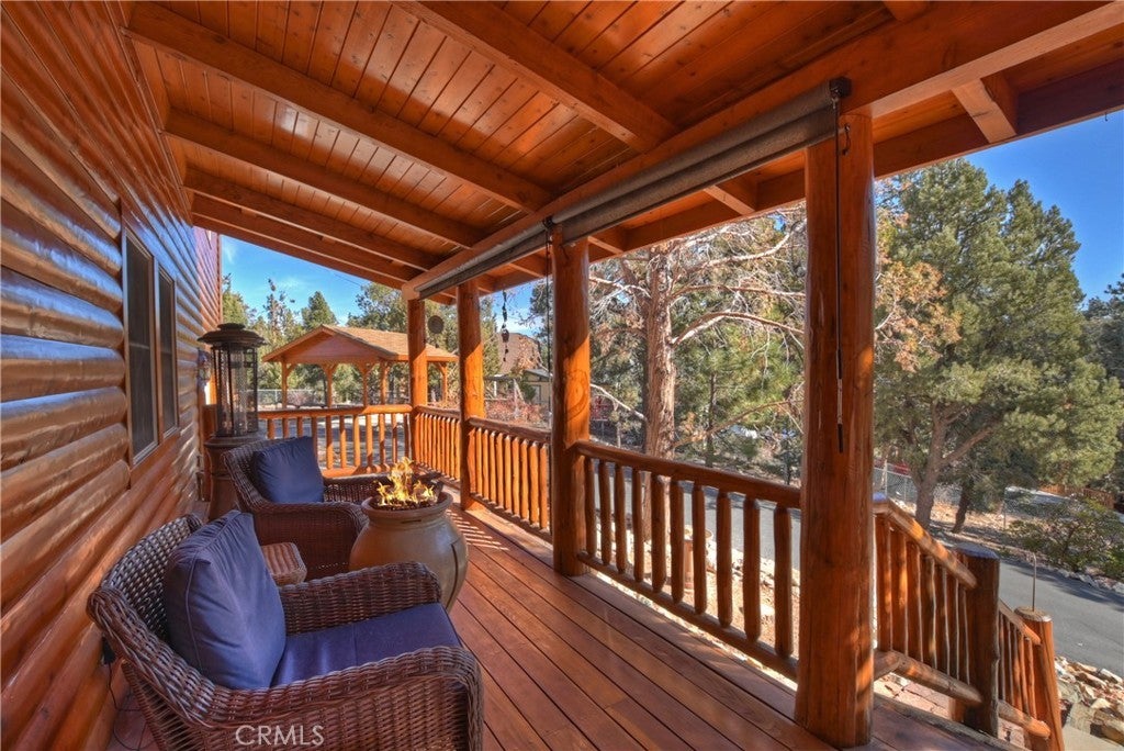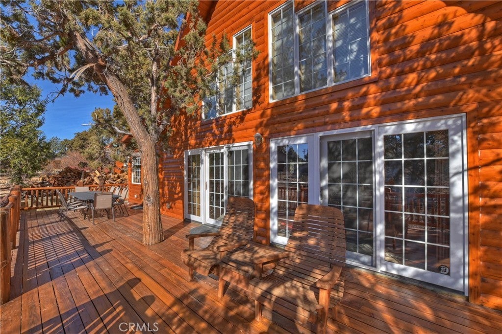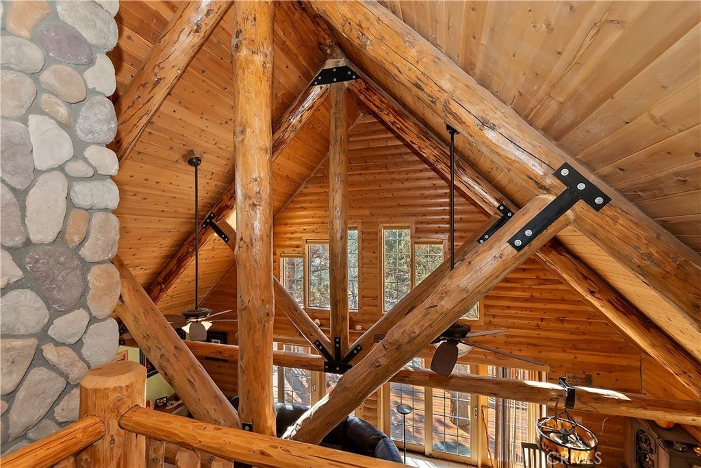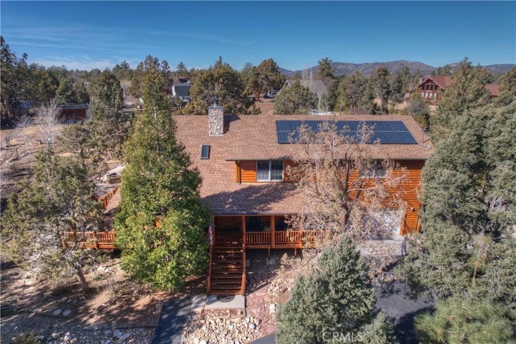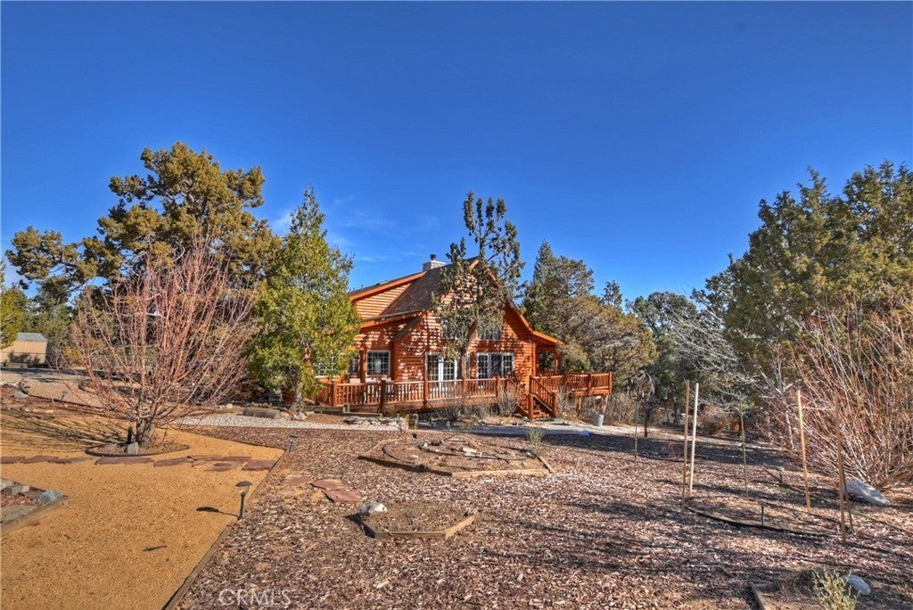 Exquisite estate in exceptional condition! This custom log style home features an impressive great room with full log beams, a bright sunroom, four spacious bedrooms, and 3 bathrooms. The interior boasts a dramatic design, fit for a magazine feature. This estate provides complete privacy, with several spaces to relax and take in the natural beauty. Perfect for the buyer seeking a unique, high-quality home with character. Featuring remote control blinds and ceiling fan lights. Two FAU, 2 A/C's, 2 water heaters for up and downstairs. Kitchen features a walk in pantry and stainless steel appliances. The master suite has a deck to enjoy, a large walk-in closet, and an expansive bathroom. Owned solar electric system and on grid. In addition to the two-car garage with pull thru, a separate one car garage or workshop is a dream mancave, complete with electricity, water, and its own bathroom and there’s a covered carport for added convenience. Step outside to enjoy breathtaking views and low maintenance, yet beautifully landscaped surroundings. Enjoy the charm of decks surrounding the home, including a covered front porch. Situated on a gated 31,000 sq. ft. lot, this property is surrounded by other expansive properties and neighboring homes.