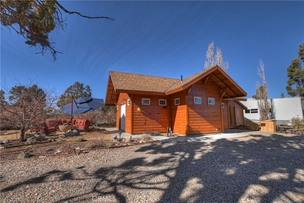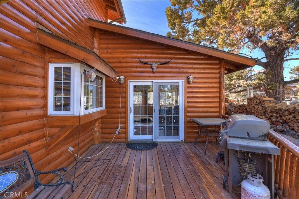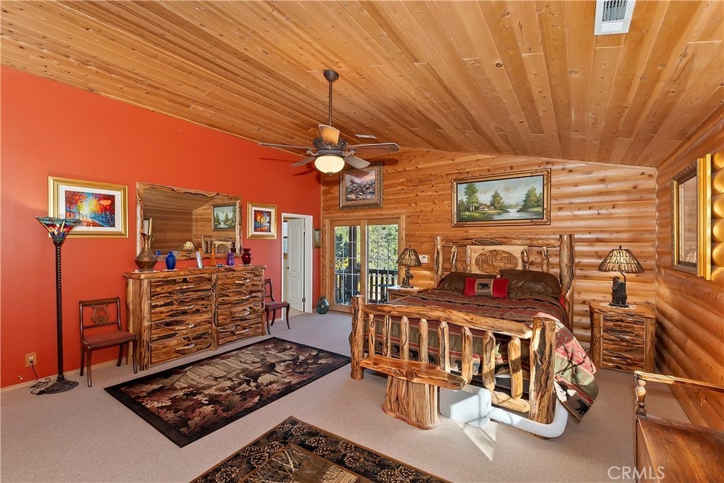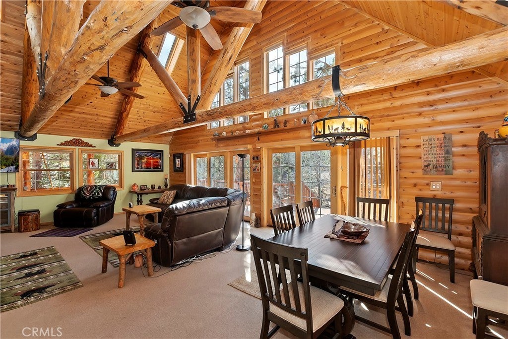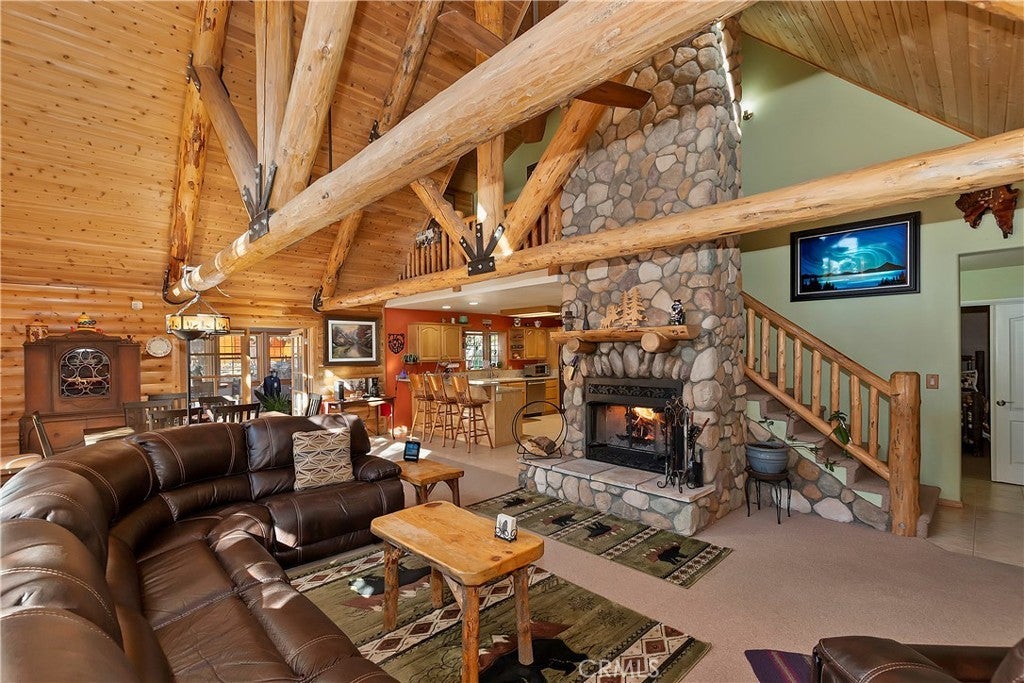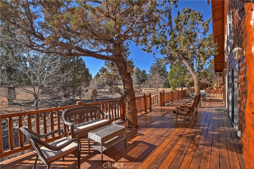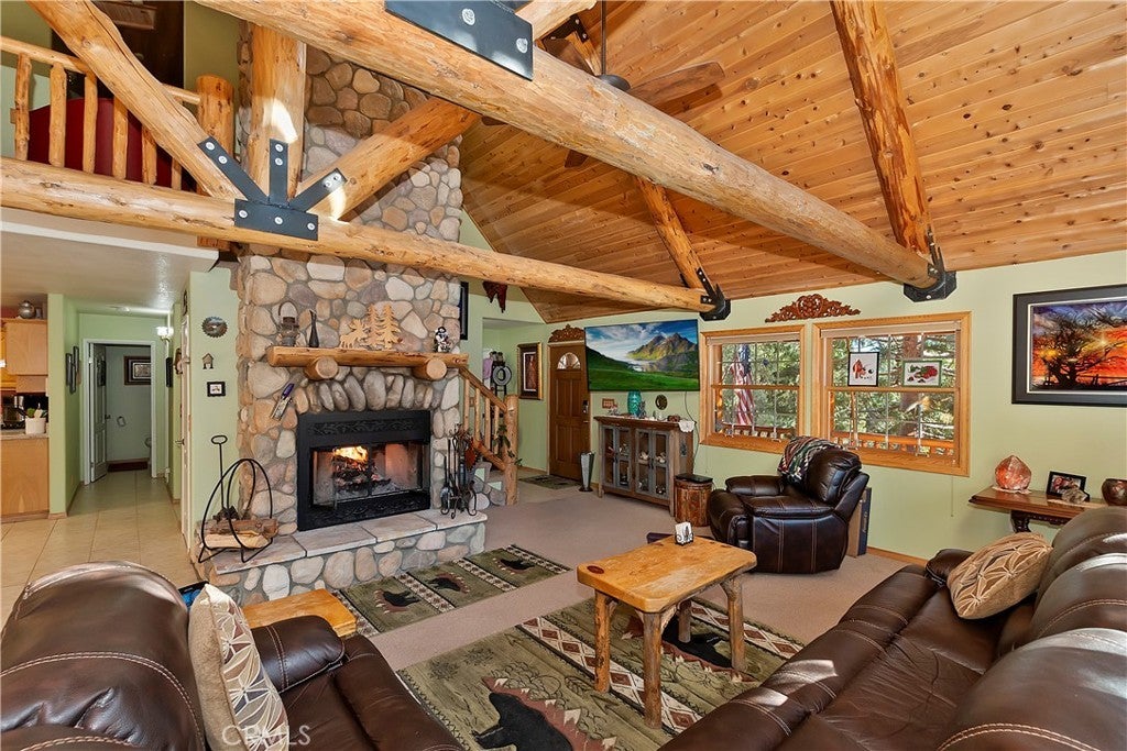 Exquisite estate in exceptional condition! This custom log style home features an impressive great room with full log beams, a bright sunroom, four spacious bedrooms, and 3 bathrooms. The interior boasts a dramatic design, fit for a magazine feature. This estate provides complete privacy, with several spaces to relax and take in the natural beauty. Perfect for the buyer seeking a unique, high-quality home with character. Featuring remote control blinds and ceiling fan lights. Two FAU, 2 A/C's, 2 water heaters for up and downstairs. Kitchen features a walk in pantry and stainless steel appliances. The master suite has a deck to enjoy, a large walk-in closet, and an expansive bathroom. Owned solar electric system and on grid. In addition to the two-car garage with pull thru, a separate one car garage or workshop is a dream mancave, complete with electricity, water, and its own bathroom and there’s a covered carport for added convenience. Step outside to enjoy breathtaking views and low maintenance, yet beautifully landscaped surroundings. Enjoy the charm of decks surrounding the home, including a covered front porch. Situated on a gated 31,000 sq. ft. lot, this property is surrounded by other expansive properties and neighboring homes.