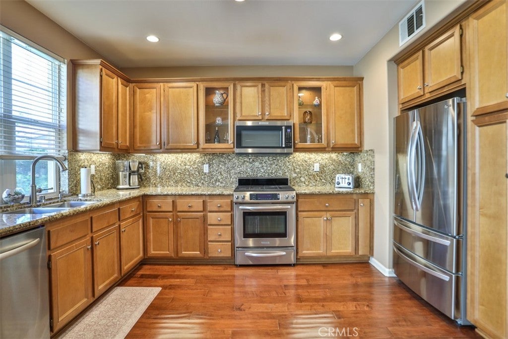 ***Back On The Market-Buyer Could Not Perform-All Offers Considered***Dont be bashful***Epic Price SLASHING!!!***Great Investor Opportunity-READY FOR A FAST ESCROW-NO CONTINGENCIES ON OUR END***See our 360 Degree Virtual Tour*** This beautifully appointed townhouse is perfectly situated in the highly sought-after Owens Cove at Dos Lagos reminiscent of a Tuscan style villa. This unit boasts an exterior location adjacent to a lush, tree-lined greenbelt with picnic areas, this home offers both tranquility and convenience. Step inside to a spacious and inviting interior, perfect for entertaining. The formal living and dining areas create an elegant space for gatherings, while the beautifully designed kitchen featuring stylish maple cabinets, granite countertops, and stainless steel appliances which add warmth and charm to the home. Upstairs, the expansive master suite is a true retreat, complete with a private balcony, a spa-like ensuite bath with a soaking tub, walk-in shower, and a generous walk-in closet. Across the hall, the second bedroom includes its own private bathroom, ensuring comfort and privacy for guests or family members. Additional highlights include an indoor laundry room, central AC, dual-pane windows, recessed lighting, real wood (Maple) flooring throughout, and a finished two-car garage with direct access and extra storage space. Residents of this controlled-access community enjoy fantastic amenities, including a clubhouse, multiple pools and spas, parks, and evening security patrol. Conveniently located walking distance from Dos Lagos Golf Course and the acclaimed Dos Lagos shopping center which boasts grocery stores like Trader Joe’s, and top-rated restaurants and so much more! This exceptional property is an opportunity you won’t want to miss.