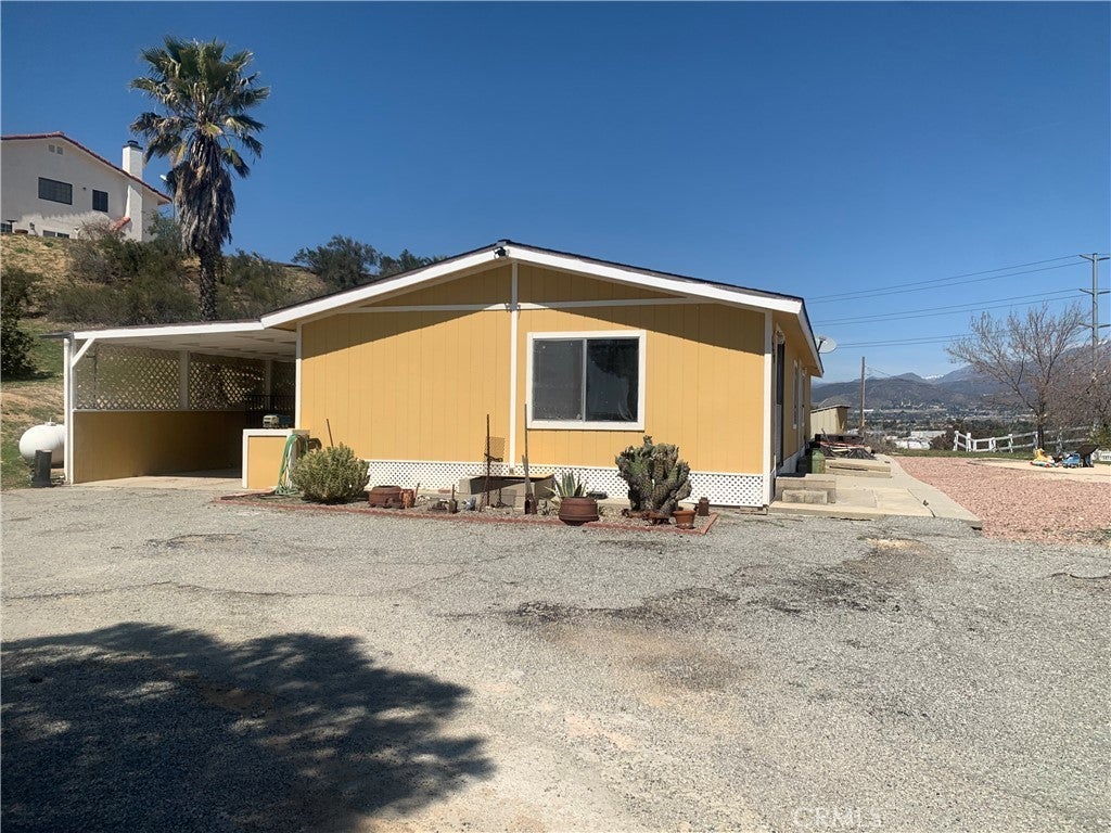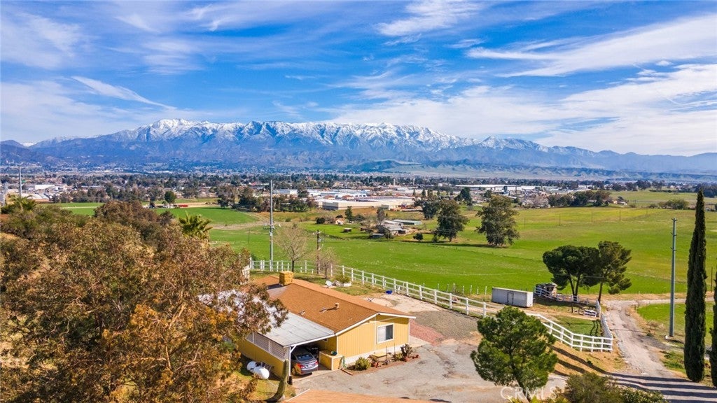 This slice of the country awaits the buyer that is looking for space to spread out and evenings for enjoying the city lights. Located on a knoll with access via a private drive, this home overlooks the meadows below, the city in the distance and the large mountain peaks. With 1.43 acres there is room for horses, orchards, parking and more. The home features 3 bedrooms, 2 baths, a big living space plus a bonus room that could have many possibilities: A game room, hobby room, exercise or play room. The kitchen is spacious with room for an island and the dining area enjoys the view. There is a 2 car detached garage with a finished office and a large storage shed. The home has new exterior paint, fenced and there is plenty of room around the home for a pool, play yard or a parking structure. This terrific location is rural, great for horses, orchard, vineyard and more, yet close to shopping and easy access to the freeway. A jewel like this does not come around very often so bring your style and creativity and make this your home.