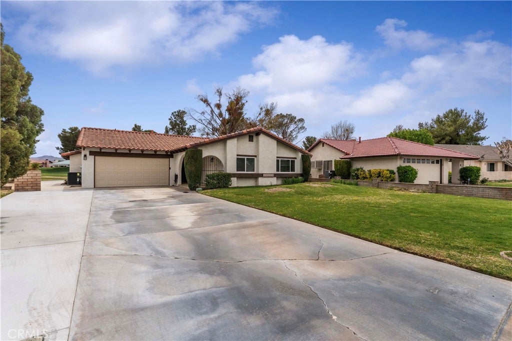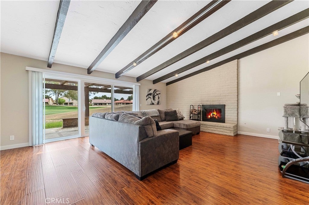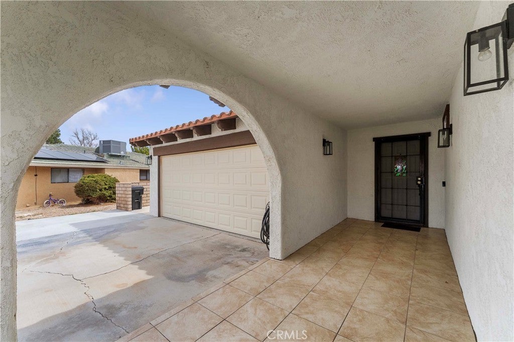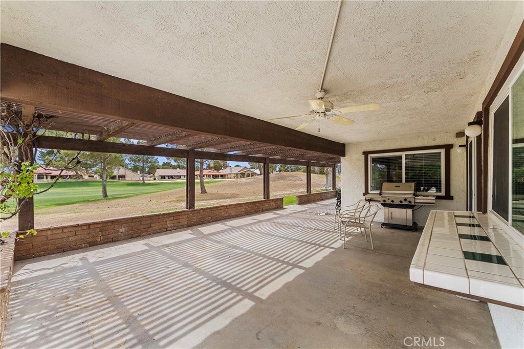 On the serene and picturesque fairways of a desert golf course, this beautifully maintained 3-bedroom, 2-bathroom home offers the perfect blend of comfort and luxury. With upgrades throughout, this home is a true gem. As you step inside, you are greeted by a spacious living room featuring vaulted beamed ceilings and a stunning centerpiece fireplace, creating an inviting atmosphere for both relaxation and entertaining. The open-concept design seamlessly flows into the kitchen, where you'll find crisp white cabinetry and elegant neutral granite countertops, perfect for any culinary endeavor. The master suite offers peaceful views and generous closet space, while the two additional bedrooms provide flexibility for guests, a home office, or a hobby room. Both bathrooms are tastefully upgraded with modern finishes and fixtures. Outdoor living is at its finest with a covered patio that overlooks the lush golf green, offering a tranquil space to enjoy the desert landscape and entertain guests. With a separate golf cart garage, you’ll have easy access to the course whenever you wish. Additional features include a newer HVAC system and a tankless water heater for ultimate comfort and energy efficiency. Whether you’re an avid golfer or simply enjoy a peaceful retreat, this home offers the perfect combination of luxury, style, and convenience. Don’t miss your chance to own this exceptional desert golf course home!