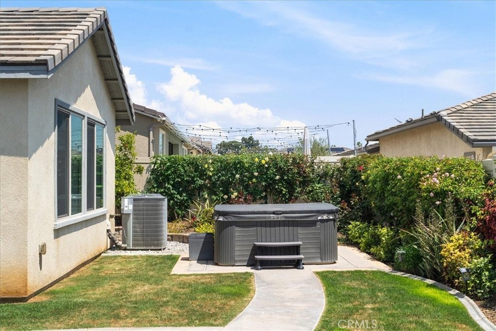 Welcome to 1413 Ellerg Way in beautiful Beaumont—where space, comfort, and community come together in this stunning Beacon Plan 1 home. Built in 2019, this well-maintained single-story residence offers 4 spacious bedrooms, 3 full bathrooms, and over 3,000 square feet of open-concept living space, all on a generous *10,018 sq ft lot* in an award-winning family neighborhood. Step inside to upgraded flooring and a bright, flowing layout perfect for both everyday living and entertaining. The gourmet kitchen opens to a large family room, complete with a custom built-in bookshelf for added charm and function. The private backyard is ready for your dream outdoor kitchen, already featuring stamped concrete, mature fruit trees, and a relaxing spa—perfect for winding down after a long day. Families will love the 3-car tandem garage with ample storage, and the peace of mind that comes with a leased solar system to keep energy costs down. Located in a sought-after HOA community with **multiple pools, BBQ areas, and parks**, this home offers more than just a place to live—it offers a lifestyle. Don’t miss this rare single-story gem that checks all the boxes. Come see why so many families are making this community home!