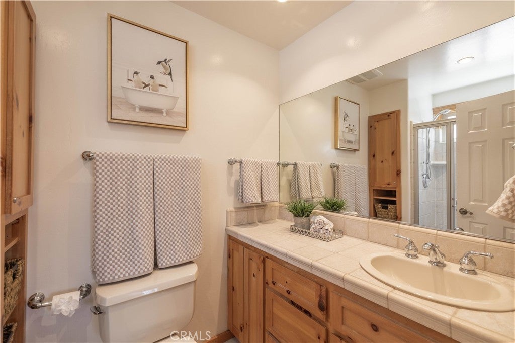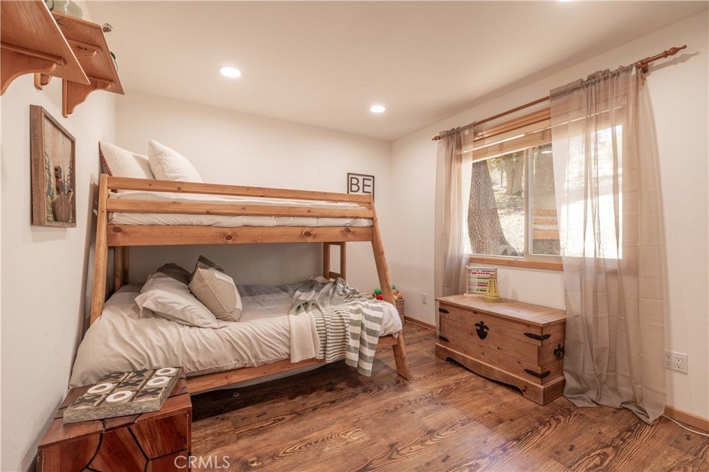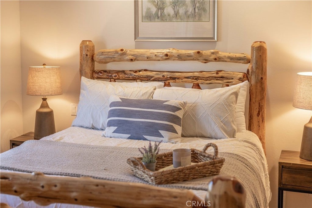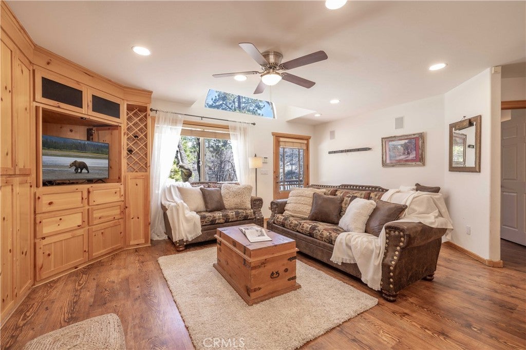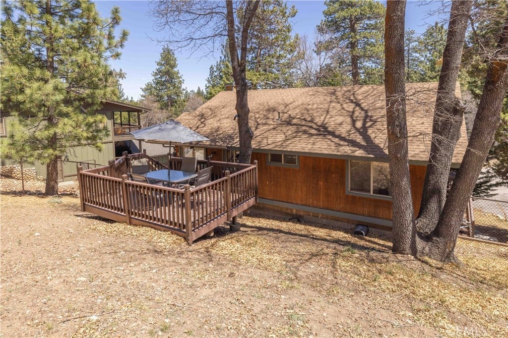 Welcome to your mountain getaway in the heart of Moonridge! 2-bedroom, 2-bathroom, 1,028 square feet of home nestled on a spacious 7,368 square foot lot surrounded by towering pines. Enjoy the crisp mountain air from the hot tub with tree top views, perfect for soaking under the stars after a day of adventure. Inside, the open-concept living area features warm wood accents, a cozy fireplace, and plenty of natural light. The kitchen opens to the dining and living spaces, creating a perfect setting for entertaining or relaxing by the fire. Both bedrooms are generously sized. A rare find with Central AC and a 200 amp electrical panel. Step out back to your private elevated platform with a seating area ideal for morning coffee, evening drinks, or simply enjoying the tranquil forest views. Whether you're looking for a peaceful full-time residence, vacation escape, or investment opportunity, this Moonridge cabin has it all. Close to Bear Mountain Ski Resort, golf, the zoo, hiking trails, and more. Don’t miss your chance to own a slice of Big Bear paradise! Seller is highly motivated, bring any and all offers!