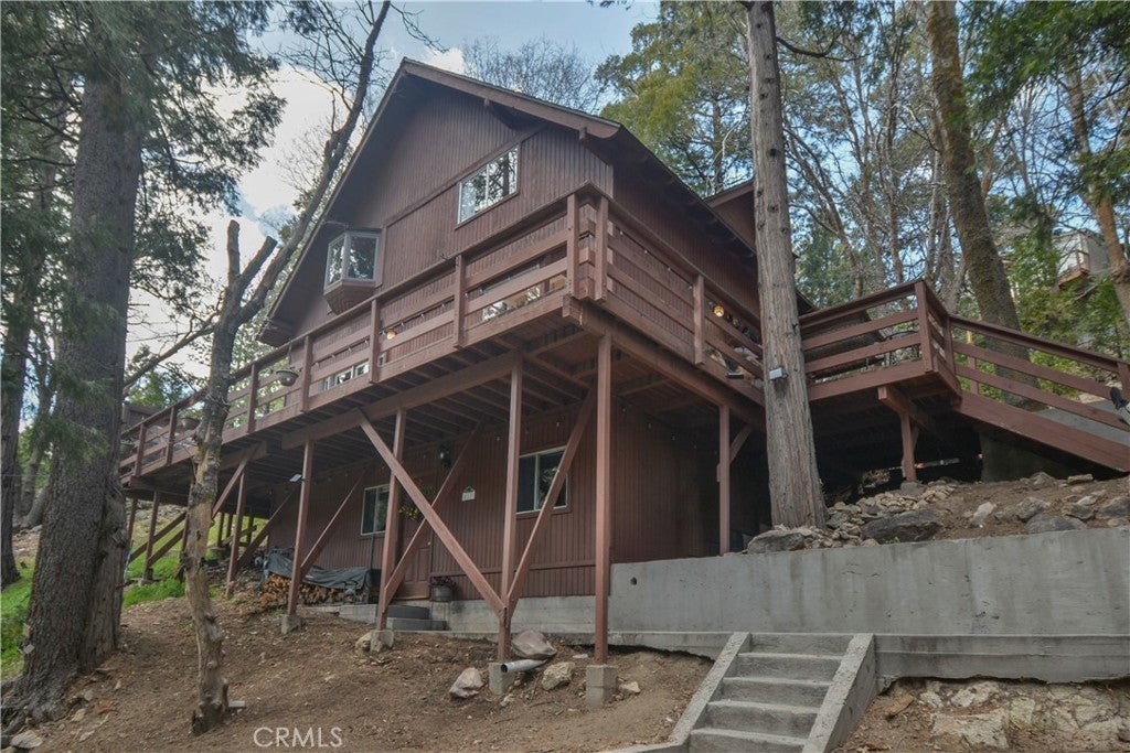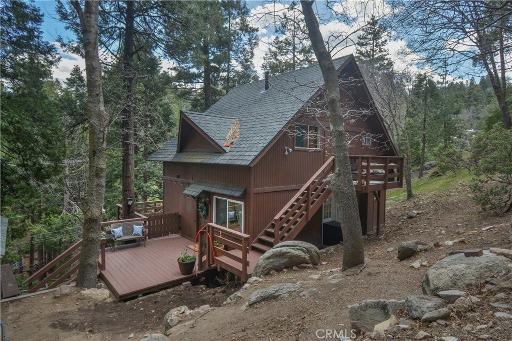 Escape to the mountains and create lasting memories in this charming Twin Peaks home. Perfect for those seeking a peaceful retreat or an investment property, this home offers a private and serene setting, tucked away from the street and just steps from a seasonal stream…. The main level features a spacious, open floor plan, including a cozy living room, kitchen, dining area, and a ¾ bath. Step outside to the expansive wrap-around deck, perfect for enjoying the natural surroundings. Upstairs, you'll find the primary bedroom, a second bedroom, an office (or potential fourth bedroom), a full bath, and a second deck to unwind and take in the views.…. The lower level includes a third bedroom, another ¾ bath, and a convenient laundry area. With a separate entrance, this lower level offers flexibility and privacy for guests or rental potential. Twin Peaks is known for its hiking trails, outdoor activities, nearby Lake Gregory & Lake Arrowhead Village with their shops and restaurants. Experience the joys of mountain living while being just a short distance to hwy 18...Don’t miss your chance to own this mountain retreat! Furnishings are negotiable, and the home can be sold "turn-key" for a seamless move-in experience. Embrace the tranquility of mountain living today!