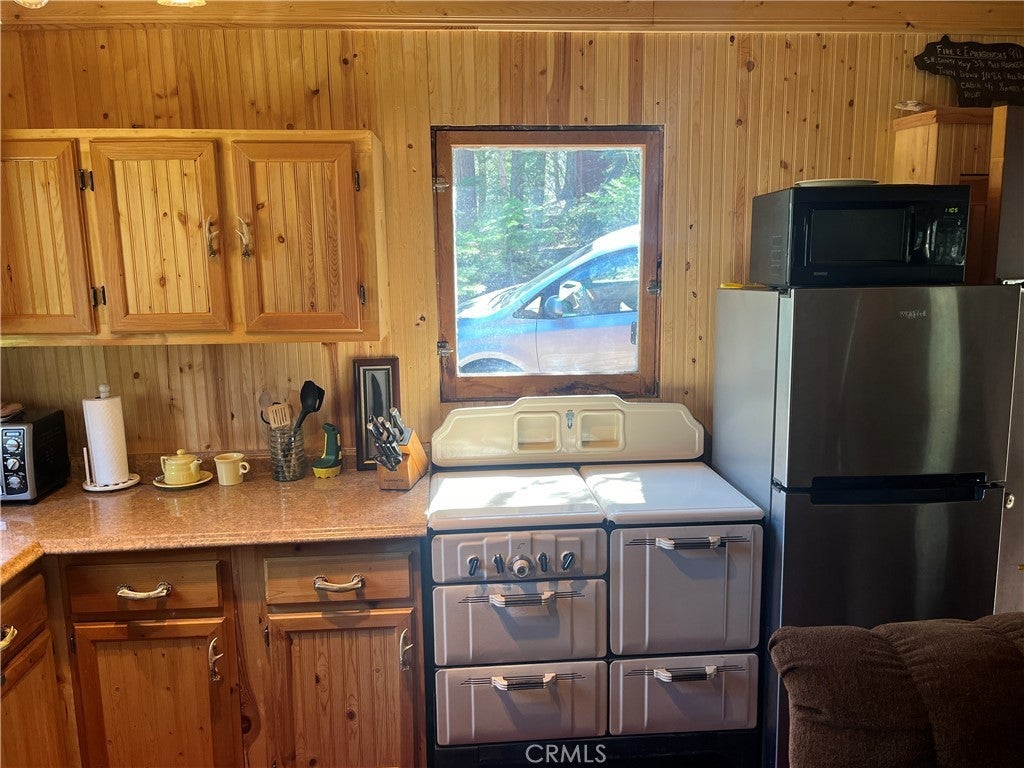 PRICE REDUCTION. Forest Service has inspected and cleared this cabin to close. Plenty of time to enjoy your new cabin this year! This may not be the biggest cabin in the woods but it is sure one of the nicest. At under 400 sq/ft, it qualifies as a "tiny house" that is so popular these days. Because of the open floor plan, the light color of the tongue and groove interior, the skylight, the open beam ceiling, and the many windows, this cabin seems a lot bigger; not to mention the light and "airy" atmosphere inside. There is a covered front porch that is perfect for relaxing on. The kitchen has been upgraded. (You should see the BEFORE pictures!) The door and cabinet handles look like they were made from deer antlers. (They are probably not real antlers, so no deer harmed in the remodel of this kitchen). The kitchen also sports a great, old time propane stove and has Corian countertops. Vintage, but well maintained, wood flooring adds to the appeal of this cabin. There is a wood burning stove that will take the chill out of the air or set the stage for a quiet evening. Some firewood is included in the sale. Cabin has a small, portable propane tank and a tankless water heater. There are two, 200 gallon, water tanks and a portable, 100 gallon tank, that will be included in the sale. The bathroom currently has an RV style toilet as it uses less water and does not have the same problem of freezing in the winter like a conventional toilet. Cabin owners have been known to replace them with a conventional toilet. Cabin will come mostly furnished complete with a nice recliner and a LaZboy hide-a-bed. There are no electric lines to get in the way of your view as the lines are buried underground. I think you will fall in love with this one, if you haven't done so already. Cabin is on Forest Service leased land. There is a yearly lease fee. There is no short or long term renting allowed and these will need to be cash sales. Other restrictions and guidelines can be found by asking for the Forest Service Use Handbook. Agents can find the handbook in the Supplements section.