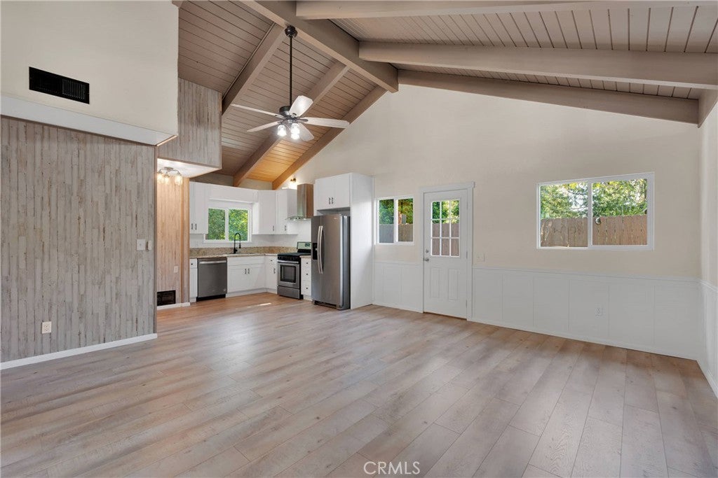 Ceiling Fan(s), Granite Counters, High Ceilings, Open Floorplan, All Bedrooms Down, Living Room Deck Attached, Paneling/Wainscoting, Unfurnished