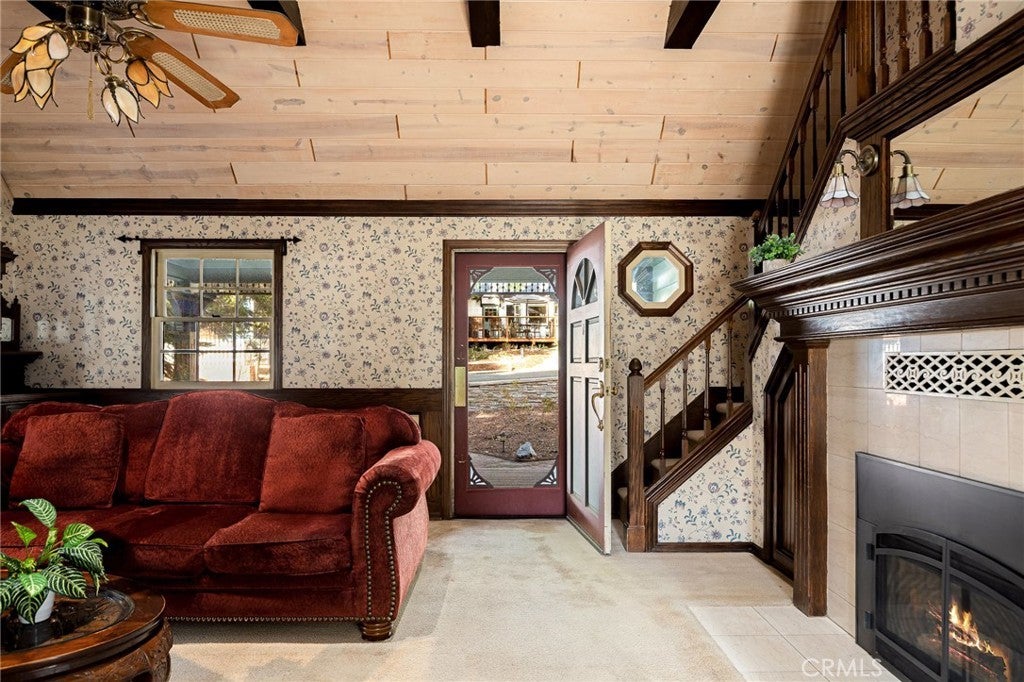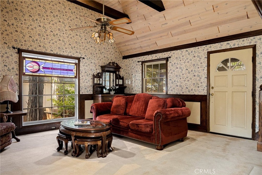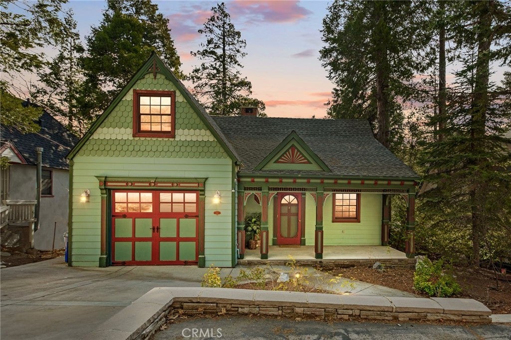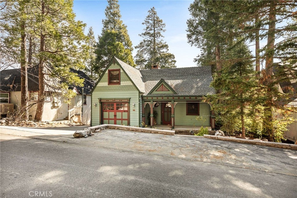 Step into the warmth of this 1930s Victorian cabin-style home, lovingly customized by the seller’s father with built-in furnishings and timeless finishes that add heart and character throughout. The enclosed front porch currently serves as a cozy home office—but with imagination, it could become anything you dream up. Inside, you’ll find a stunning living area featuring a grand fireplace, exposed wall-to-wall beams, and a vaulted ceiling that makes the space feel open yet inviting. The quaint kitchen includes a sweet breakfast nook straight out of a storybook, perfect for morning coffee or evening tales. Outdoors, the yard is cleverly sectioned, with an entertaining deck and a classic front porch that invites lazy afternoons and friendly chats. Located just minutes from both Lake Arrowhead and Cedar Glen, this home comes with full lake rights and sits in a highly walkable neighborhood filled with local restaurants, a gym, post office, and charming shops. This home has been a beloved gem—and now, it's ready to shine for its next owner. Don’t miss this well-priced treasure!