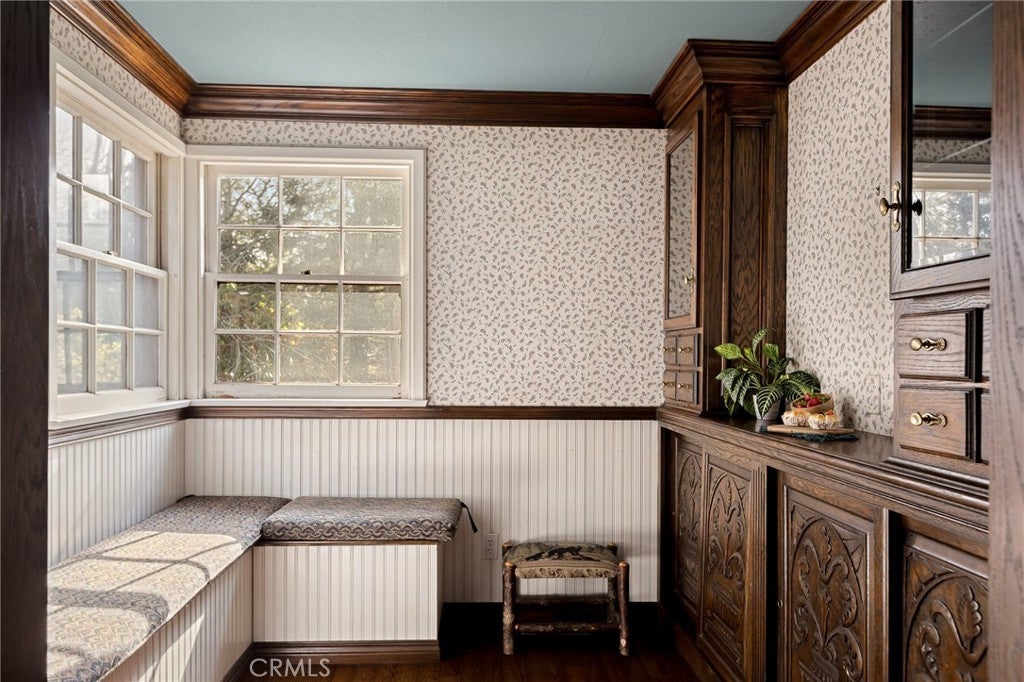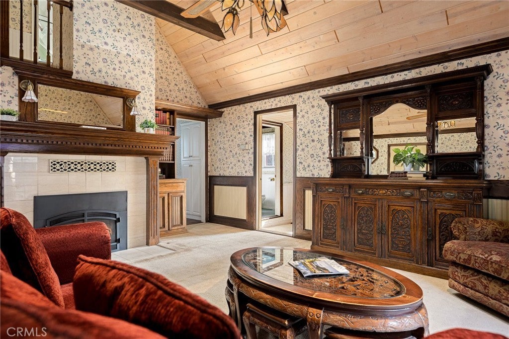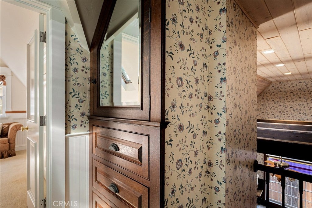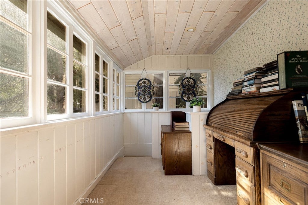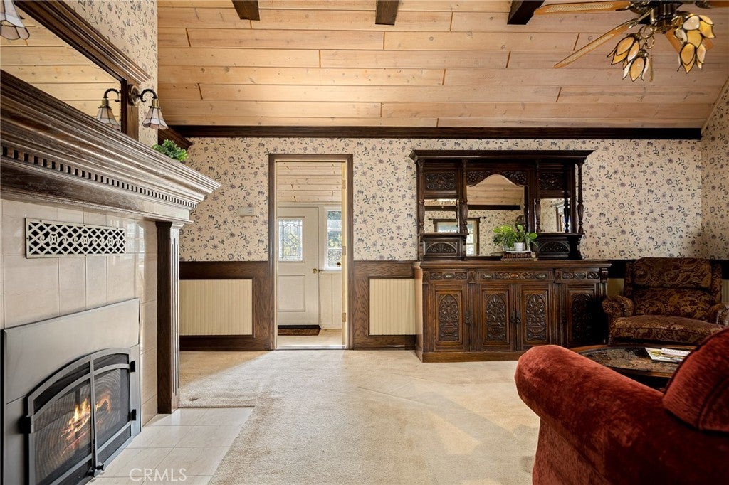 Step into the warmth of this 1930s Victorian cabin-style home, lovingly customized by the seller’s father with built-in furnishings and timeless finishes that add heart and character throughout. The enclosed front porch currently serves as a cozy home office—but with imagination, it could become anything you dream up. Inside, you’ll find a stunning living area featuring a grand fireplace, exposed wall-to-wall beams, and a vaulted ceiling that makes the space feel open yet inviting. The quaint kitchen includes a sweet breakfast nook straight out of a storybook, perfect for morning coffee or evening tales. Outdoors, the yard is cleverly sectioned, with an entertaining deck and a classic front porch that invites lazy afternoons and friendly chats. Located just minutes from both Lake Arrowhead and Cedar Glen, this home comes with full lake rights and sits in a highly walkable neighborhood filled with local restaurants, a gym, post office, and charming shops. This home has been a beloved gem—and now, it's ready to shine for its next owner. Don’t miss this well-priced treasure!