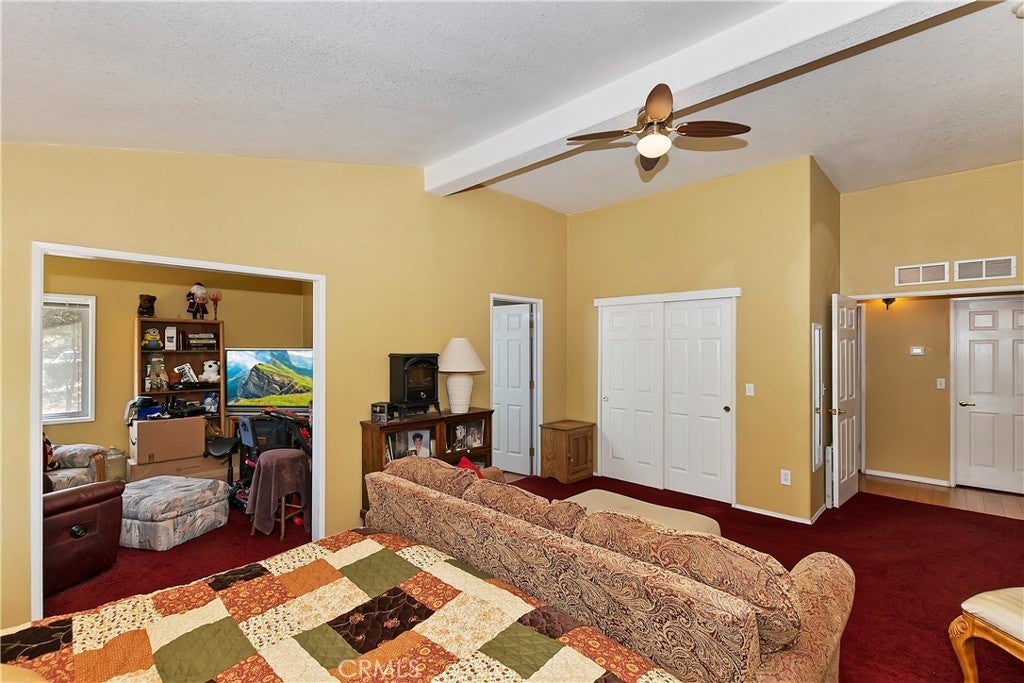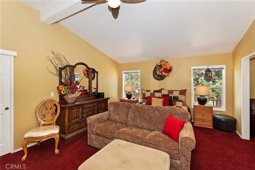 Ceiling Fan(s), Eat-in Kitchen, Bedroom on Main Level, Cathedral Ceiling(s), High Ceilings, Living Room Deck Attached, Main Level Primary