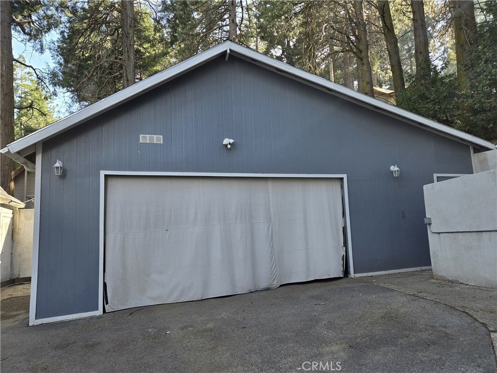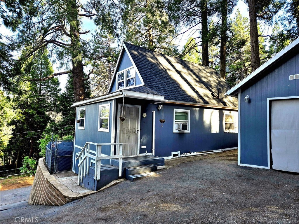 Welcome to your serene mountain escape, where care and attention to detail are evident throughout. The main level features a cozy living room with laminate flooring and elegant crown molding, leading into an updated kitchen with Corian countertops, an electric stove, and a dishwasher. The full bathroom on this level boasts a granite countertop, tiled flooring, and a tub/shower combo with a vinyl enclosure. Conveniently located off the kitchen is the pantry offering generous shelving, a stackable washer and dryer, and access to the outdoors including a tiered yard for gardening, entertaining and/or your quiet and peaceful enjoyment. Upstairs, you'll find two cozy bedrooms with small built-in closets and carpeting, along with an added half bath. Enjoy the peace of mind offered by dual-pane windows throughout. If you're wanting outside space, this is the place! A standout feature is the unique and quite large 2-car garage, which includes a spacious attic accessed via an exterior door—perfect for storage or creative use. Plenty more storage is available in a small adjacent area and a nearby shed that includes a workshop setup and even more space. The property is well-lit inside and out with energy-efficient LED lighting, including security lights. The asphalt driveway includes a concrete pad at the top and inside the garage. Please note: the garage currently has no door and is not permitted. This special property blends mountain charm with functional upgrades—ready for you to call it home.