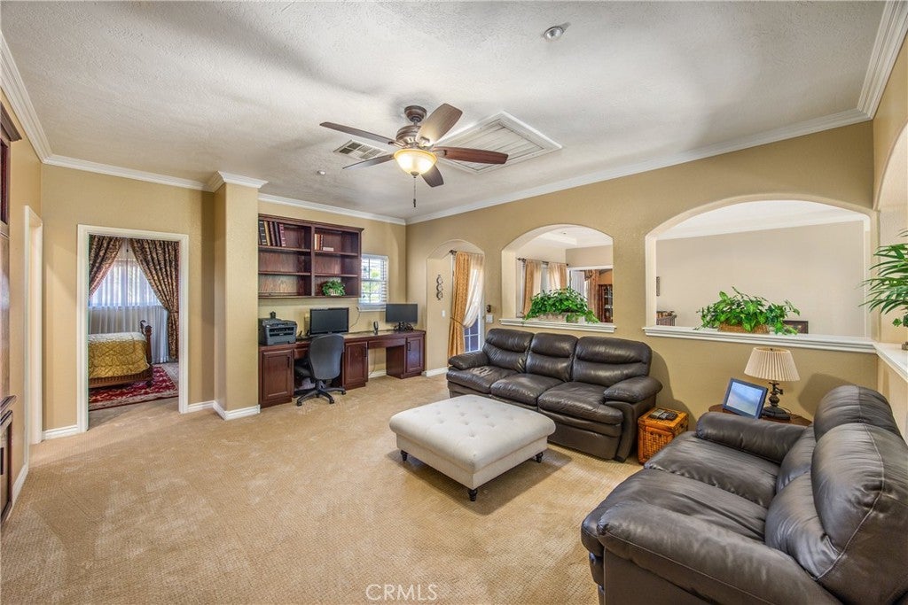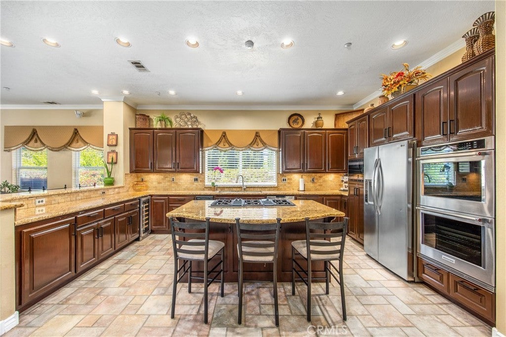 Gated Access, Pool and Cabana. Welcome to your dream home! This beautifully maintained 4,650 sq. ft. custom estate sits on a private half-acre lot behind an electric gated entrance, offering the perfect blend of luxury, privacy, and comfort. Inside, you'll find 5 spacious bedrooms and 5 full bathrooms, each with walk-in closets, providing ample space for family and guests. The home features upgraded cabinetry, granite countertops throughout, new carpet, and fresh paint, making it truly move-in ready. The gourmet kitchen is a chef’s dream with a new KitchenAid double oven, JennAir cooktop, wine cooler, trash compactor, walk-in pantry, and plenty of room to entertain. A full indoor laundry room adds everyday convenience. Step outside and escape to your personal staycation haven—this backyard is designed for both relaxation and entertainment. Enjoy a gated Pebble Tec pool and spa with a new heater and pump, or unwind under the cabana, complete with a built-in BBQ, cabinetry, refrigerator, fireplace, and TV—perfect for hosting friends or cozy family nights. Other highlights include a full security system with cameras, 3-car garage with built-in cabinets, storage racks, Tesla charging system, and attic storage. The professionally landscaped yard features full irrigation with drip lines, keeping everything lush with minimal effort. This is more than just a home—it’s a lifestyle.