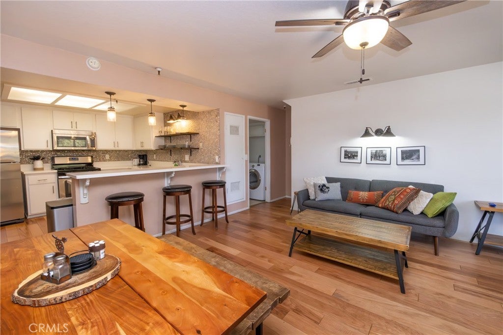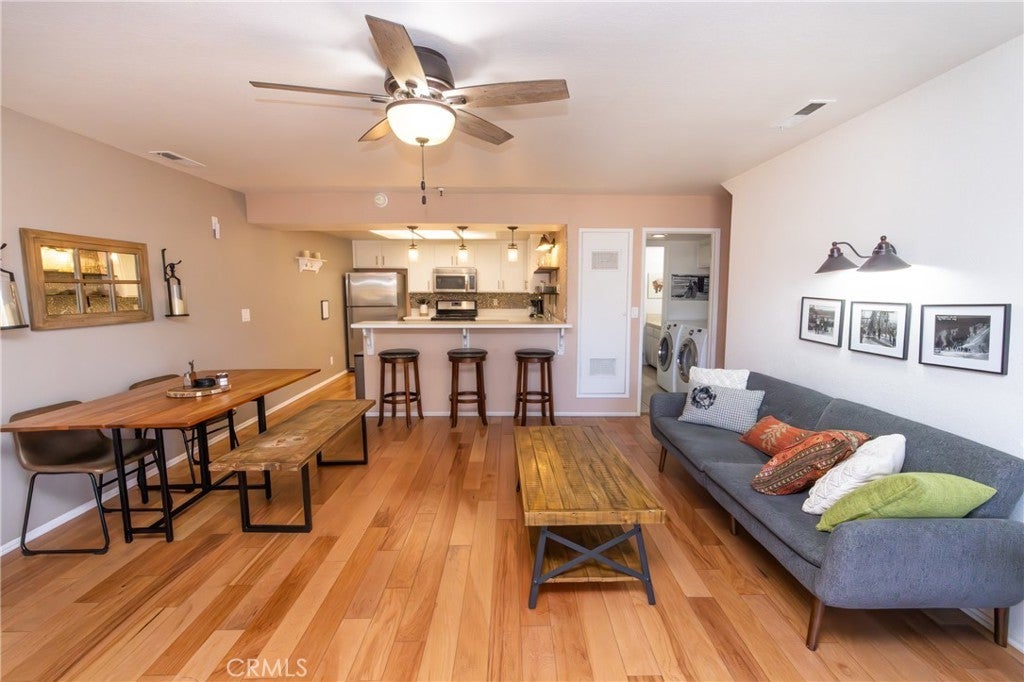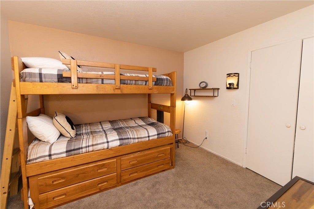 Enjoy the best of Big Bear Lake from this well-appointed 2-bedroom, 2-full-bathroom, 1,200 square foot condominium with two assigned parking spaces and unique through-garage access. Embrace a lifestyle with close proximity to the stunning Big Bear Lake for water activities, the vibrant Village offering charming shops and diverse restaurants, and the exhilarating slopes of Snow Summit and Bear Mountain, which transform into hubs for summer fun like Spartan races, mountain biking, or access to the seemingly endless trails around Big Bear Lake. Inside, you'll appreciate the convenience of newer appliances throughout the home, along with separate, newer model washer and dryer units. The building itself offers a fantastic opportunity to infuse your personal style, with interiors ready to embrace your choice of colors and décor. This property offers even more with its desirable location and features. The low homeowner's association (HOA) fee of only $250 per month and the allowance of vacation rentals make this an exceptional opportunity for personal enjoyment or investment income in beautiful Big Bear Lake. Don't miss out on all that this mountain paradise has to offer, year-round!