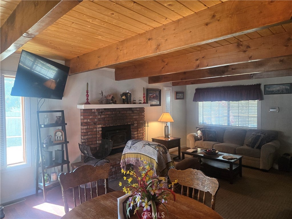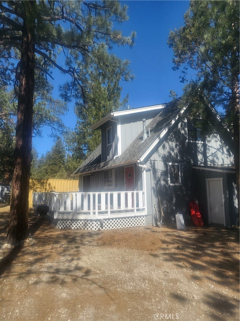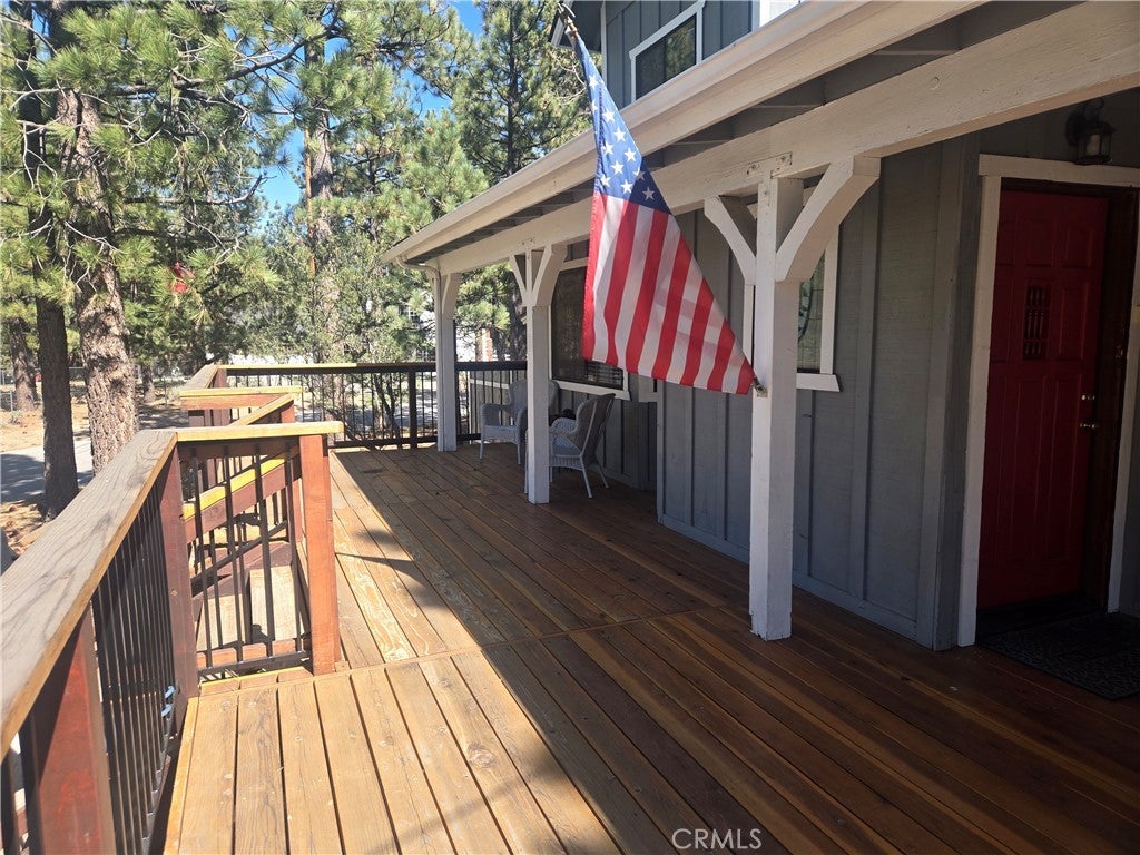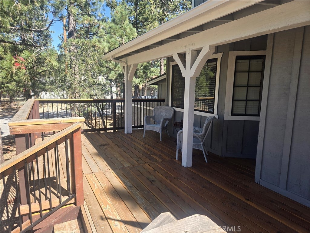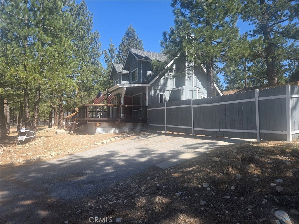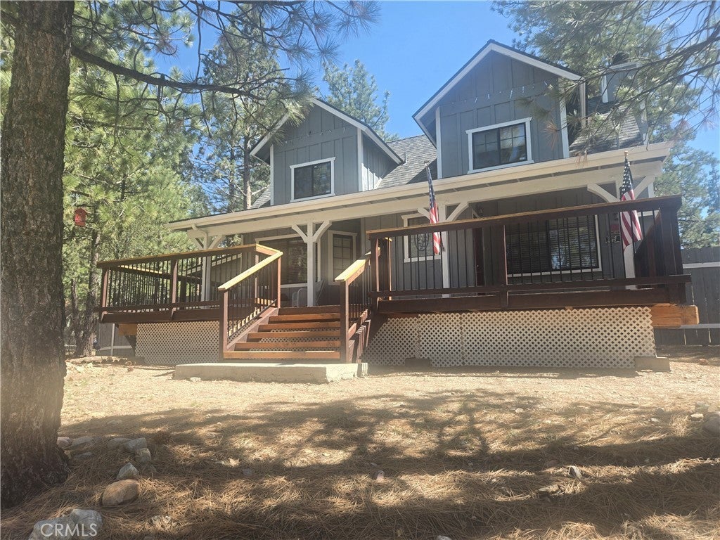 The King of the Corner, situated on a level knoll, best describes this Farm Style Home. Extra-large front and rear decks to enjoy the outdoors no matter what time it is. Two Dormers give extra character to the inside and out. Updated kitchen and bath counters, wood pegged flooring in kitchen and dining areas. The beautiful wood slab Breakfast Bar makes a great pass-through to the Dining Area, while French doors take you to the rear deck. The 7560 sq ft lot encompasses the entire corner and provides a complete drive-through with two gates. New forced-air unit. Perlin Beam ceiling in the living and dining area, a used brick fireplace with a wood-burning insert to keep the gas bill down. Downstairs bedroom has an armoire, 2 bright and cheerful bedrooms upstairs with window seat and the most interesting ceiling architecture, no square corners in these rooms, just vaulted and intregging. Fully furnished and ready to go. Storage container can stay with acceptble offer. Extra parking in the rear yard for RV or boat plus vehicles. You will apprceiate the pride of ownership this property displays.