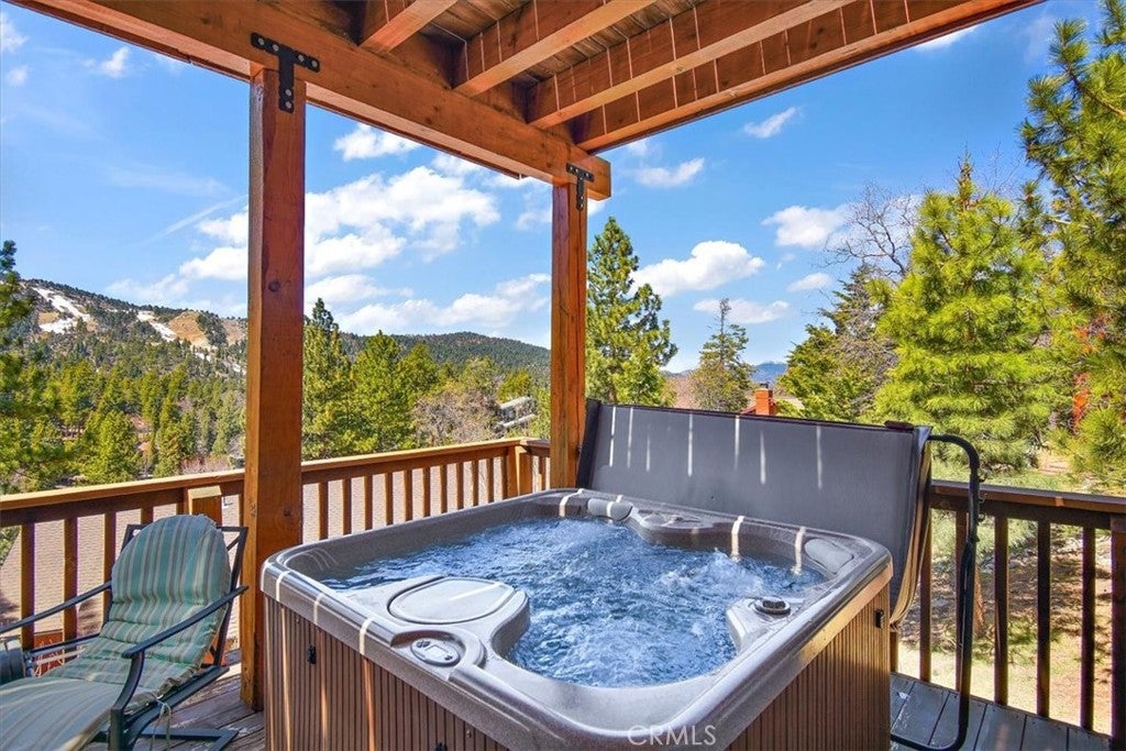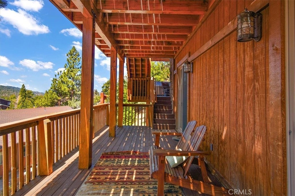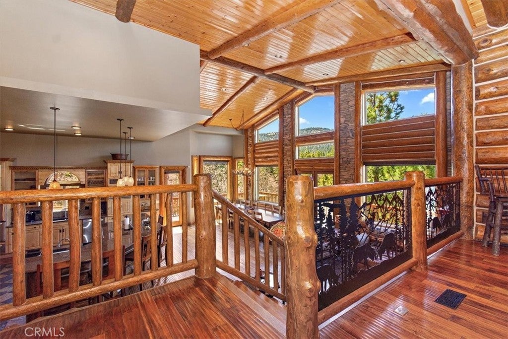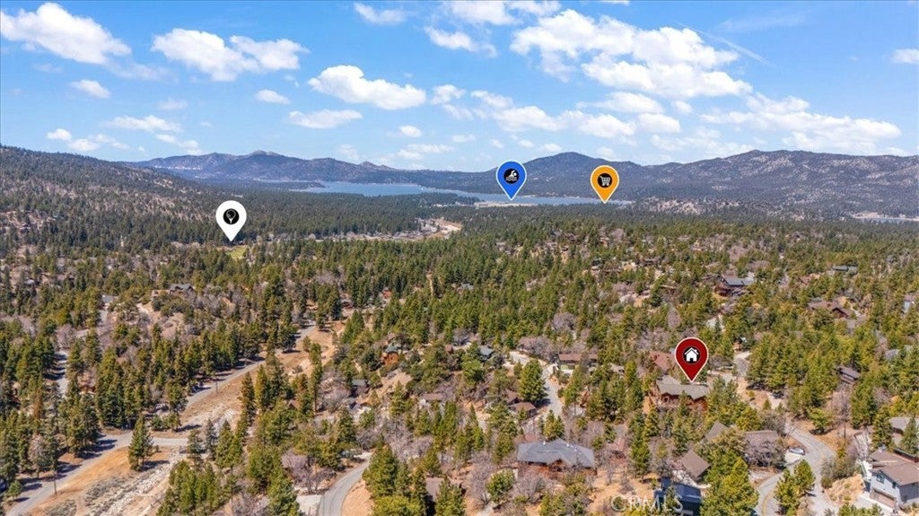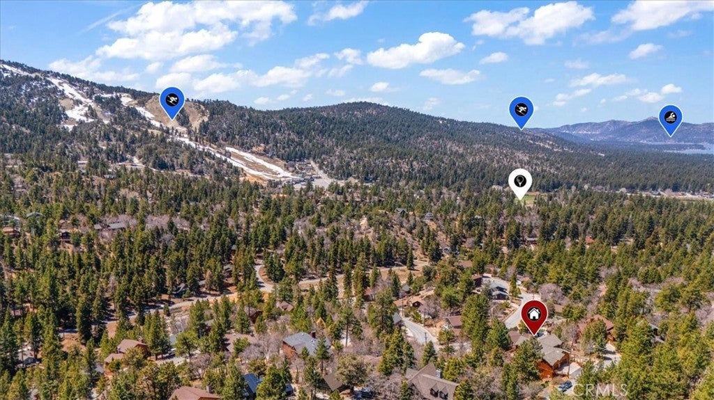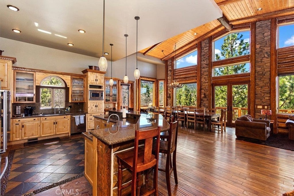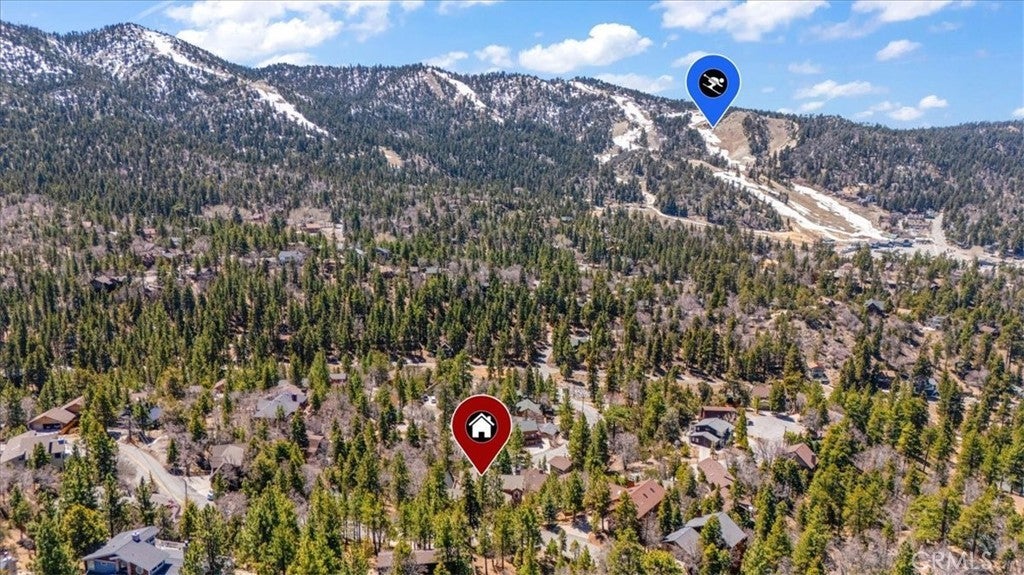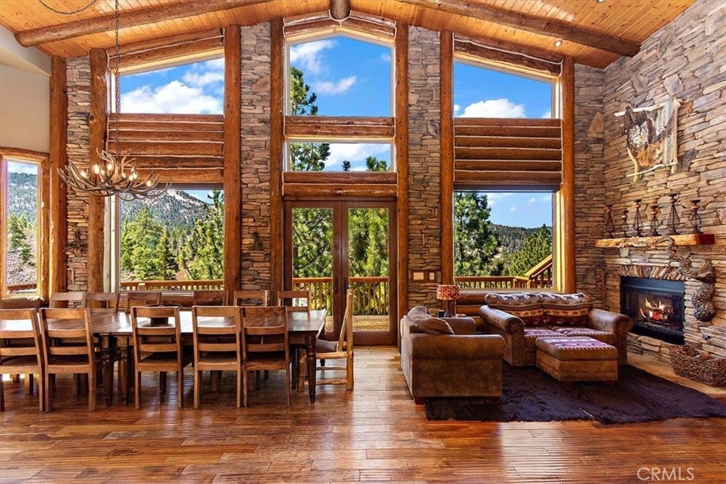 This epic custom-built log home has some of the most commanding views of the lake and ski-slopes in Moonridge. The pinnacle of luxury, this property has so many amazing amenities! Gourmet stainless-steel kitchen open to massive dining room with wide views of the slopes through the full wall of display windows accented by log and stonework; Five stone fireplaces including one at the deck across from the spa just outside the primary suite and one inside the primary suite along with a wet bar; detailed artisanal work in the custom laid mosaic floor tiles, custom carved fireplace mantles with artistic details, and layers upon layers of knotty-pine log accents. This property has many entertaining spaces inside and out, including a parlor off the entry with a fireplace, lofted game room with another fireplace, wet bar and counter seating, a shady front porch, a deck off the loft with lake views, a deck off the dining area with ski slope views, a secluded deck off the primary suite with spa, and a deck off the ground floor with more views. There’s also a fifth sleeping area off the lower hallway. In addition to the mountain charms, this home has modern features such as Nest Thermostats, exterior cameras, two dual-zoned forced-air heating units, air-conditioning unit on the top floor, two tankless water heaters, heated driveway, heated towel-rod and travertine floors in the primary suite, a gorgeous outdoor water feature, and three-car attached garage. Located near ski slopes, national forest hiking trails, shopping and dining, events and activities, this property has been a successful vacation rental and could make a wonderful family getaway or peaceful residence where the closeness to nature makes profound memories.