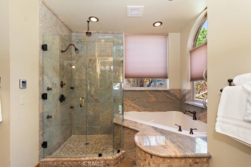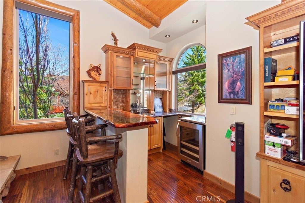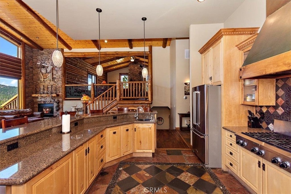 Balcony, Bar, Beamed Ceilings, Cathedral Ceiling(s), Ceiling Fan(s), Dry Bar, Granite Counters, High Ceilings, Instant Hot Water, Living Room Deck Attached, Loft, Multiple Primary Suites, Multiple Staircases, Open Floorplan, Pantry, Primary Suite, Recessed Lighting, Stone Counters, Walk-In Closet(s), Wet Bar, Wood Product Walls