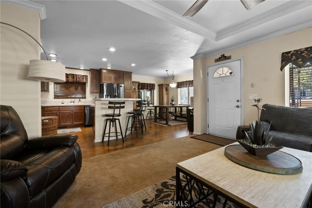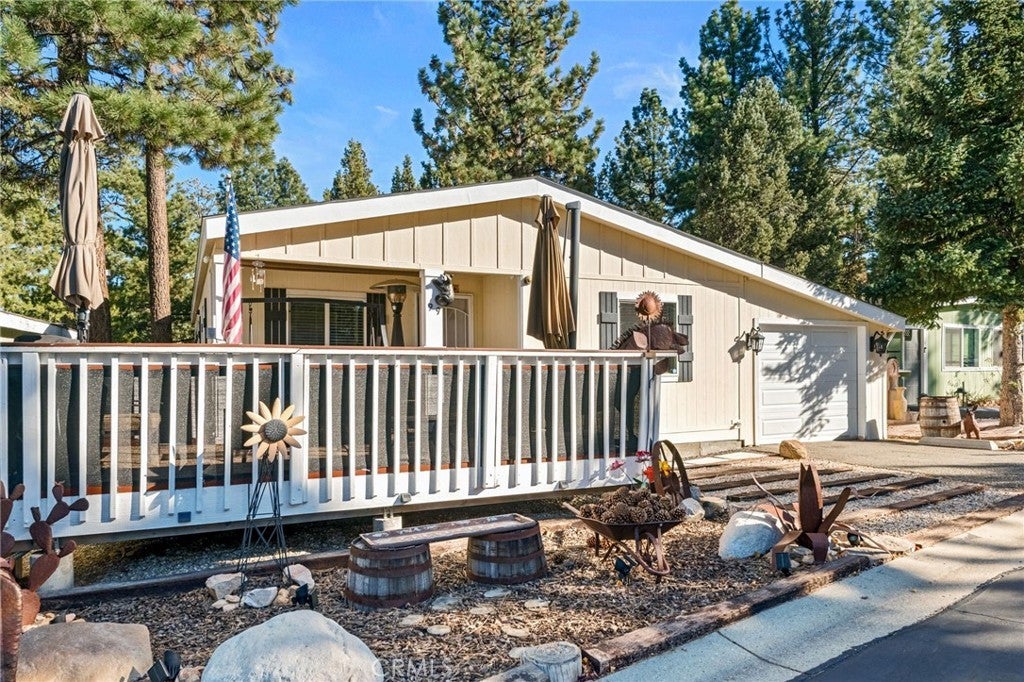 Remarkable newer manufactured home, on a permanent foundation, in Whispering Pines Estates - where you own the land your home is on. Boasting 3 bedrooms and 2 bathrooms and a 2 car (tandem) attached garage! The open floor plan allows interaction with friends and family. The kitchen has an island for extra seating space as well as newer appliances. Take in the beautiful surroundings on the large front trek deck. The roof was built heavy duty for for snow load. Quiet neighborhood and just steps away from the clubhouse, gym, outdoor pool, indoor spa, greenbelt and playground. Just a short drive to shopping, lake and slopes with Hwy 38 around the corner. This home would be a great first time home, last home, vacation home or rental. The possibilities are almost limitless. Monthly fee includes trash, water and street plowing.