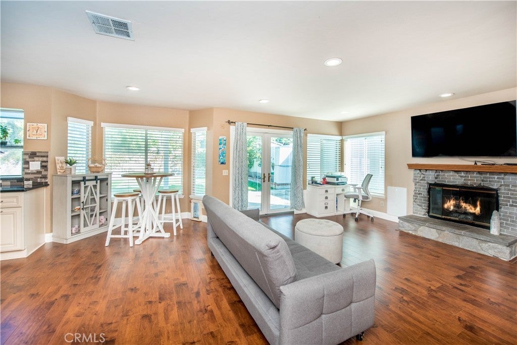 GREAT FLOOR PLAN - Located in one of Corona's most desirables neighborhoods - Sierra del Oro. Closest to orange county, close access to 91 and 71 freeways and shopping. New floorings were just installed by the seller through out the whole downstairs as well as new baseboards. Front door was just painted on one side the reburnished on the other side. This is a very comfortable floor plan with a formal living and dining room open kitchen with breakfast area and family room with a fireplace. Laundry area and guest bathroom are downstairs. The back yard is great for entertaining, party covered. This home has had the following upgrades. Waterproof luxury vinyl flooring in two of rooms upstairs. Solar panels - the maximum amount that fits the property's roof - Solar was purchased and own free and clear. Artificial grass – in the front and part of the back yard, Pavers in the front of the house instead of the cement. All new exterior paint is new about 2 years old. All wood trim around the windows and eaves replaced with a high quality wood when house was painted approx. 2 years ago. Kitchen upgraded, wet bar and a counter removed, creating more open transition into the breakfast area and family room. Beautiful French doors to the backyard. Alumawood patio cover in the backyard (brings more shade into the family room, keeping it cooler during summer).New dual pane windows in the family room, in the master bedroom and in the master bathroom. Solar screens on the windows in the three bedrooms upstairs. New AC and furnace unit - about 2 years old.